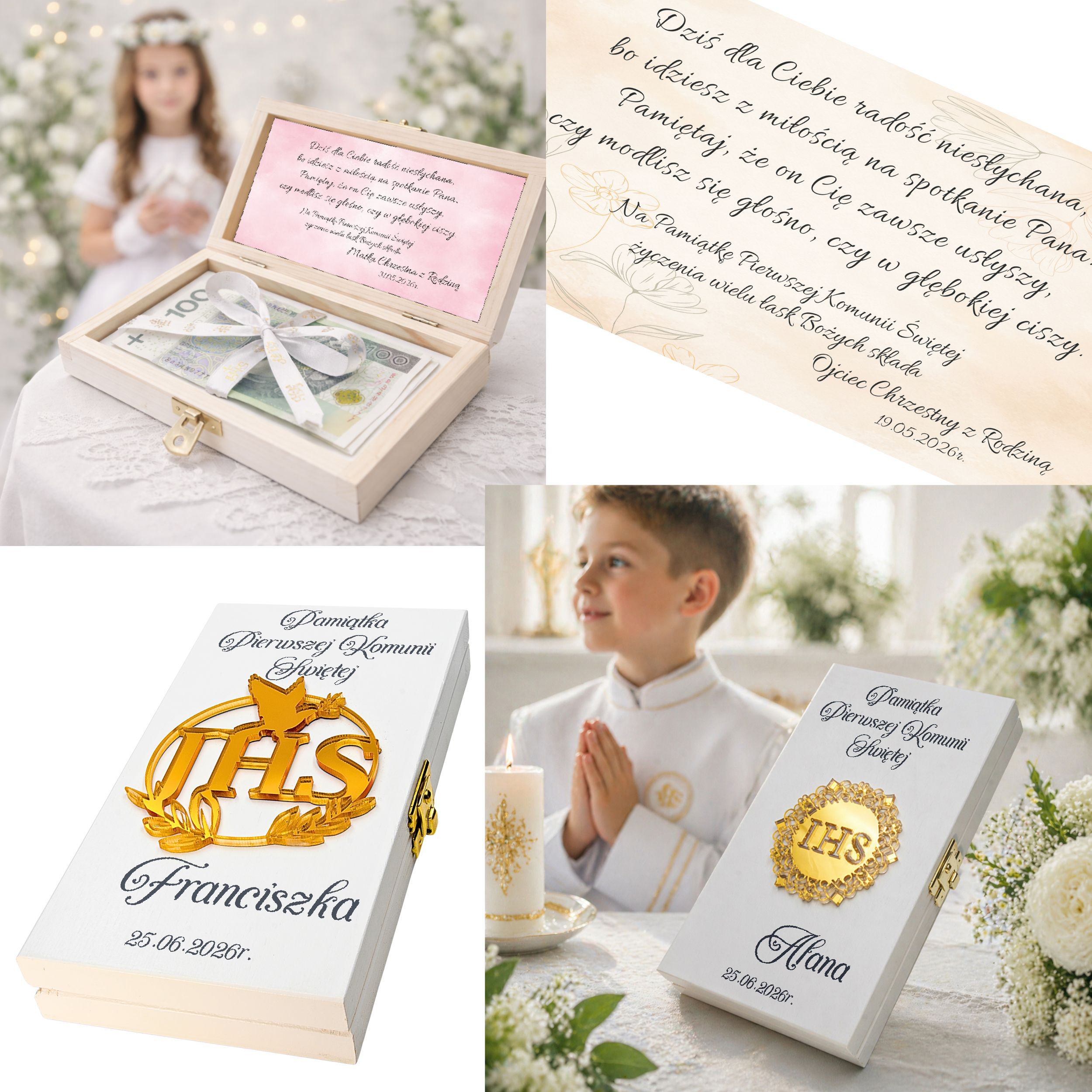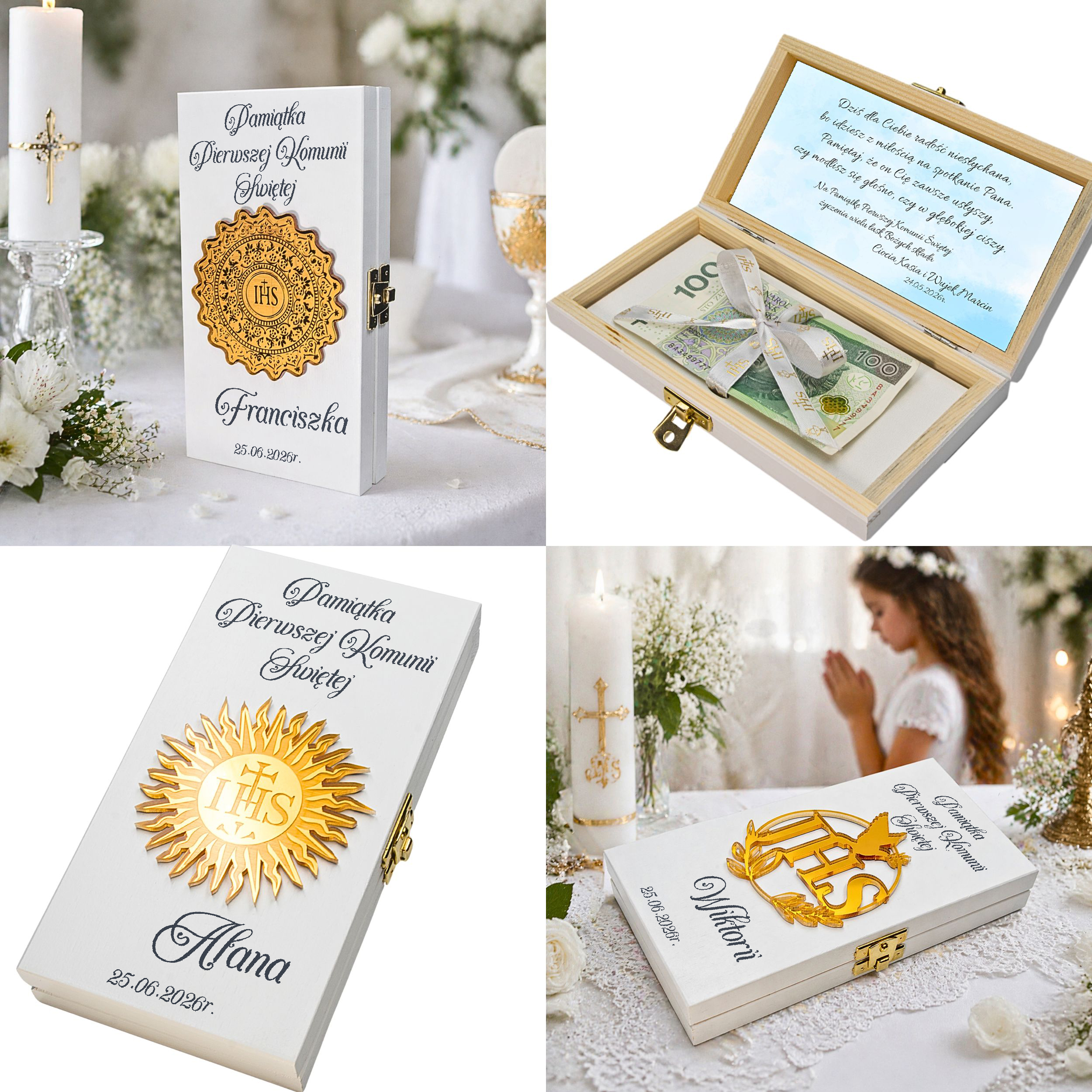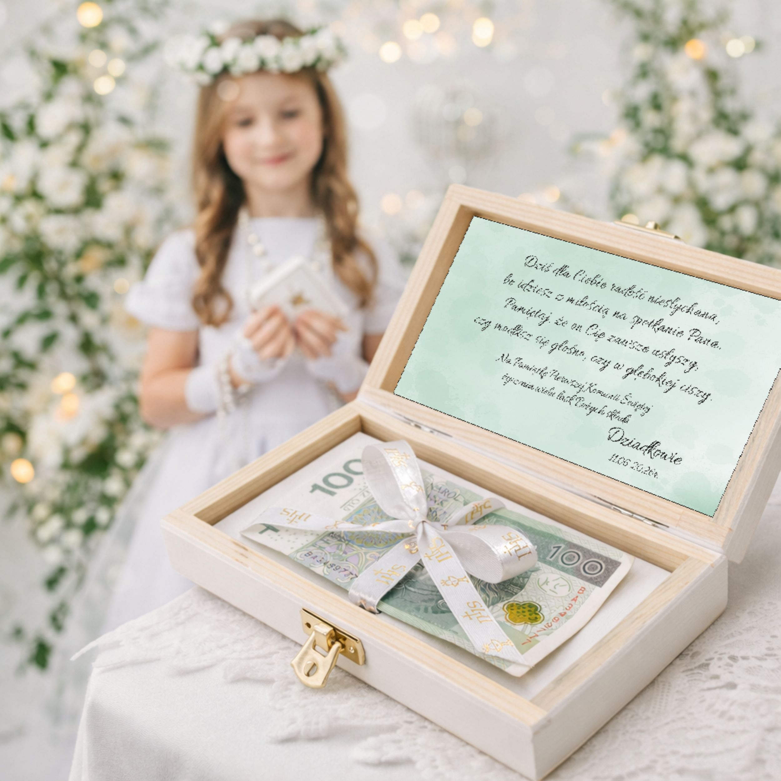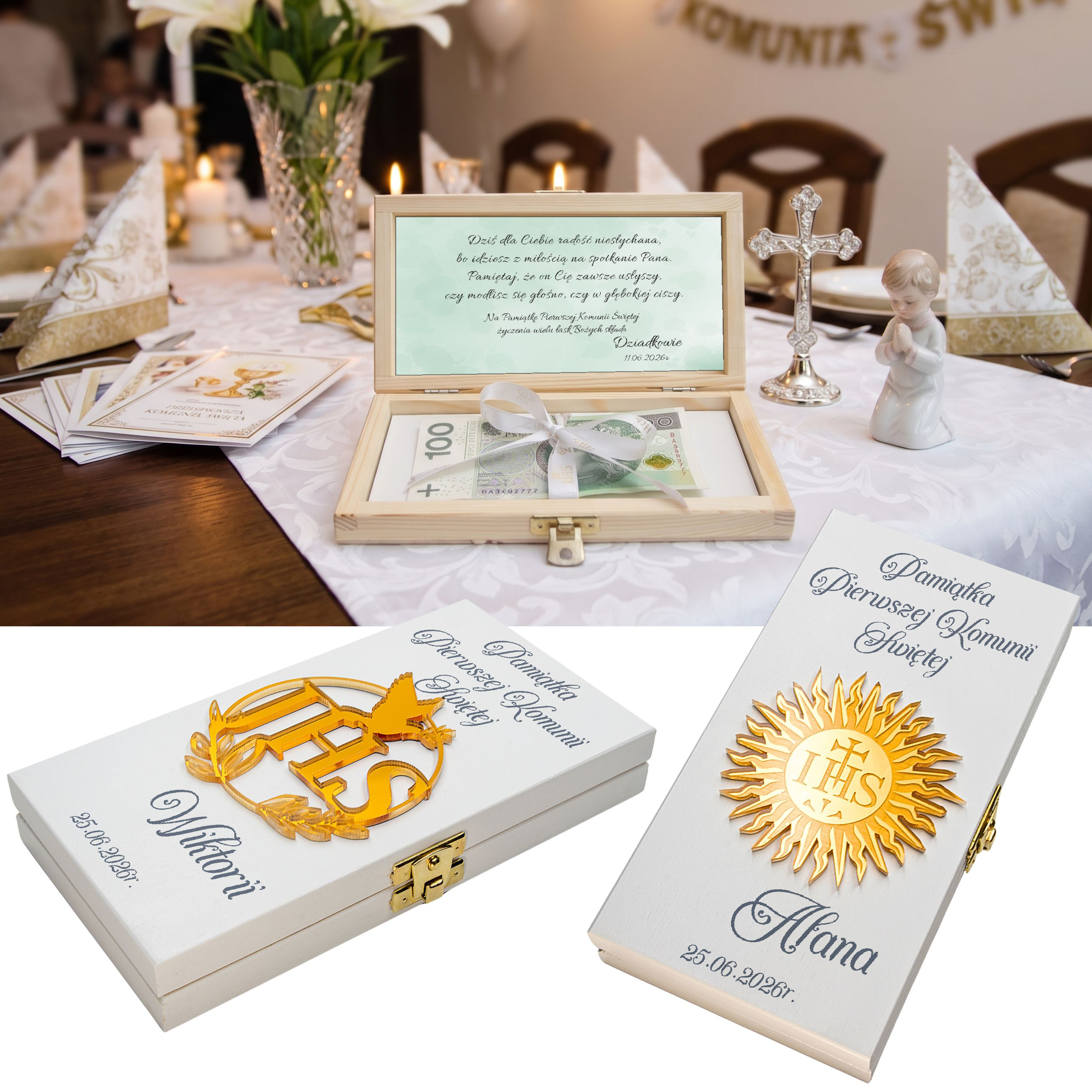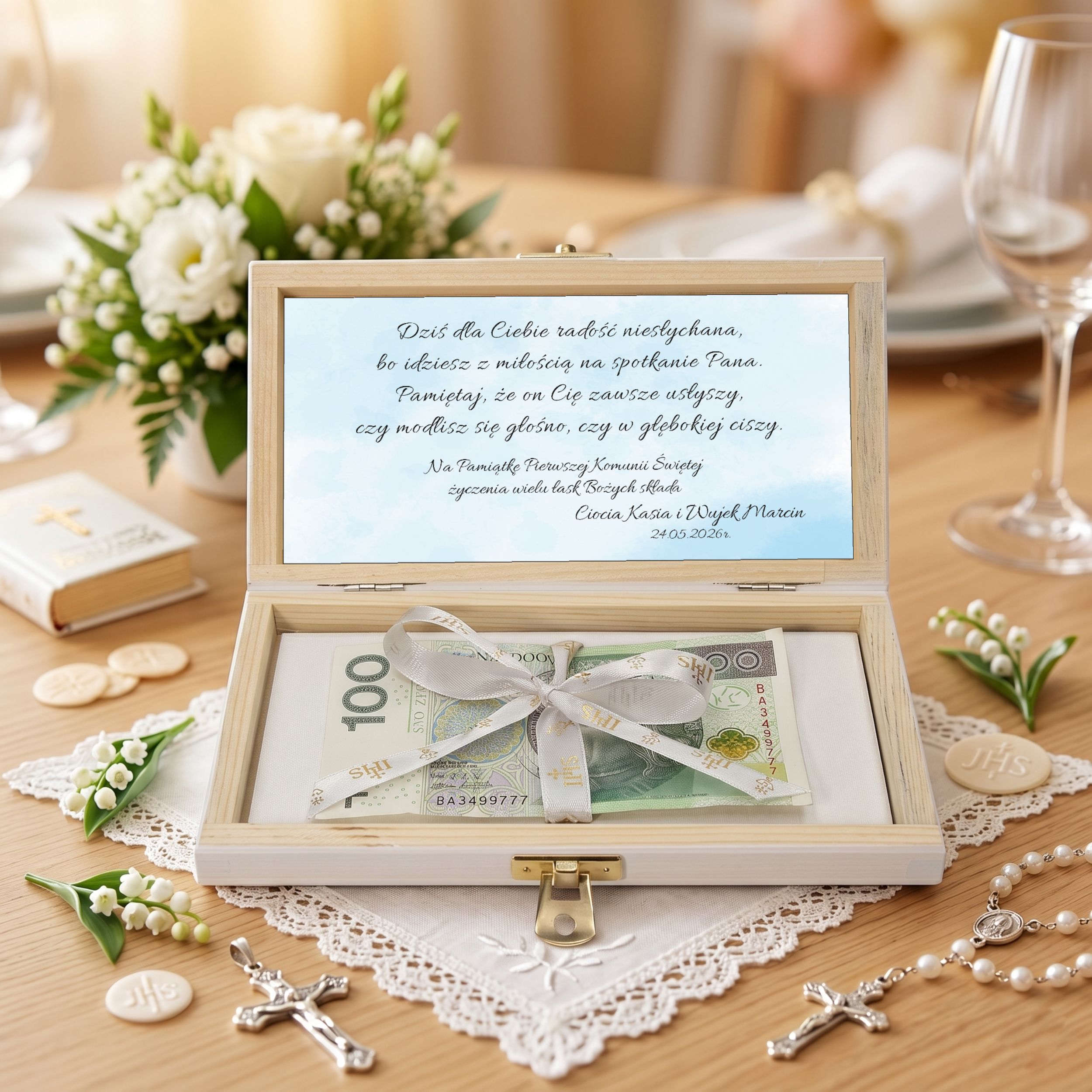 Pamiątka Pierwszej KOMUNII ŚWIĘTEJ PREZENT na Komunię Pudełko na pieniądze