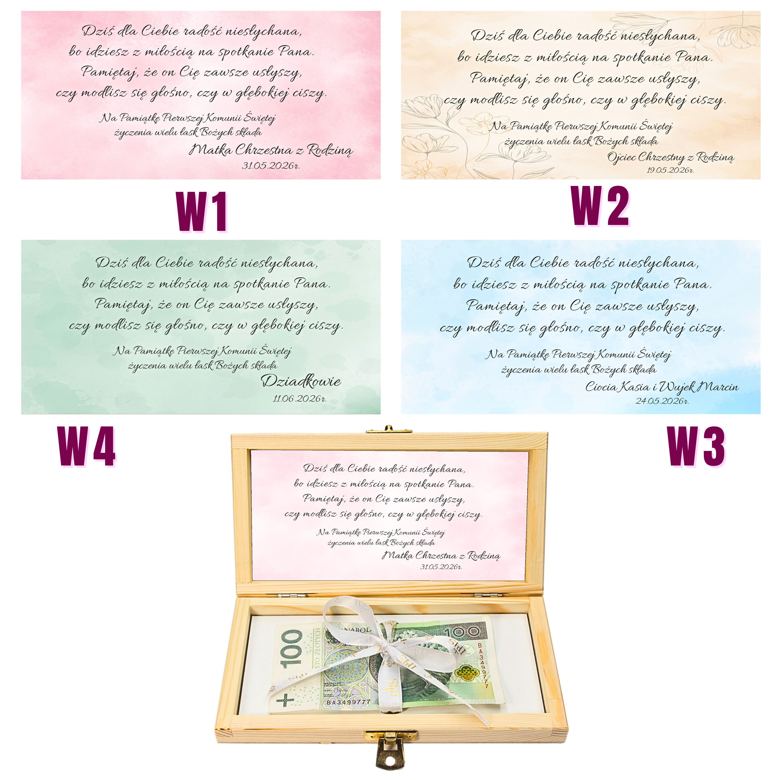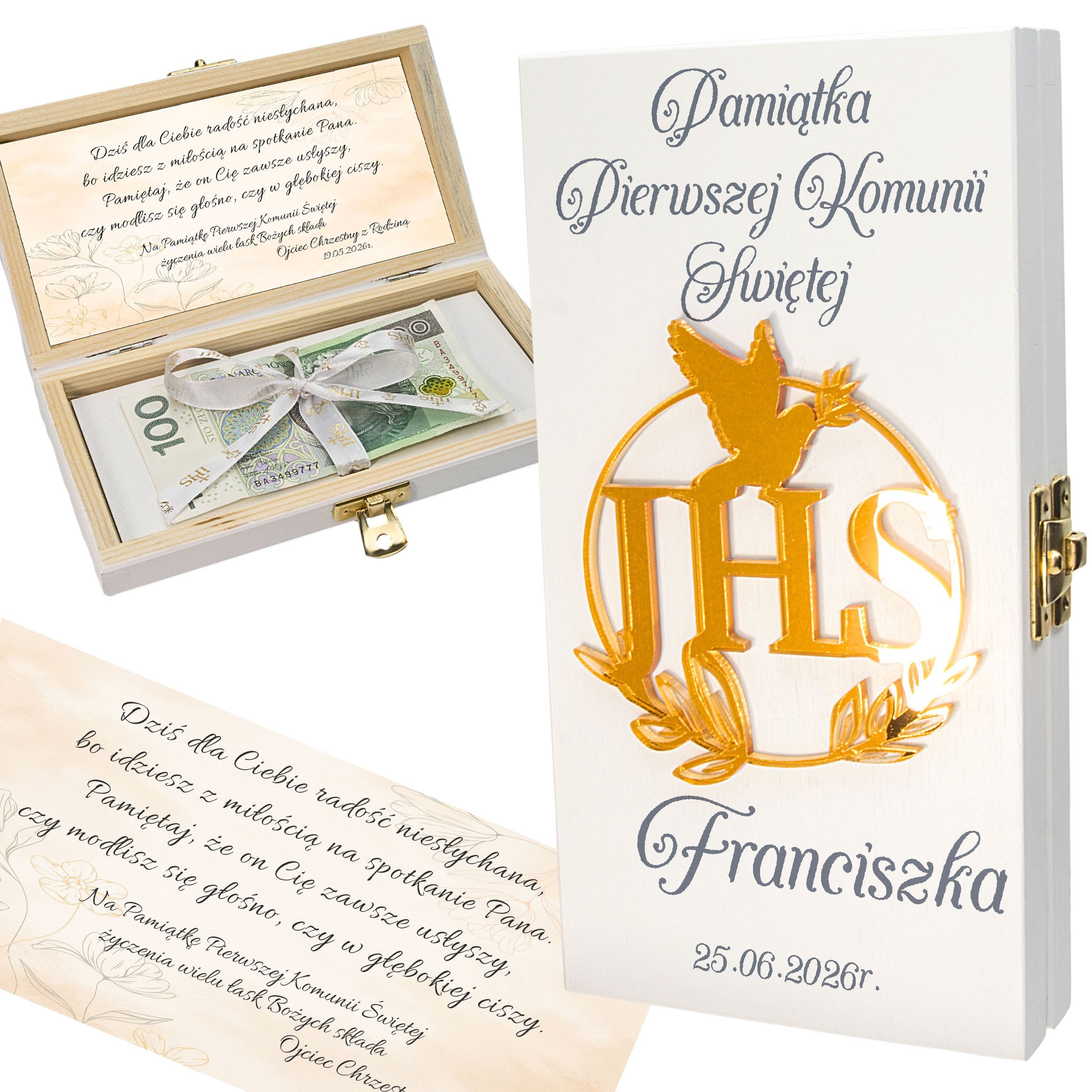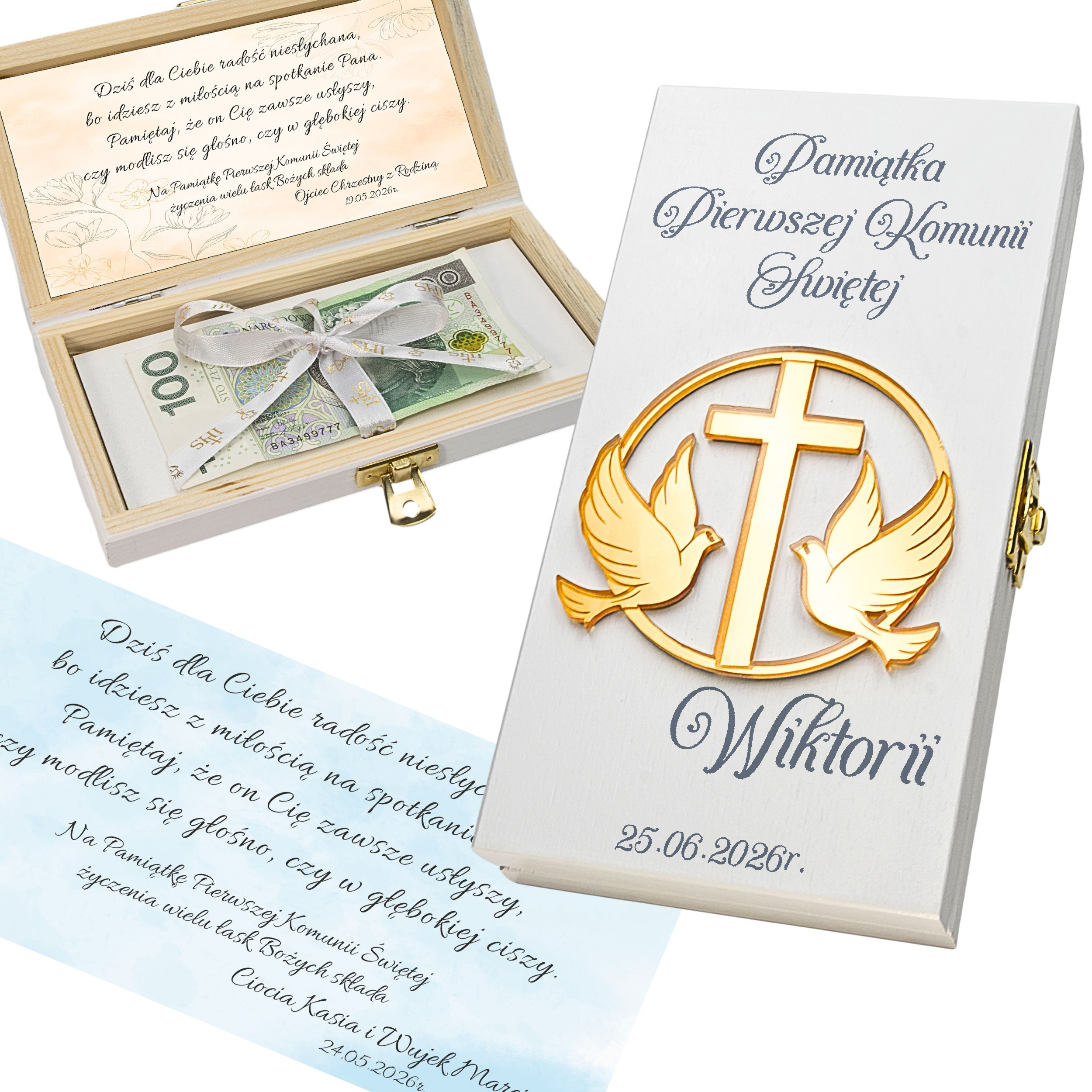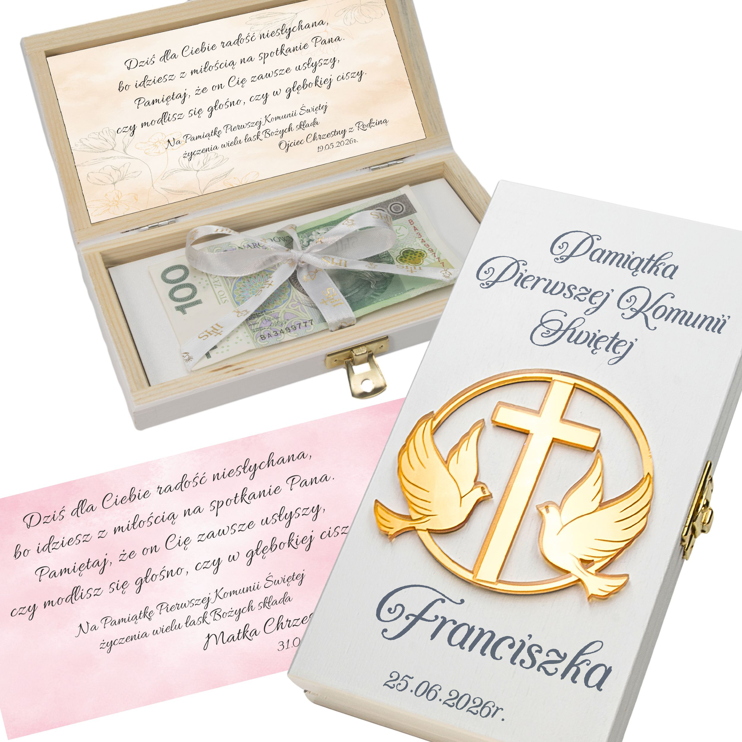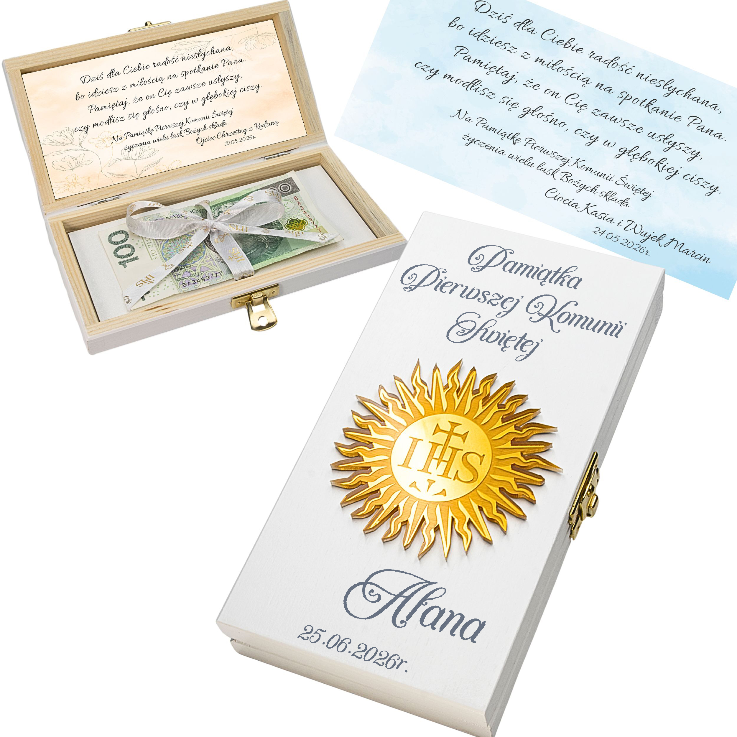 Pamiątka Pierwszej KOMUNII ŚWIĘTEJ PREZENT na Komunię Pudełko na pieniądze