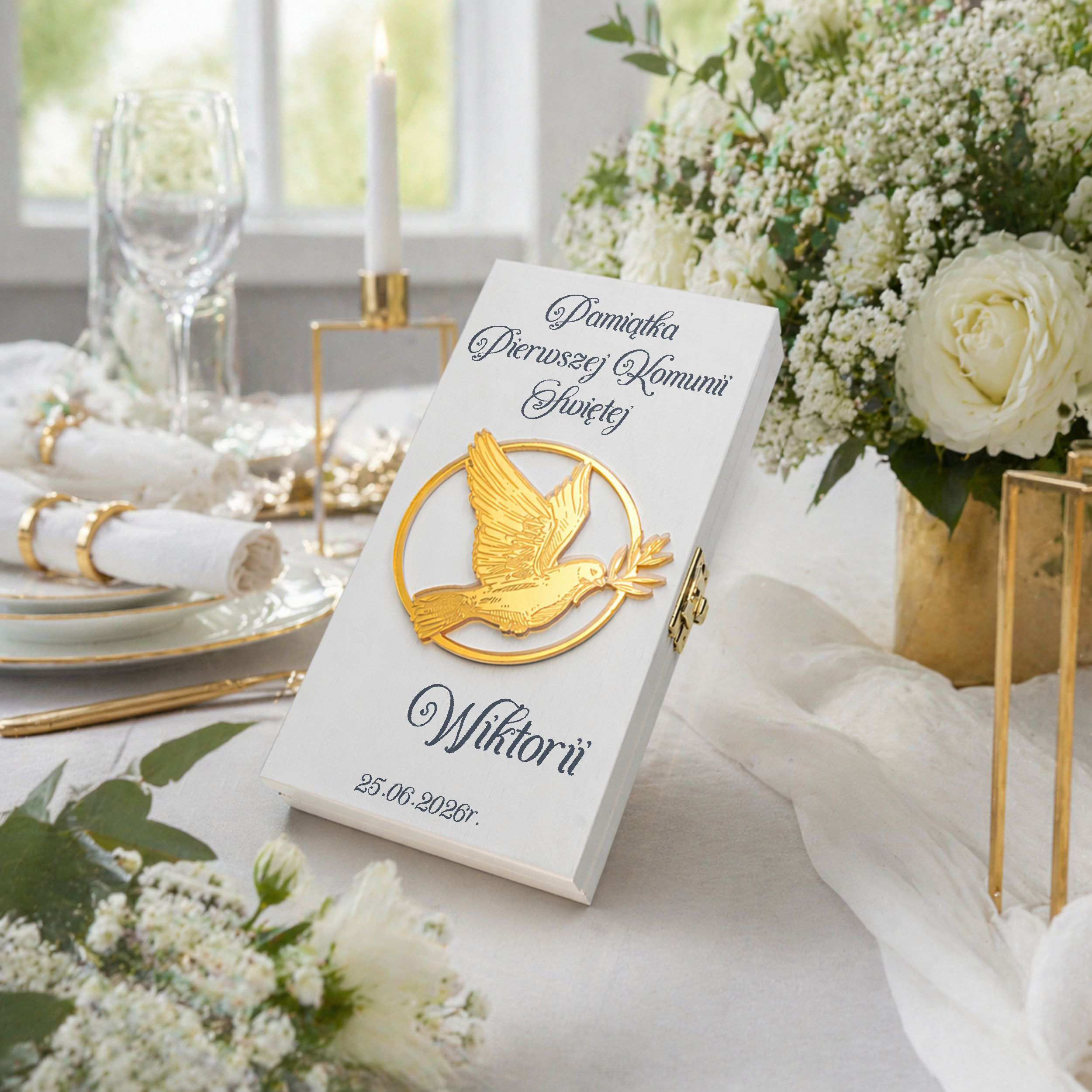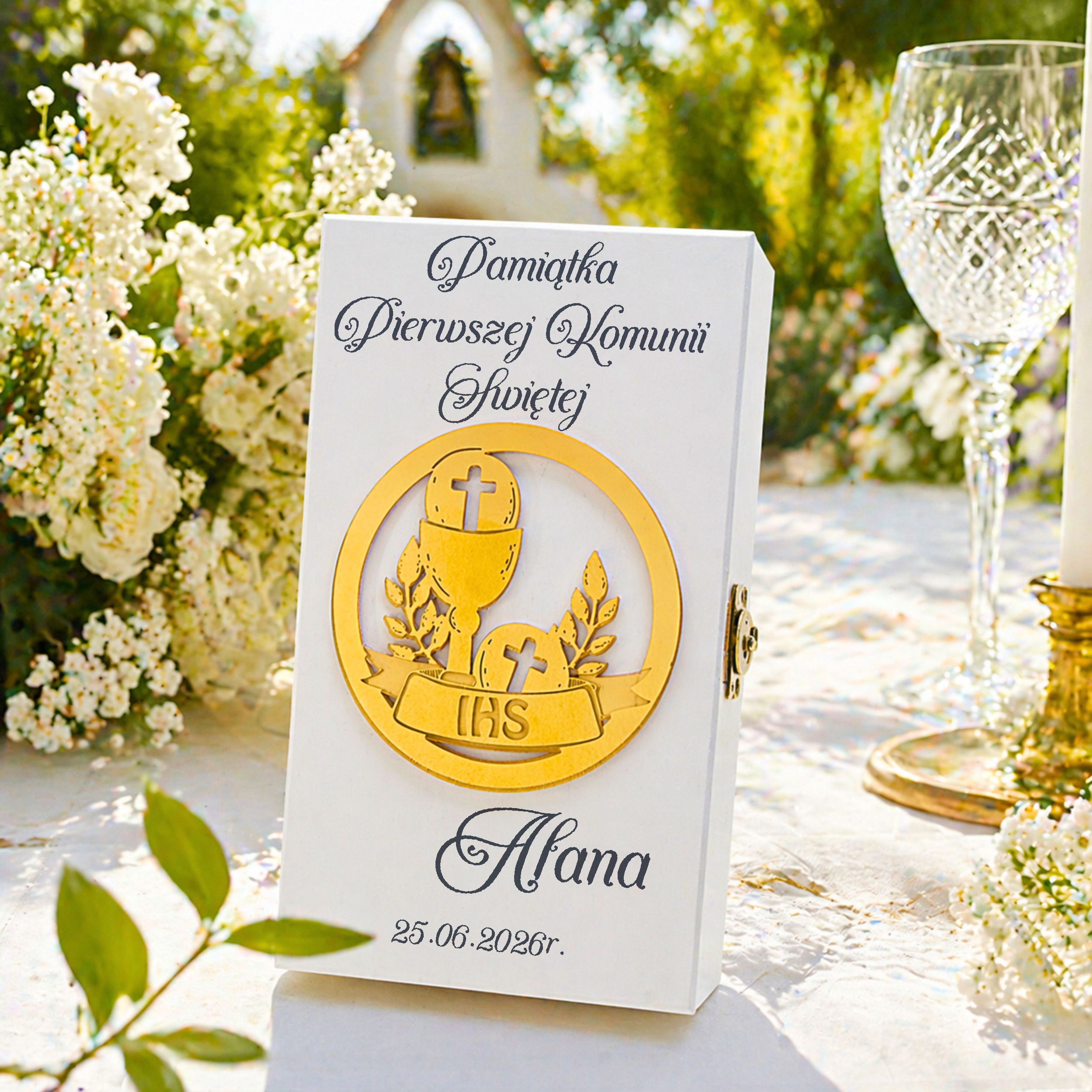 To gotowa pamiątka komunijna, która łączy elegancję, emocje i funkcjonalność.