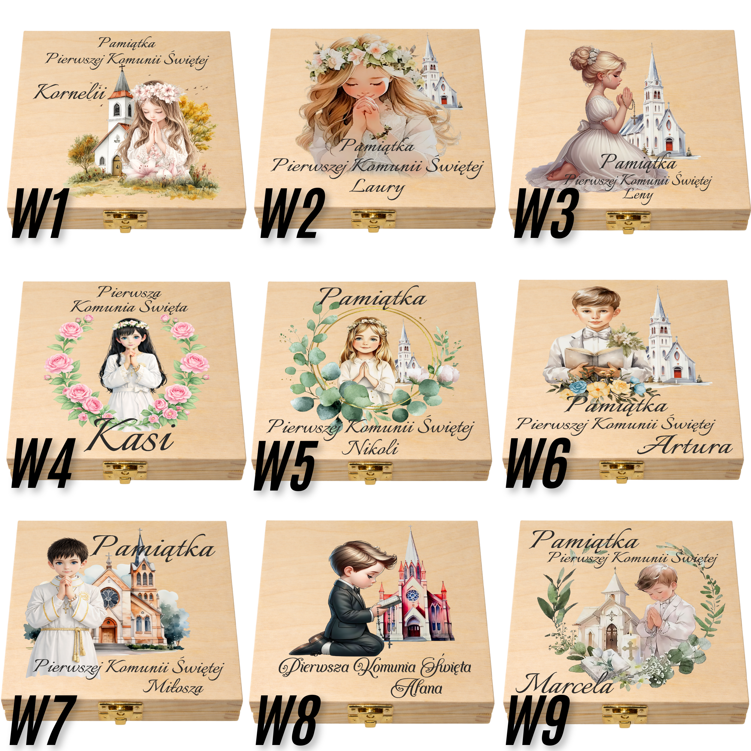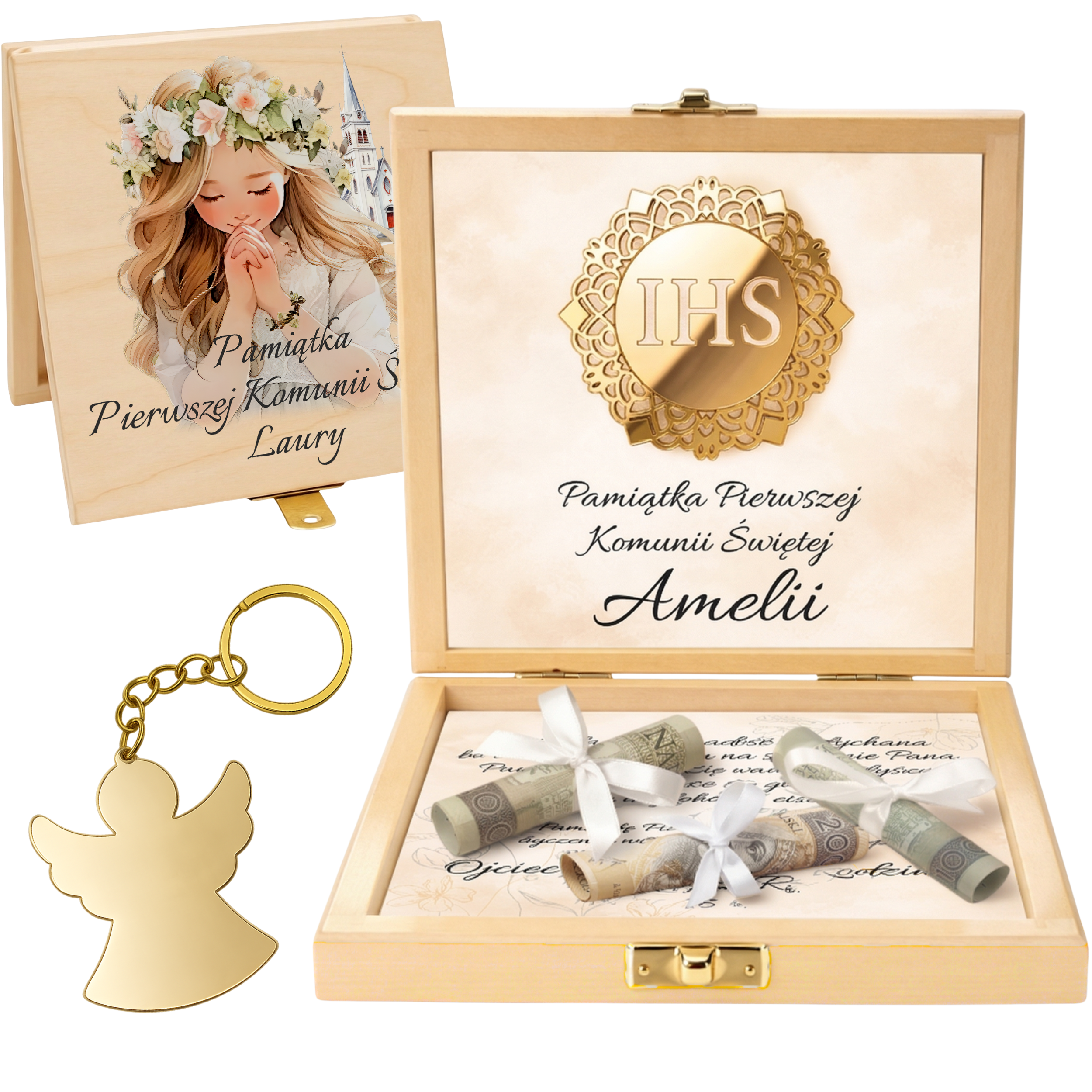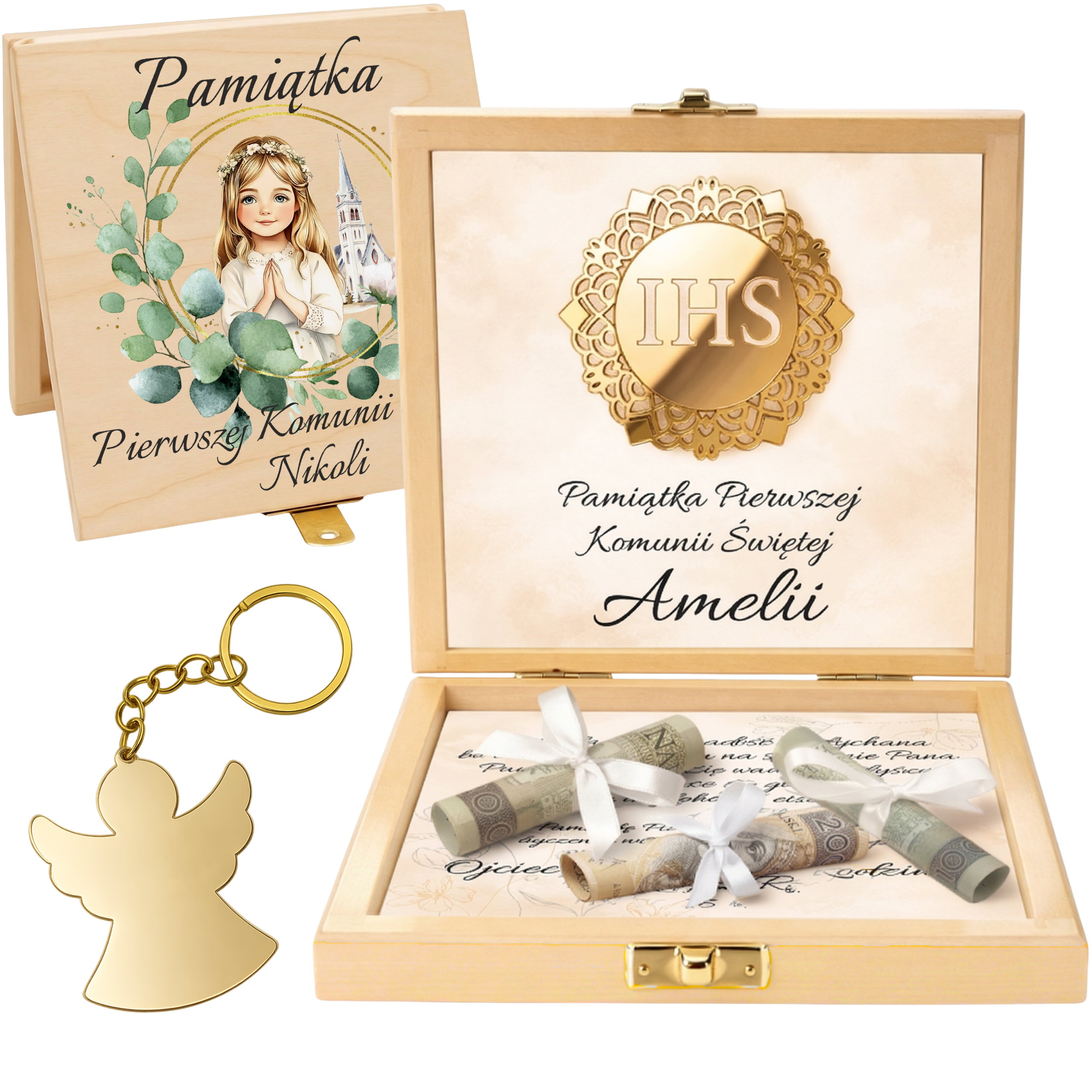 Pamiątka Pierwszej KOMUNII ŚWIĘTEJ PREZENT na Komunię Pudełko na pieniądze