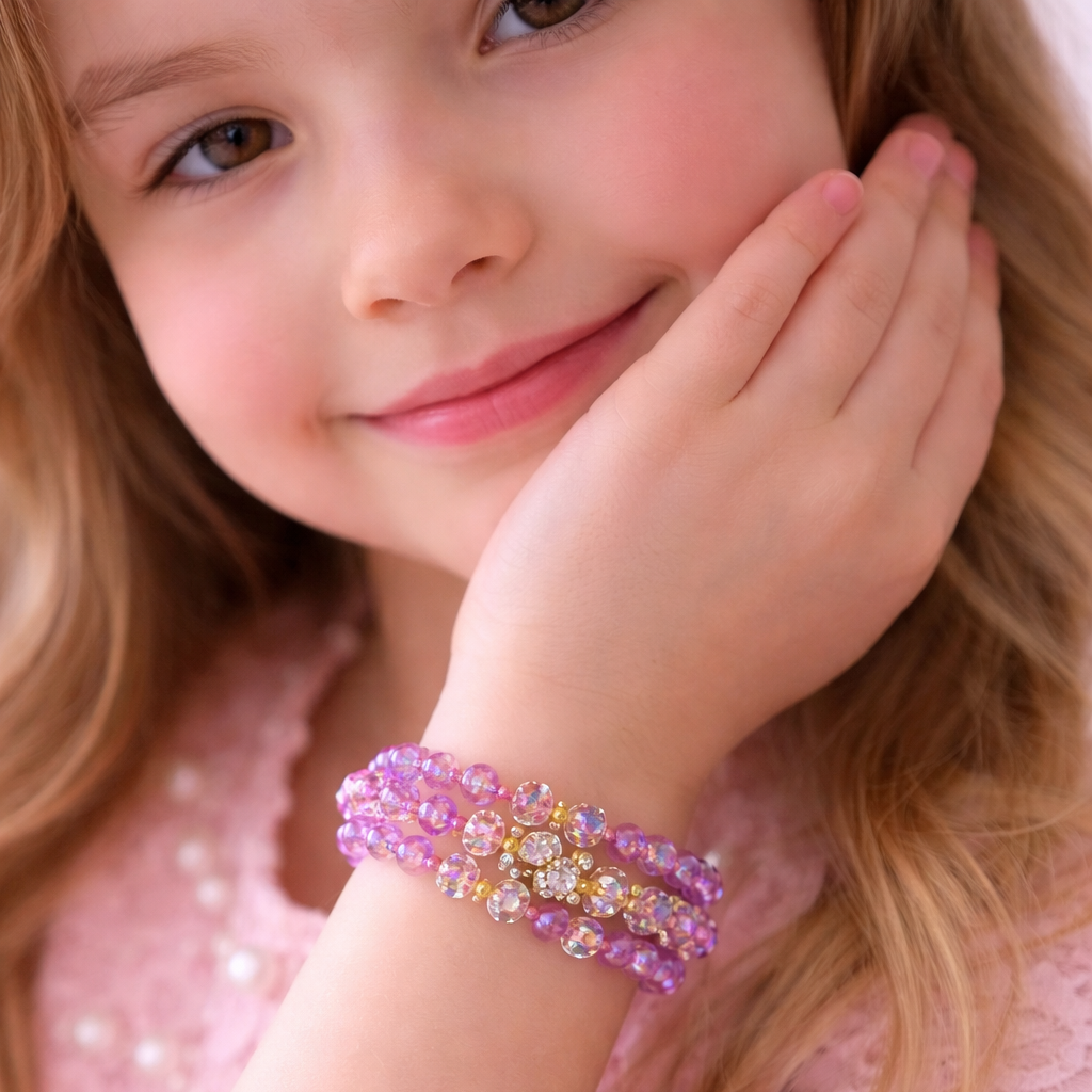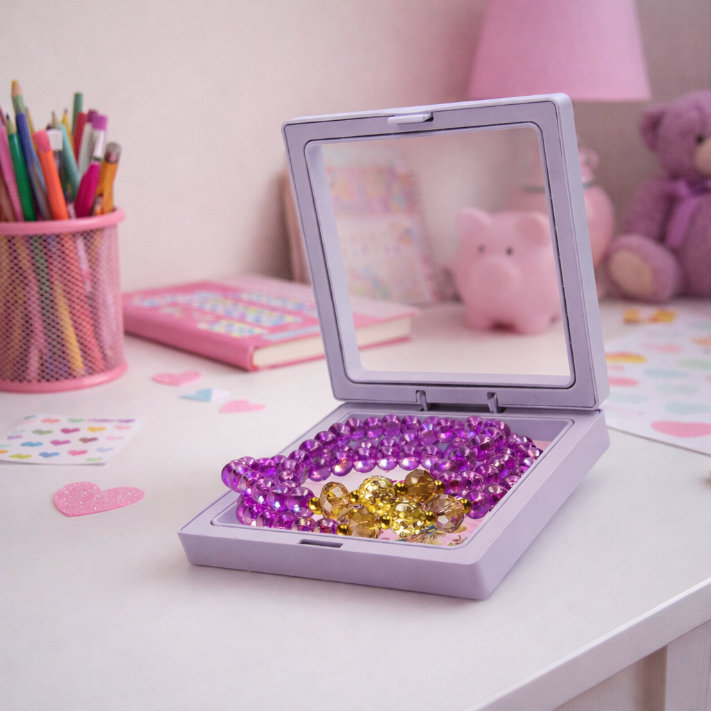 Bransoletka umieszczona jest w eleganckim, przezroczystym pudełeczku w kolorze lawendowym.