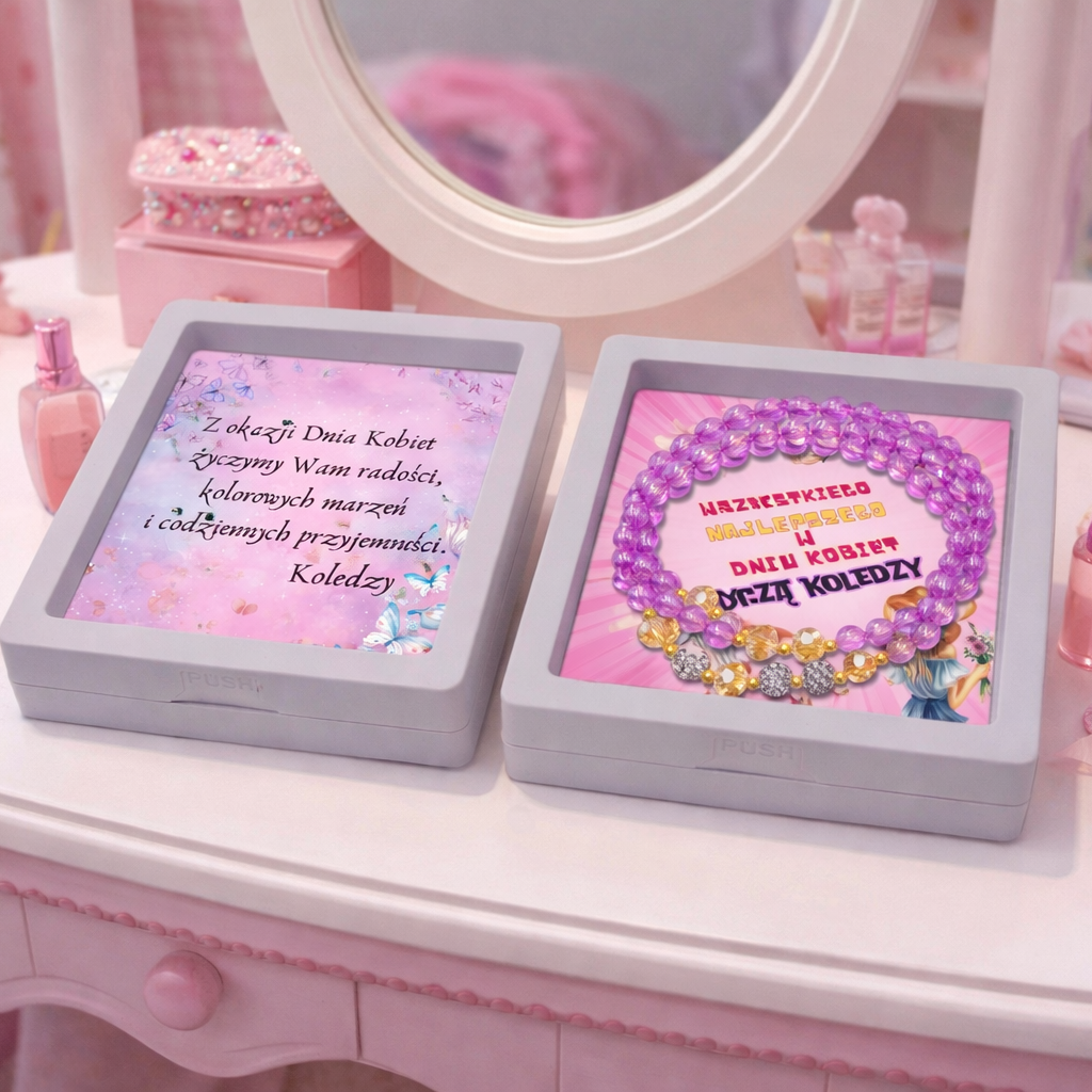 Prezent na Dzień Kobiet BRANSOLETKA od kolegów z KLASY PRZEDSZKOLA pudełko