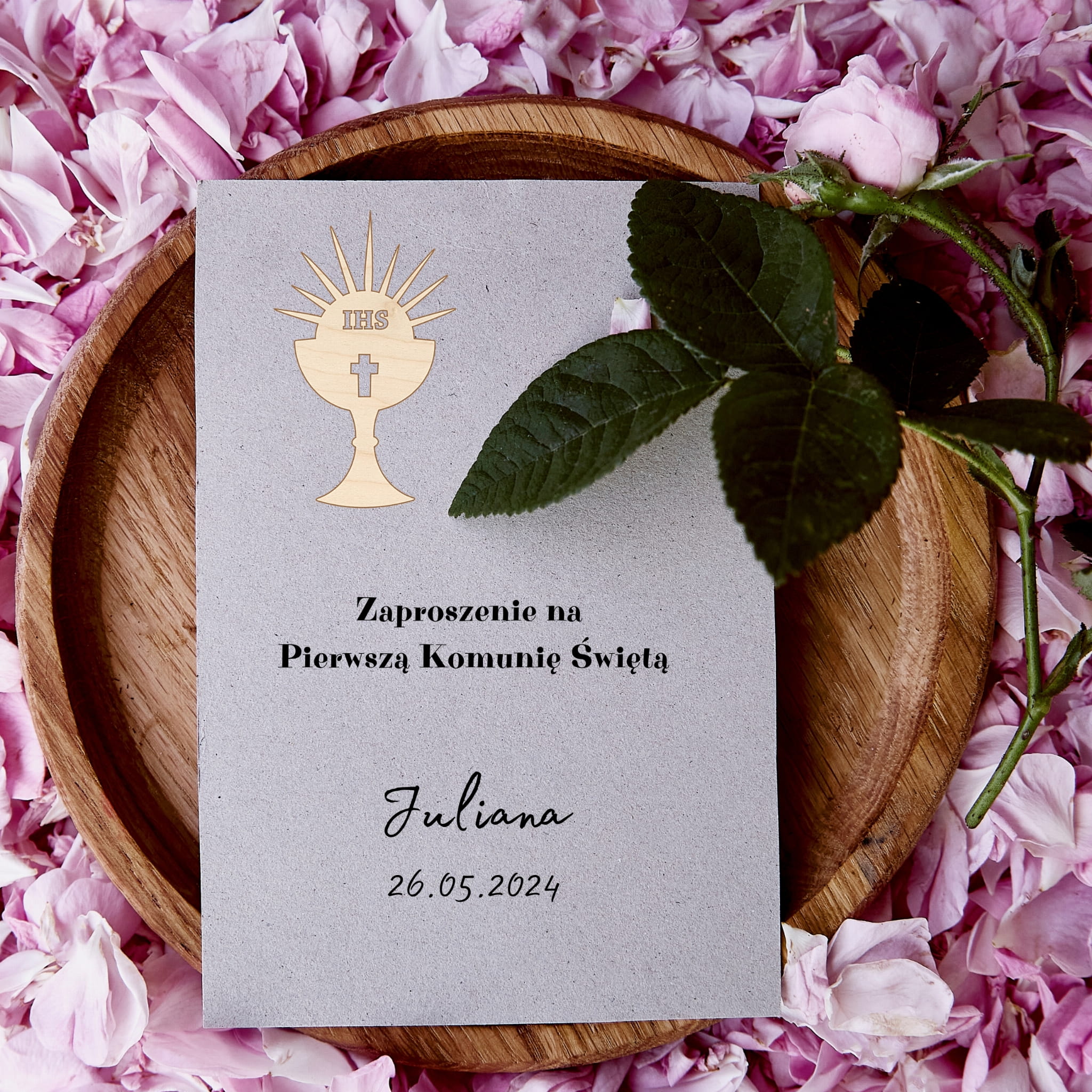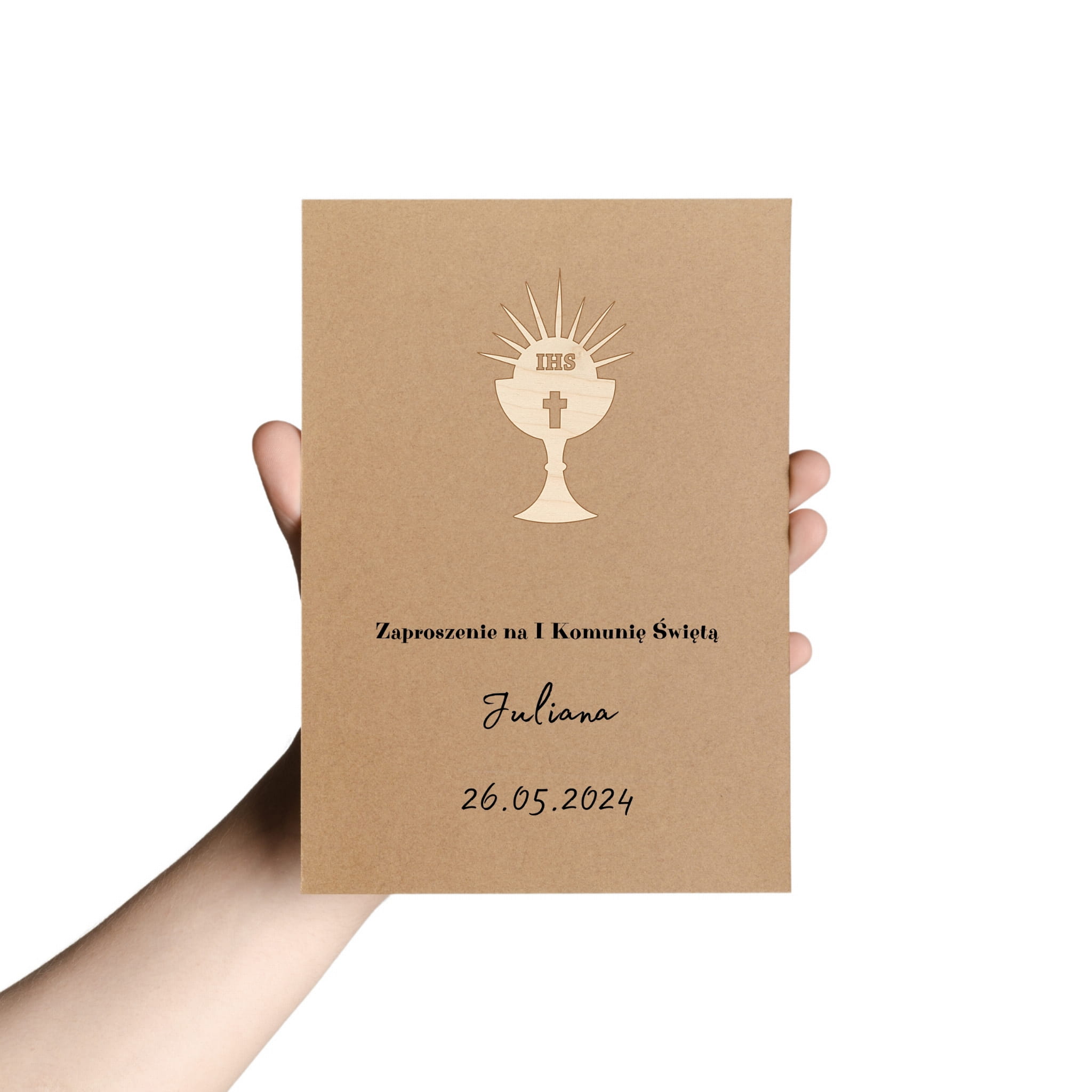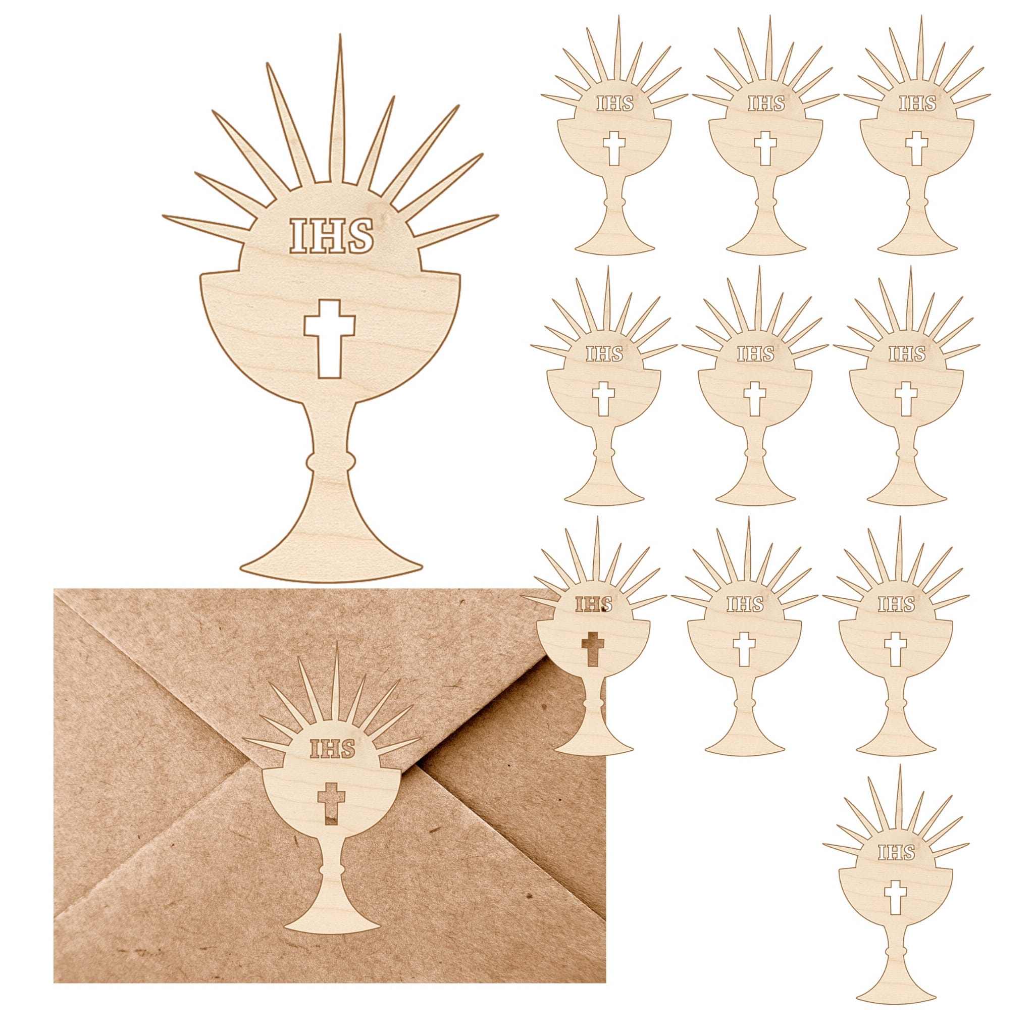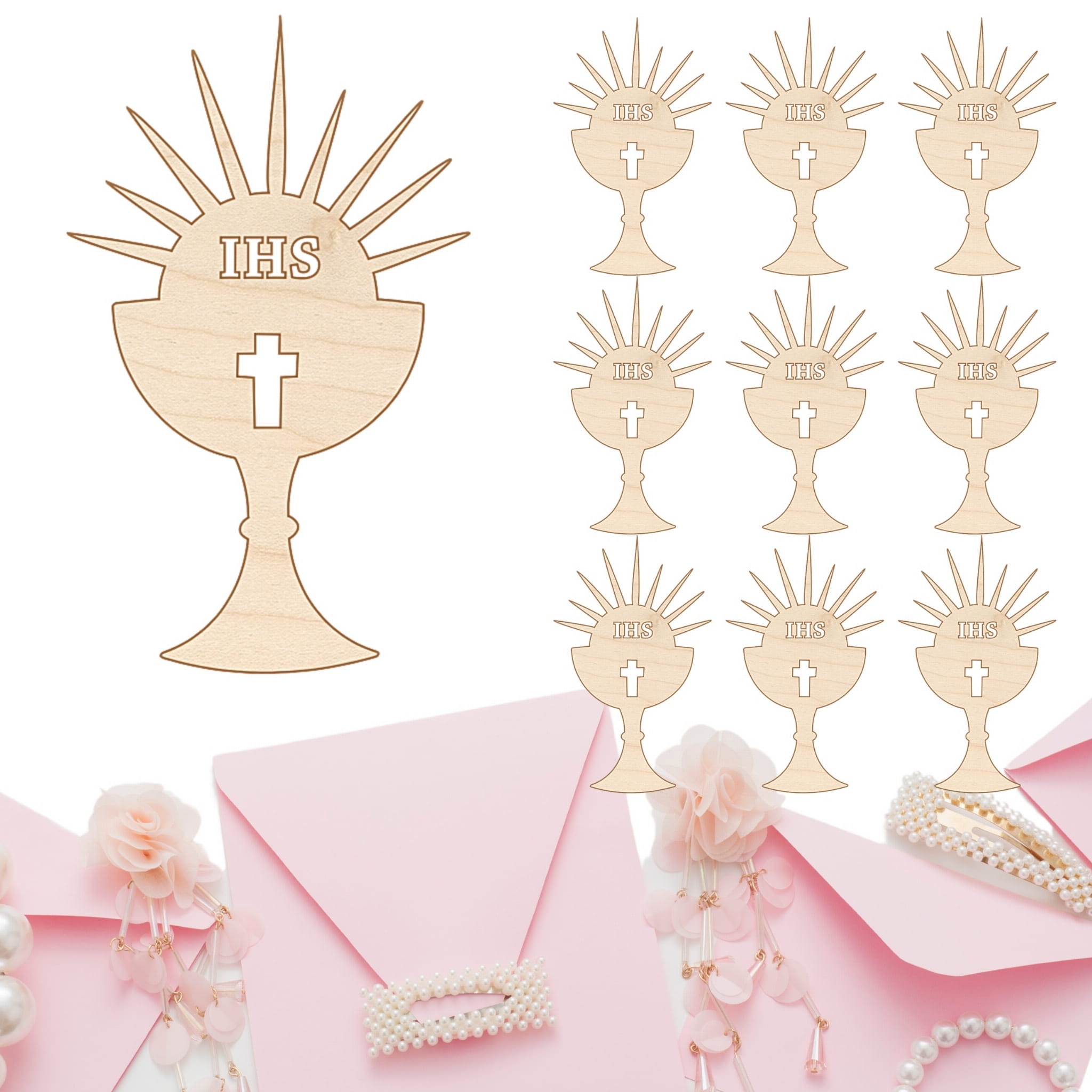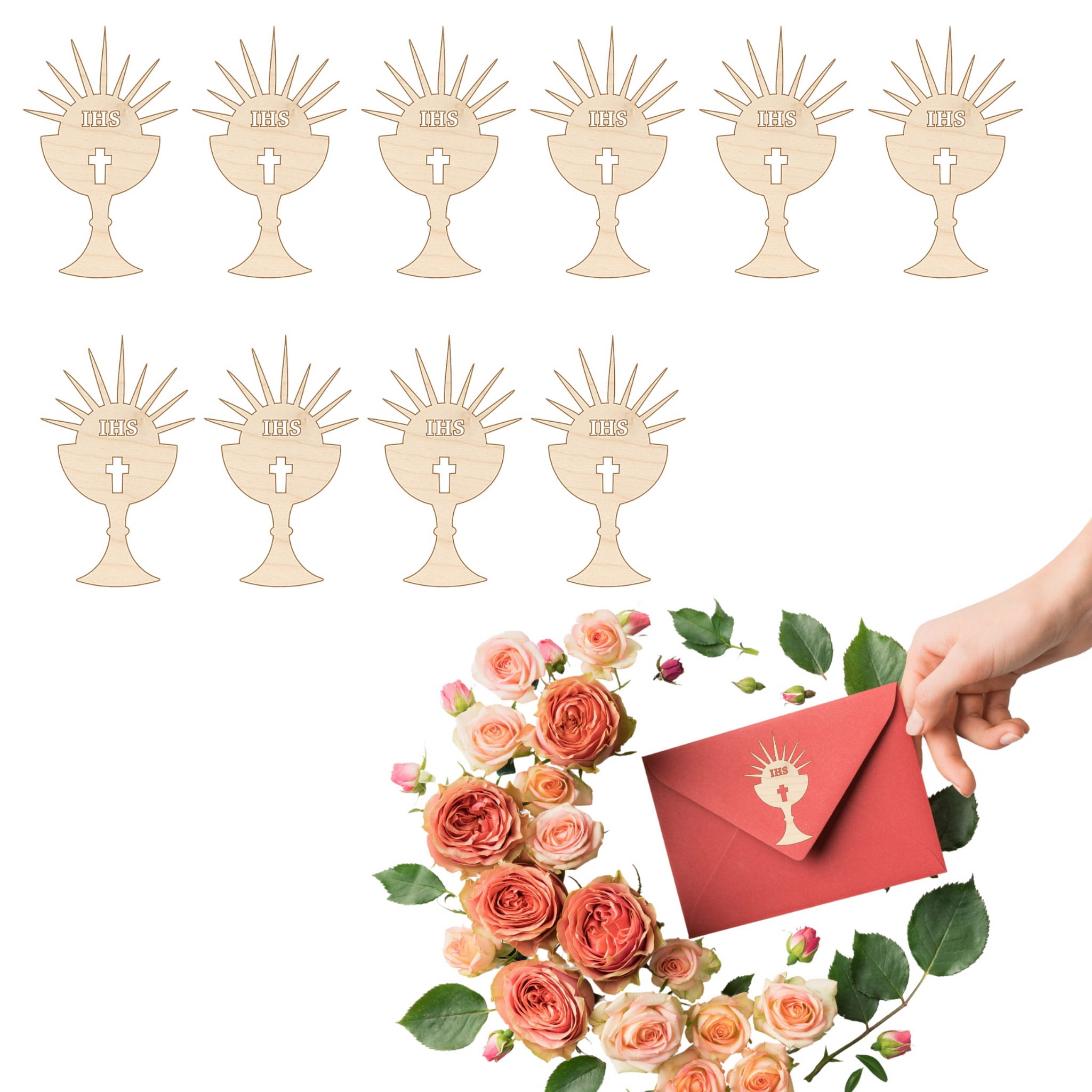 SCRAPKI DREWNIANE GRAWER 1 KOMUNIA ŚW OZDOBA ZAPROSZENIA KOMUNIJNEGO 10SZT