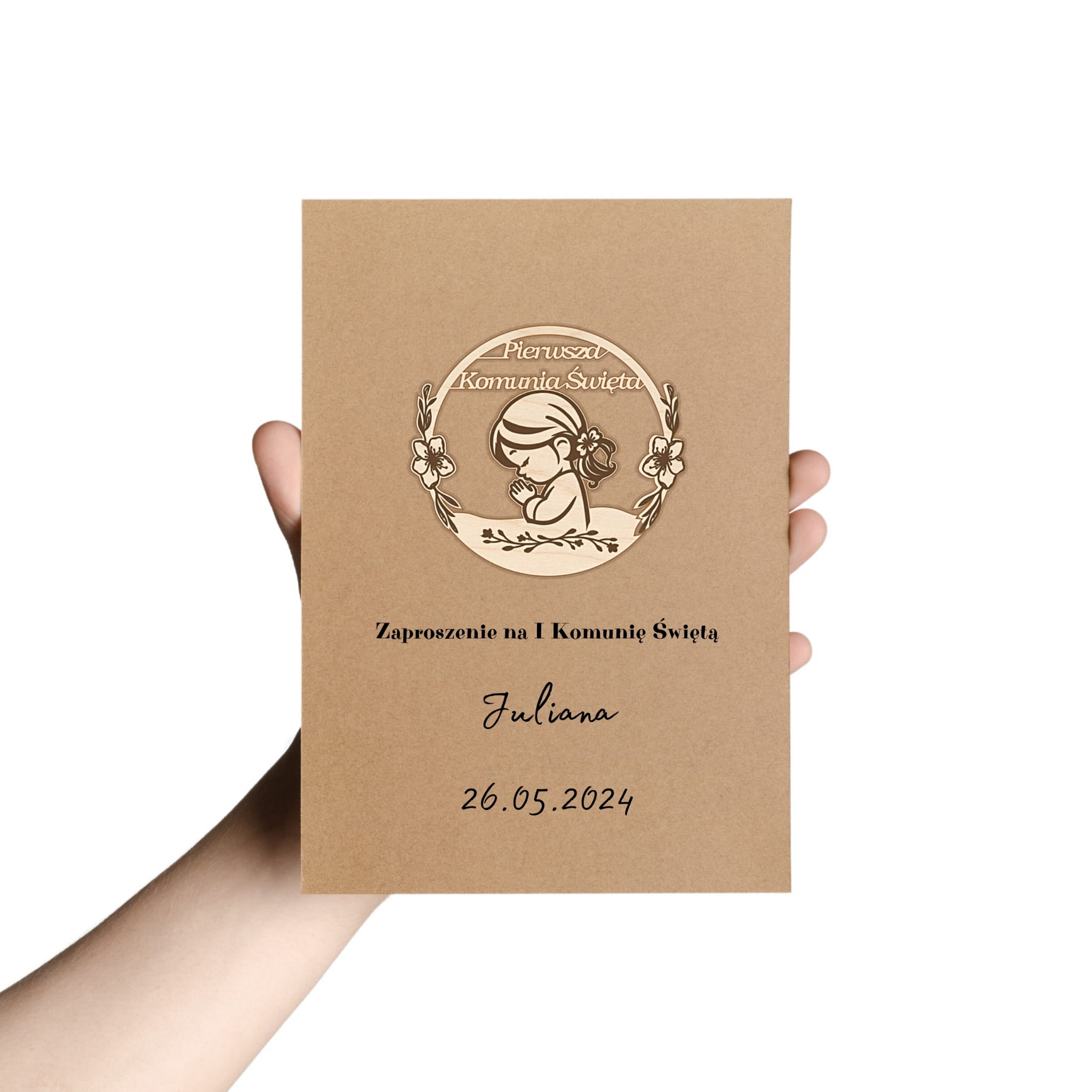 SCRAPKI DREWNIANE GRAWER 1 KOMUNIA ŚW OZDOBA ZAPROSZENIA KOMUNIJNEGO 10SZT