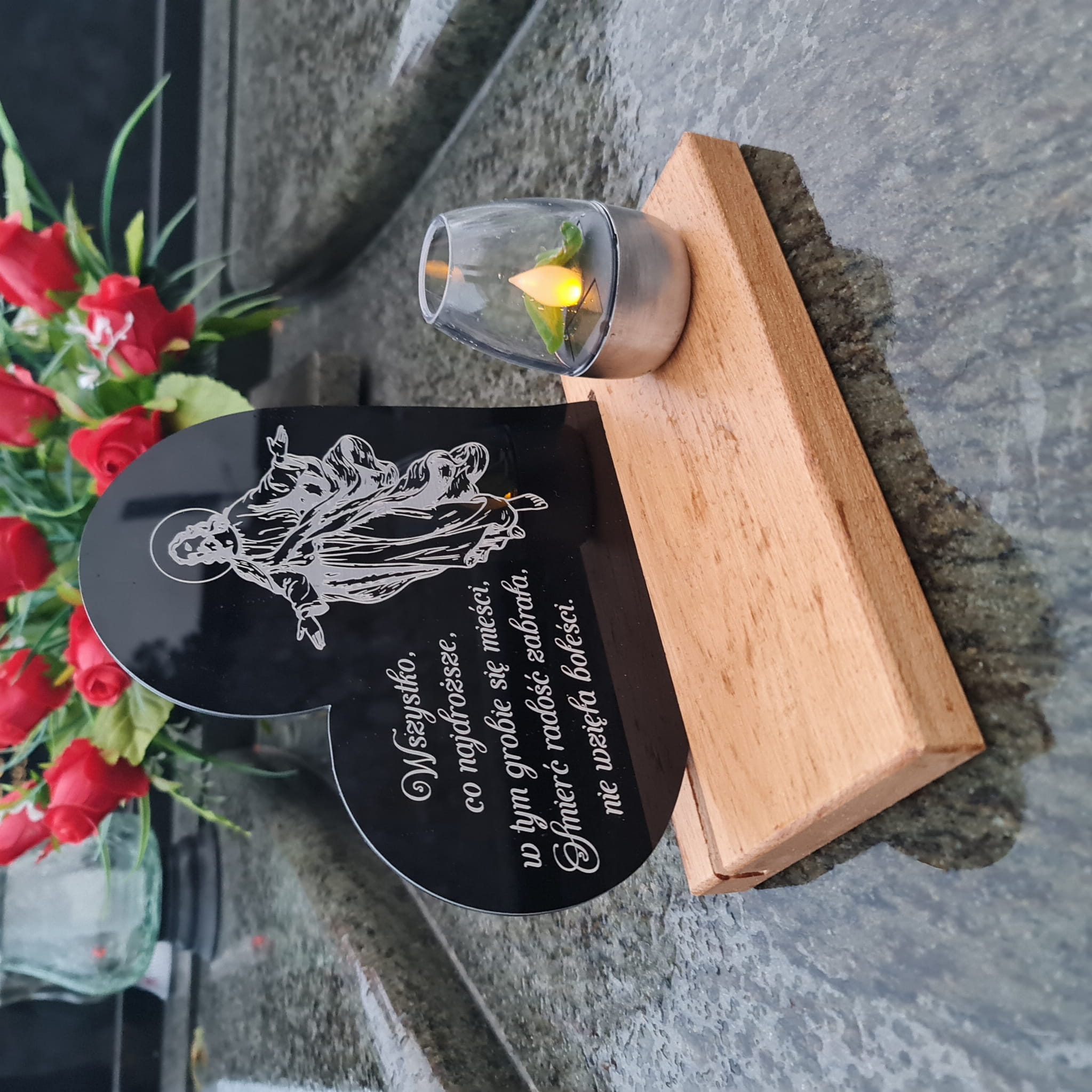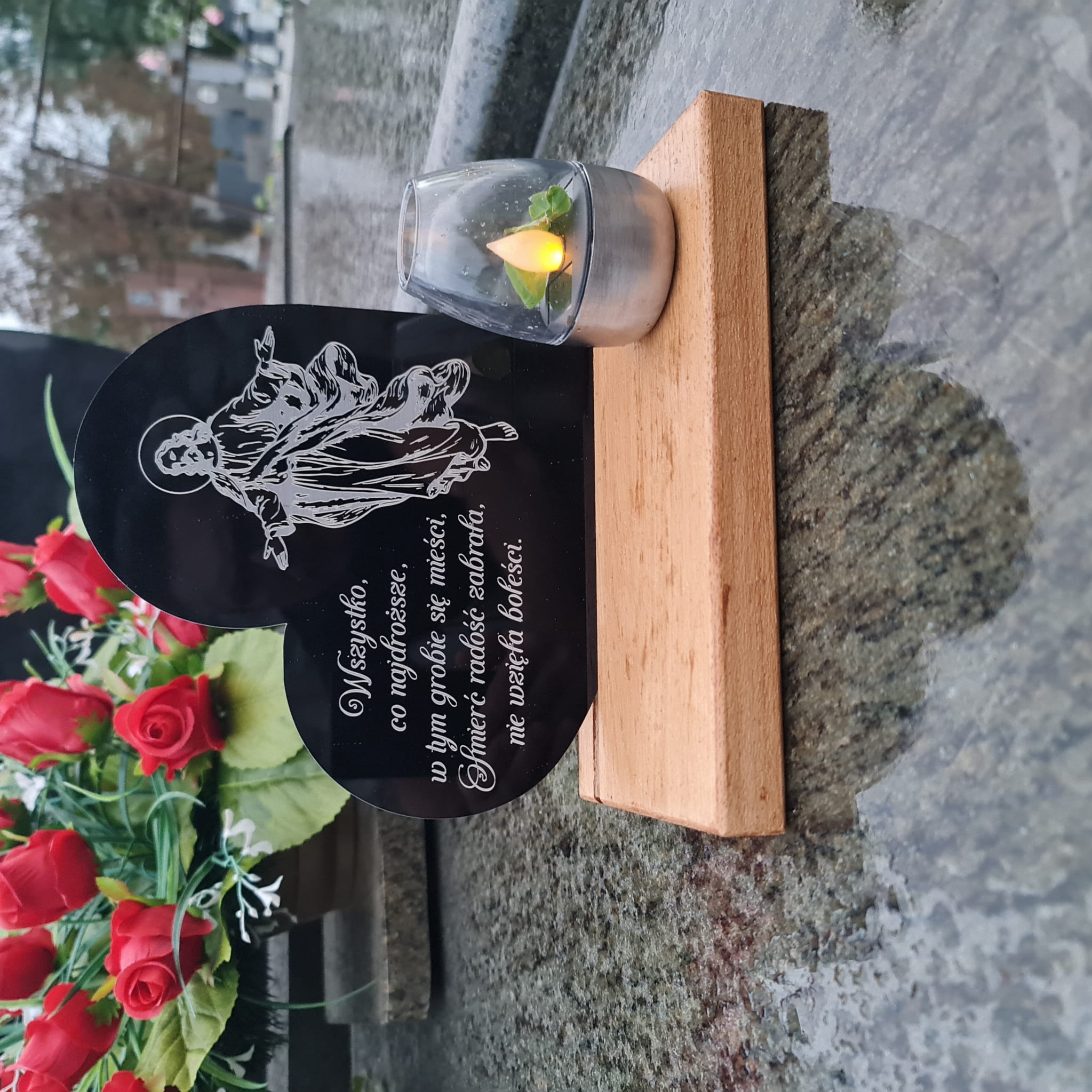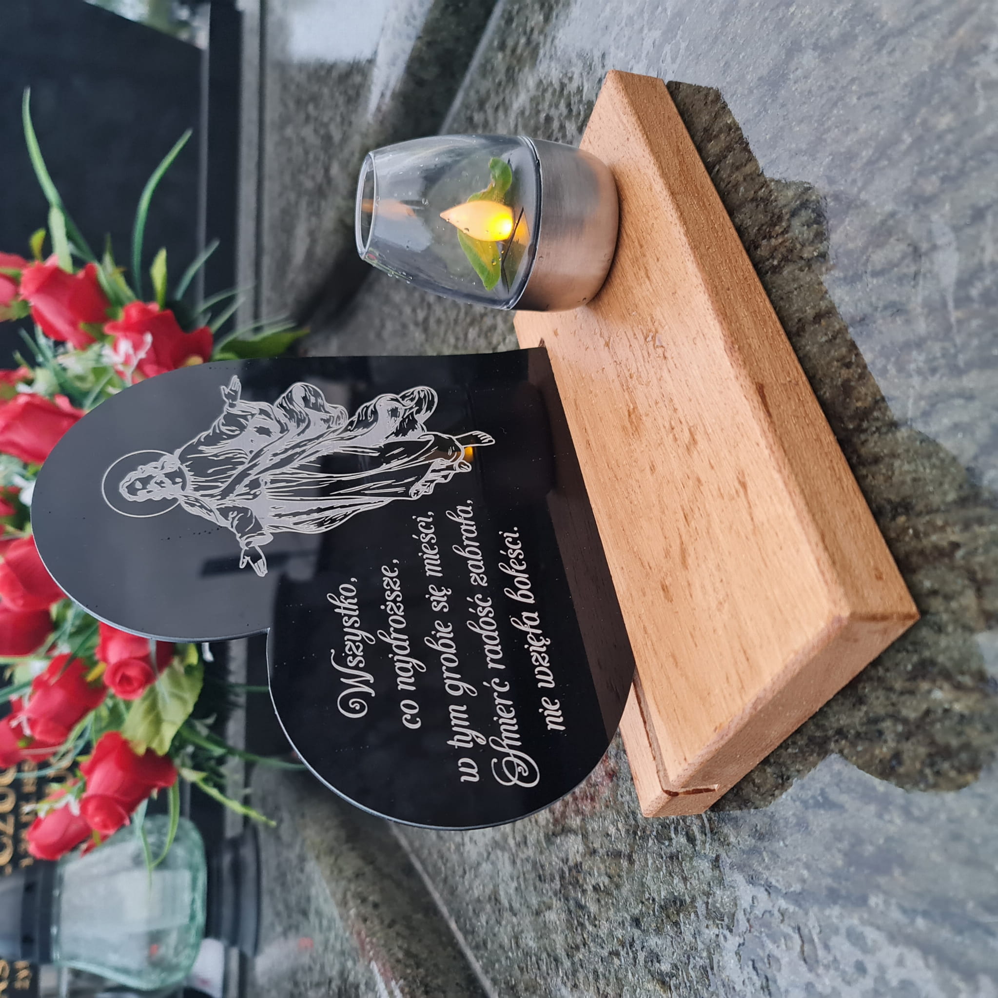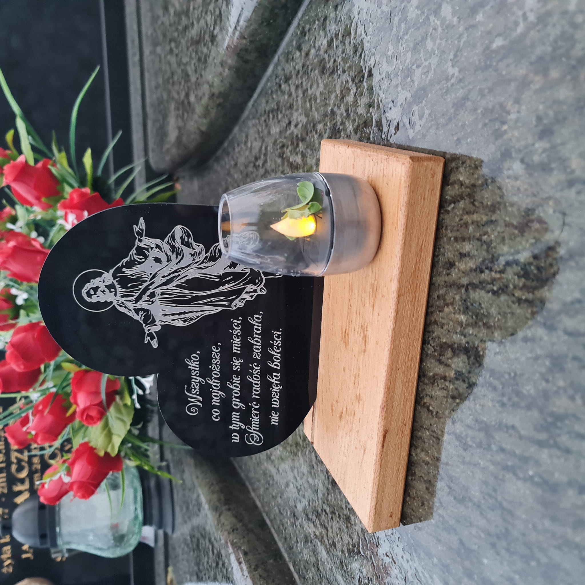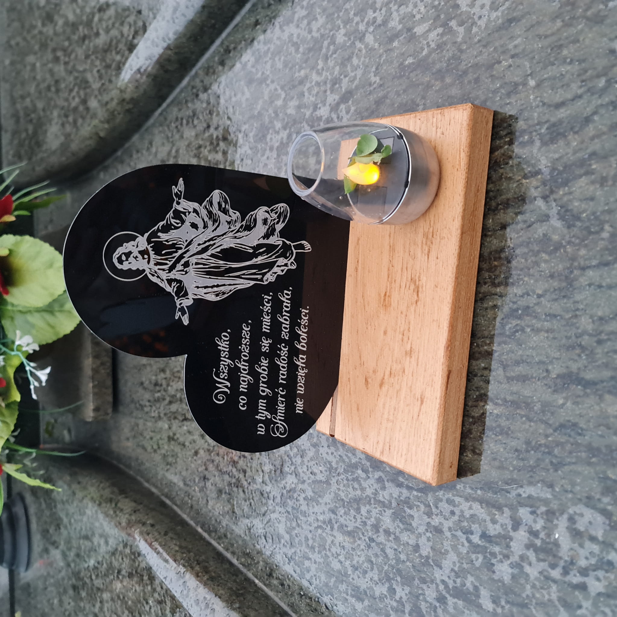 - Tabliczka ze szkła akrylowego z sentencją nachylona pod lekkim kątem