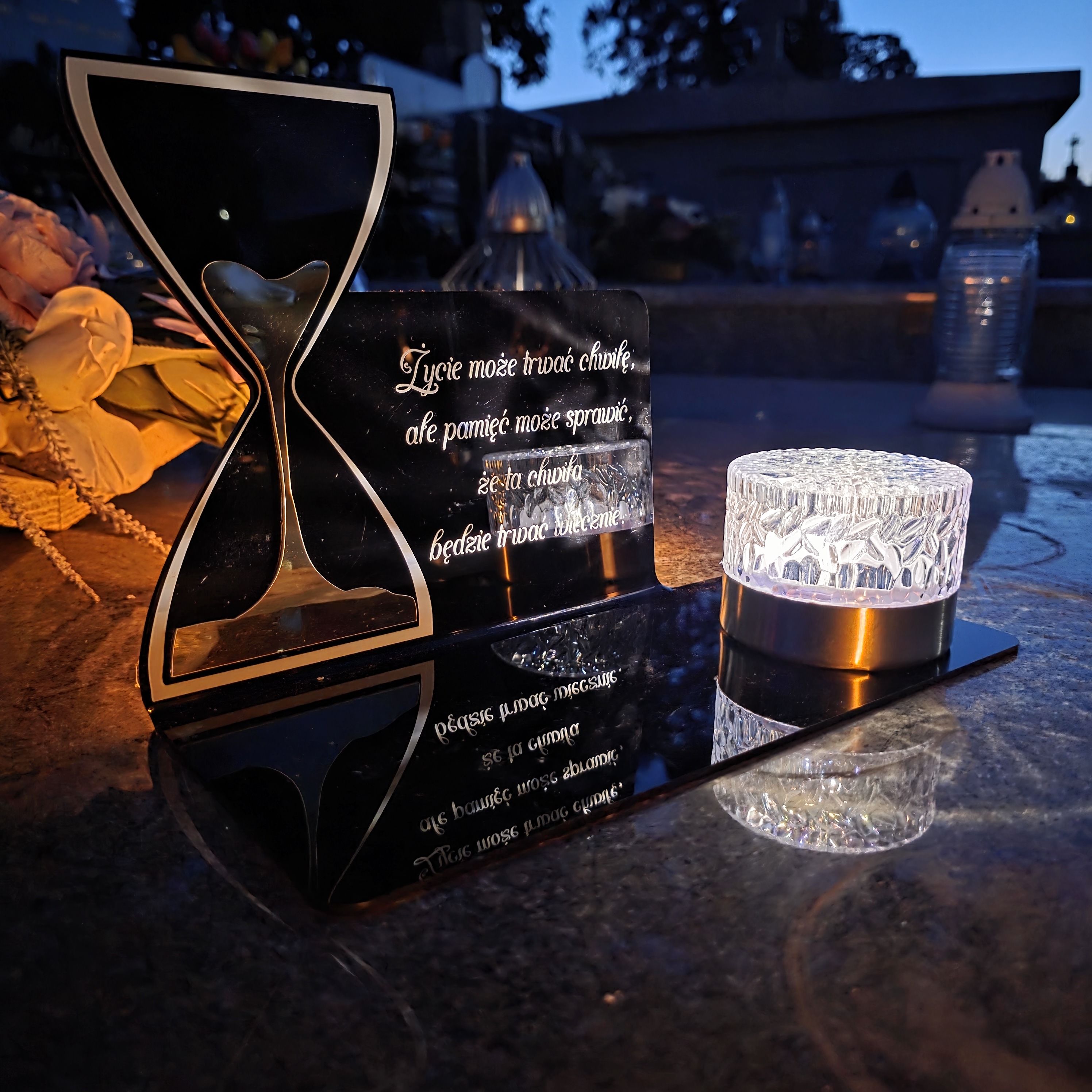 SOLARNY ZNICZ Led Statuetka NA CMENTARZ GRÓB DUŻA Lampka Led z Grawerem