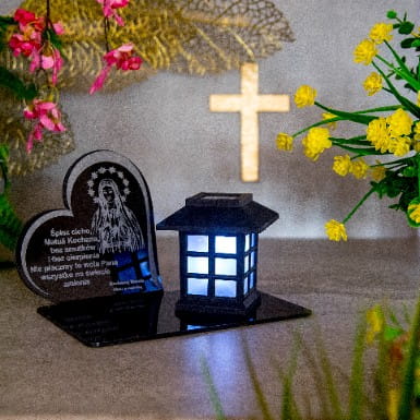 Solarny ZNICZ Led STATUETKA na Cmentarz GRÓB Elegancki Solarny MARYJA