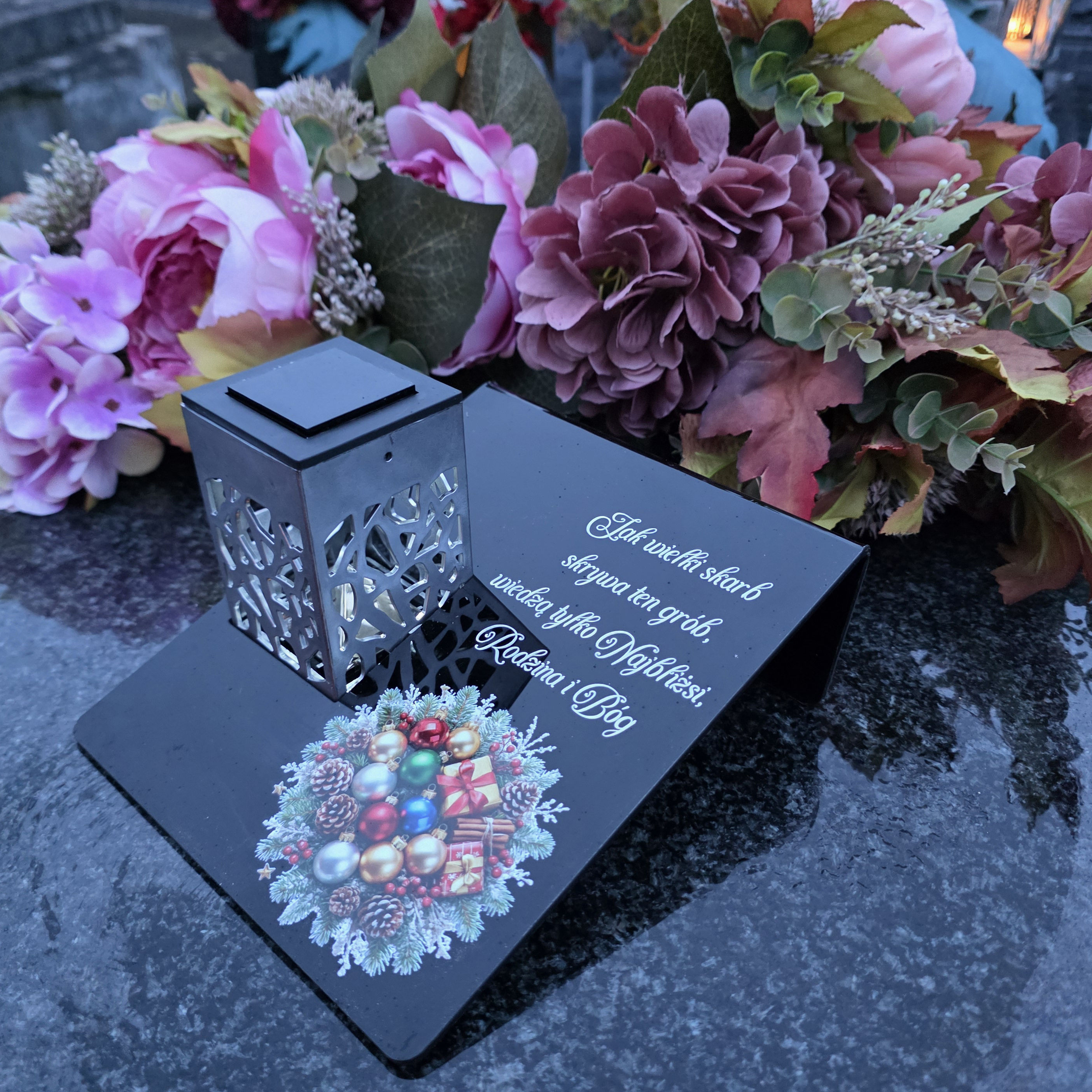Zastosowaniu ledowej lampy słonecznej czyni znicz energooszczędnym i ekologicznym (nie wymaga wymiany baterii).