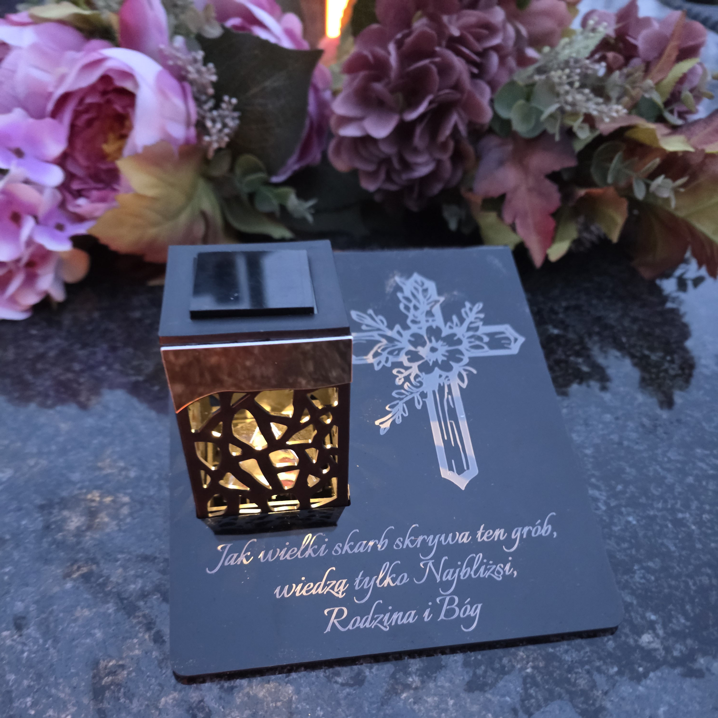 Solarny znicz LED STATUETKA NA CMENTARZ GRÓB DUŻA wieczna lampka nagrobna