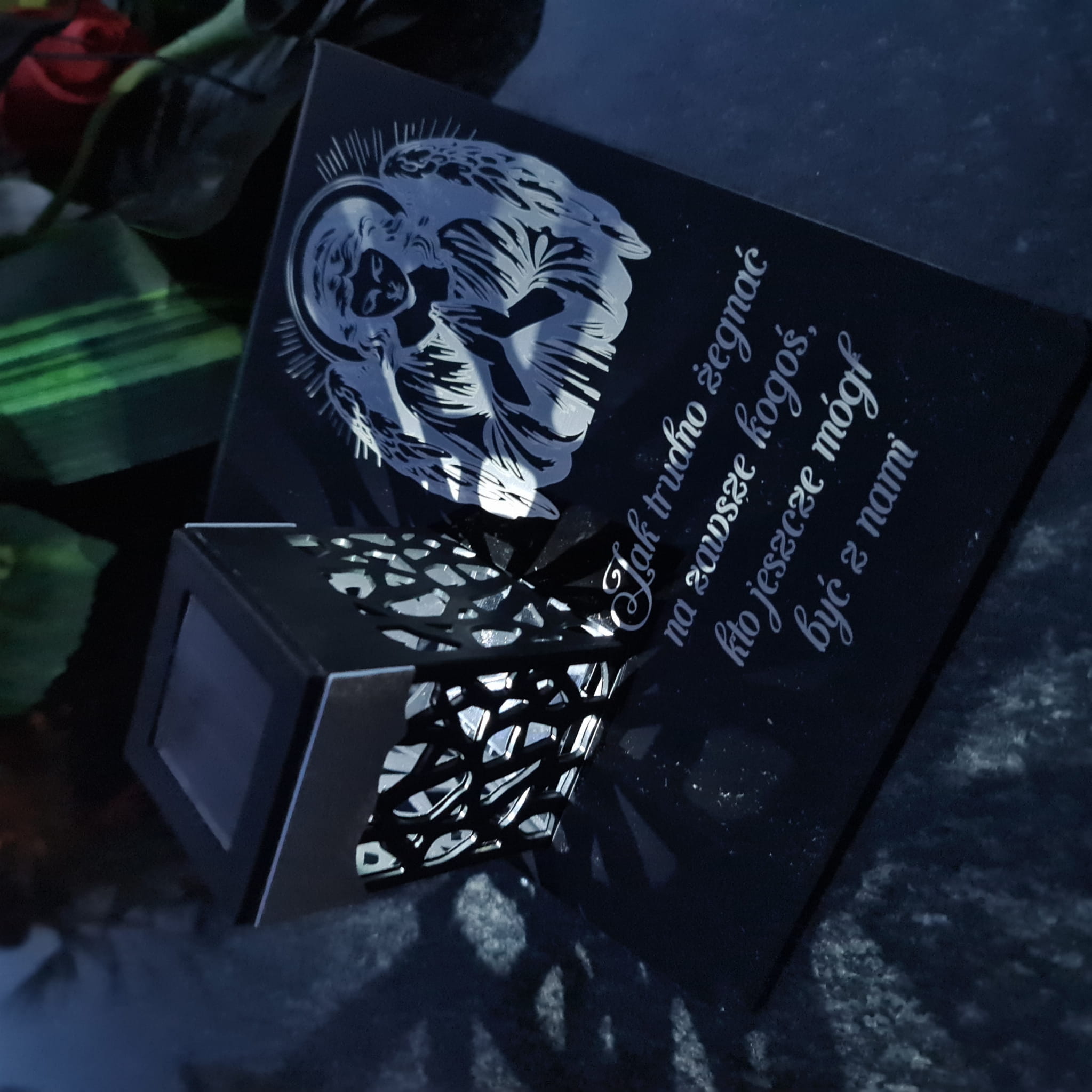 Solarny znicz LED STATUETKA NA CMENTARZ z Aniołem na GRÓB DUŻA wieczna lampka nagrobna