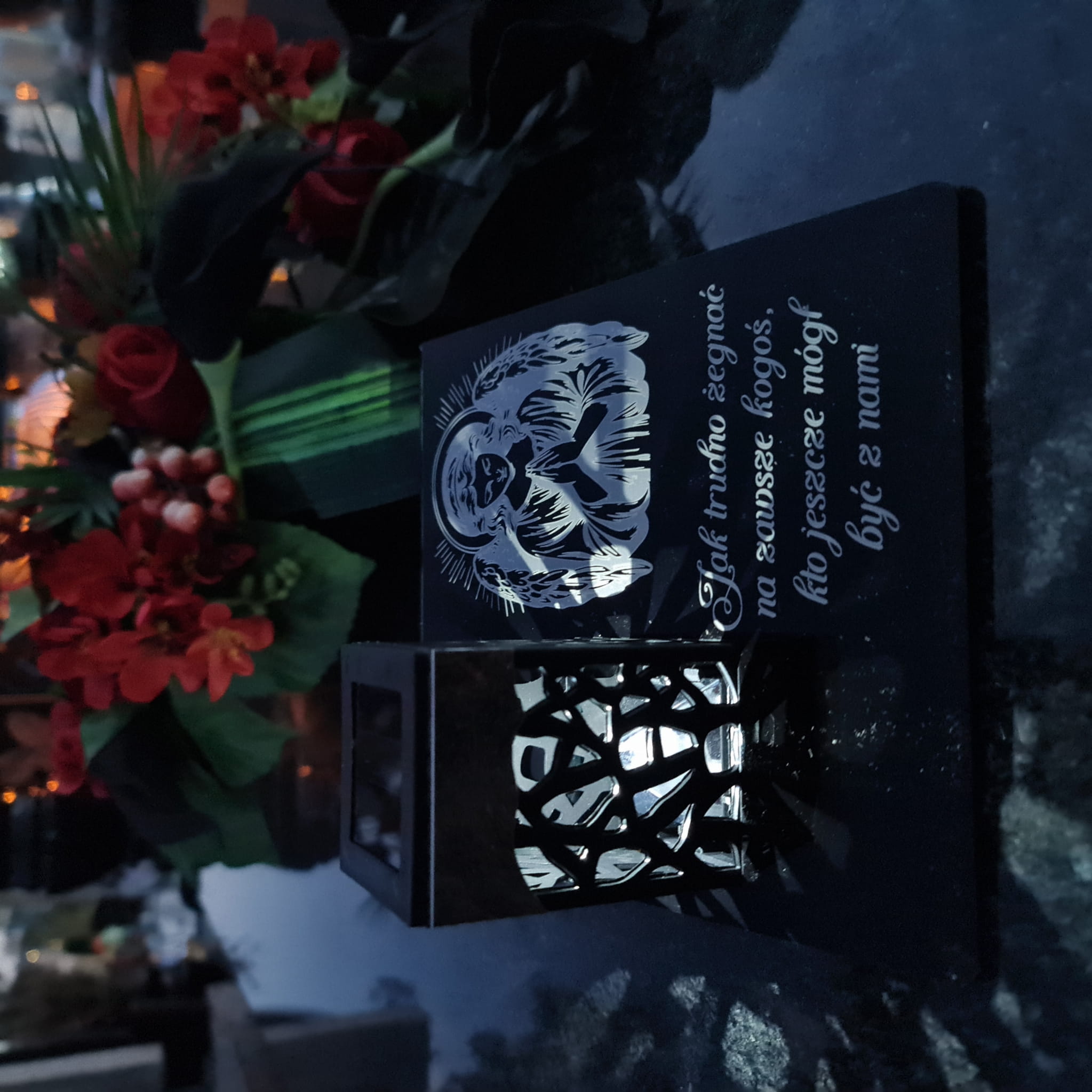 - tabliczka z sentencją nachylona pod lekkim kątem