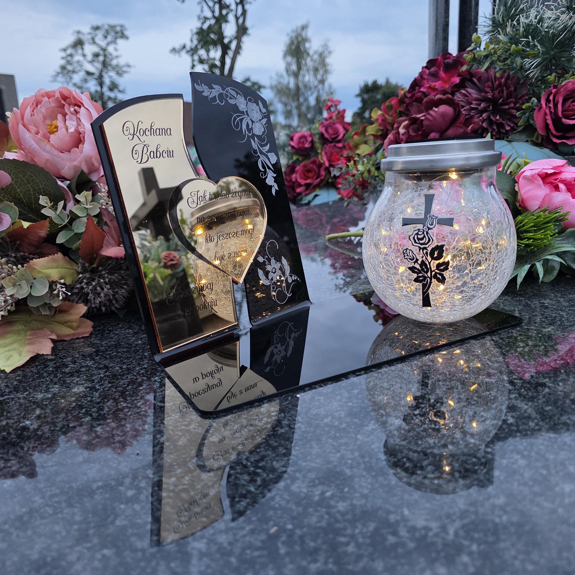 Ten wyjątkowy znicz nagrobny to piękny symbol miłości i pamięci, która nigdy nie gaśnie.