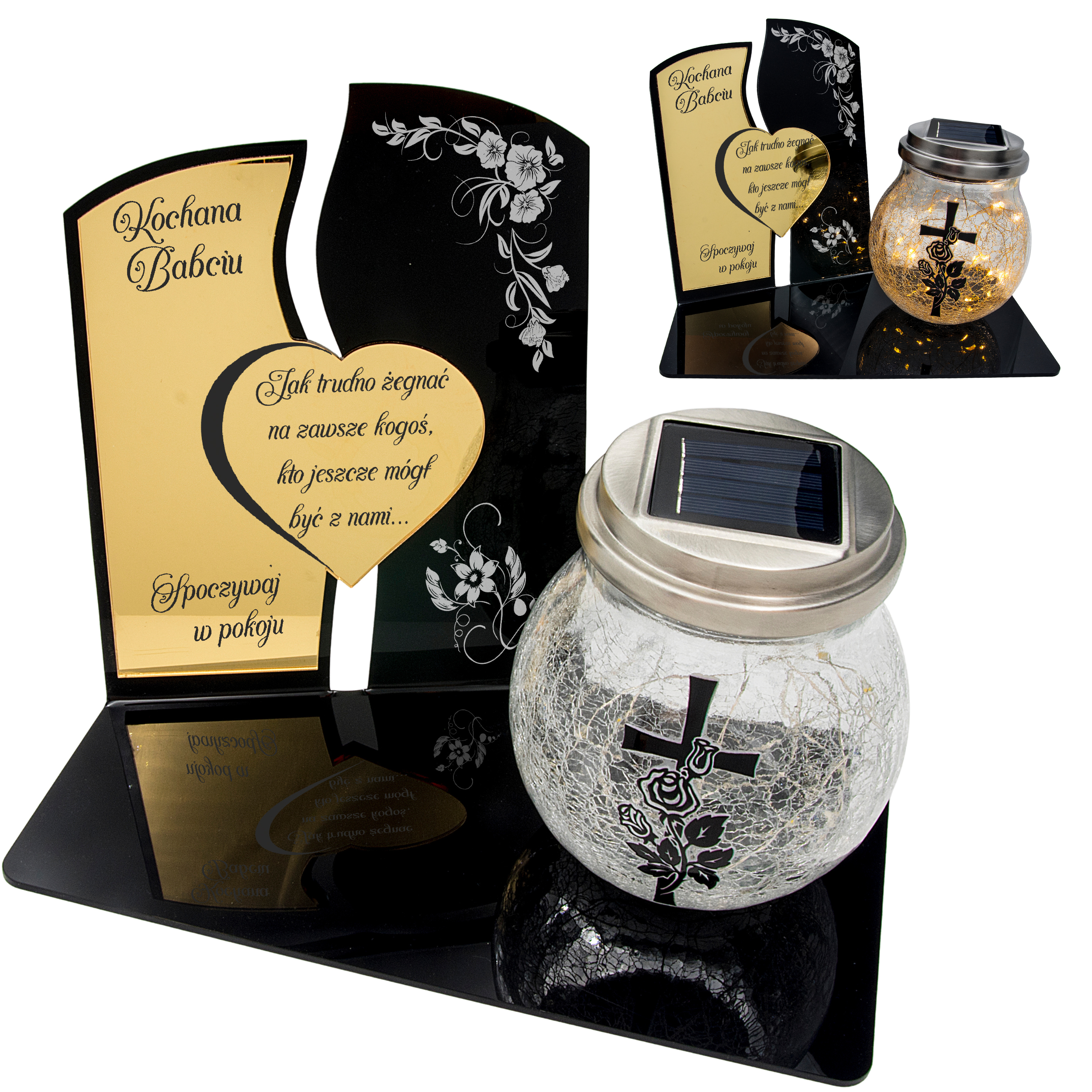 Elegancki znicz nagrobny dla Babci – ze złotymi akcentami i solarną lampką