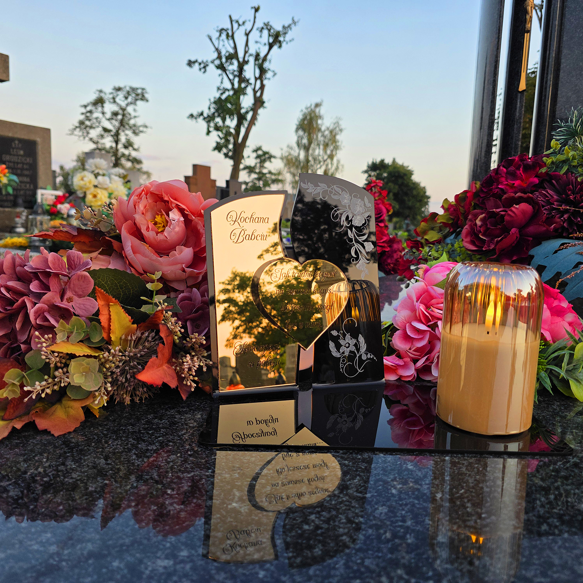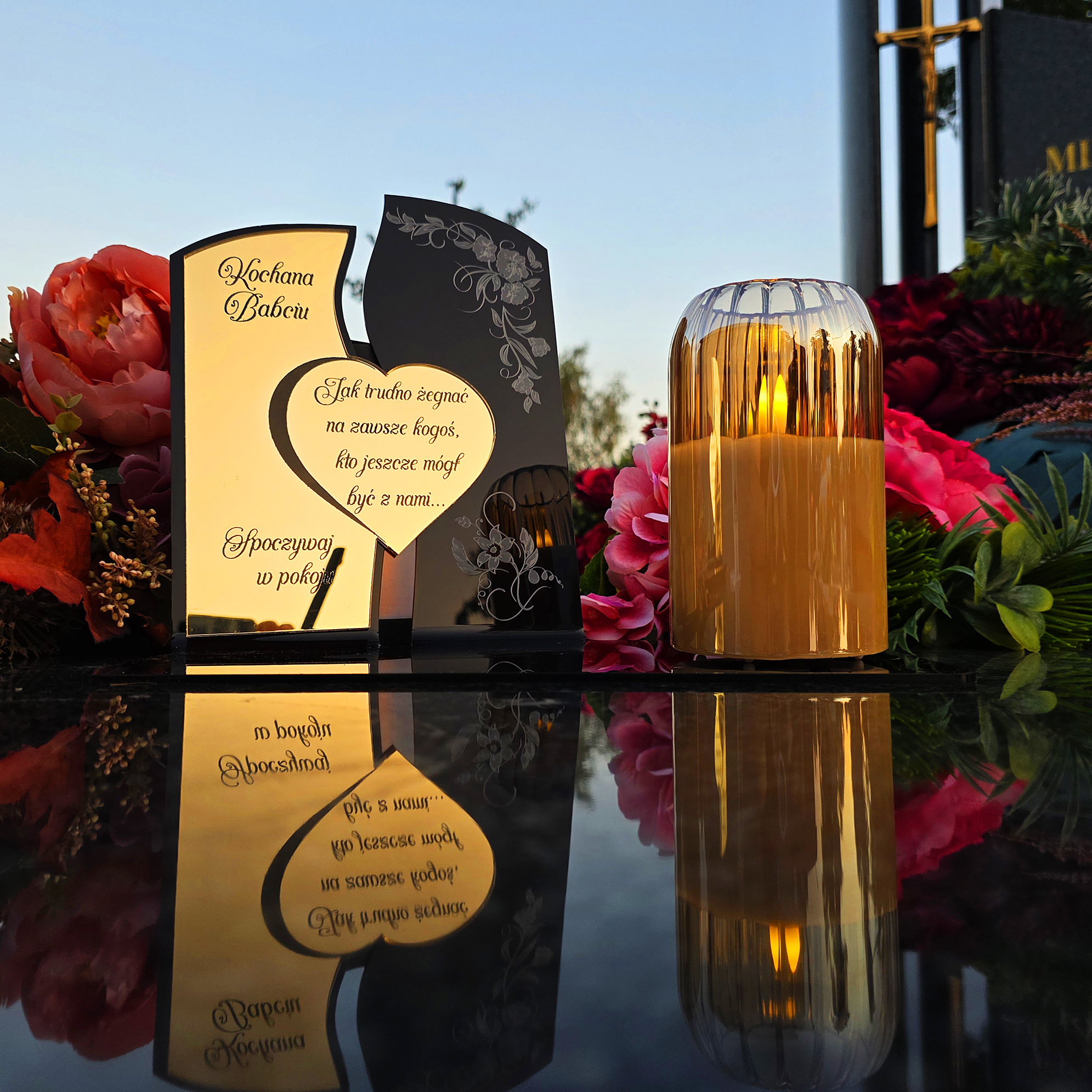 Ten wyjątkowy znicz nagrobny to piękny symbol miłości i pamięci, która nigdy nie gaśnie.