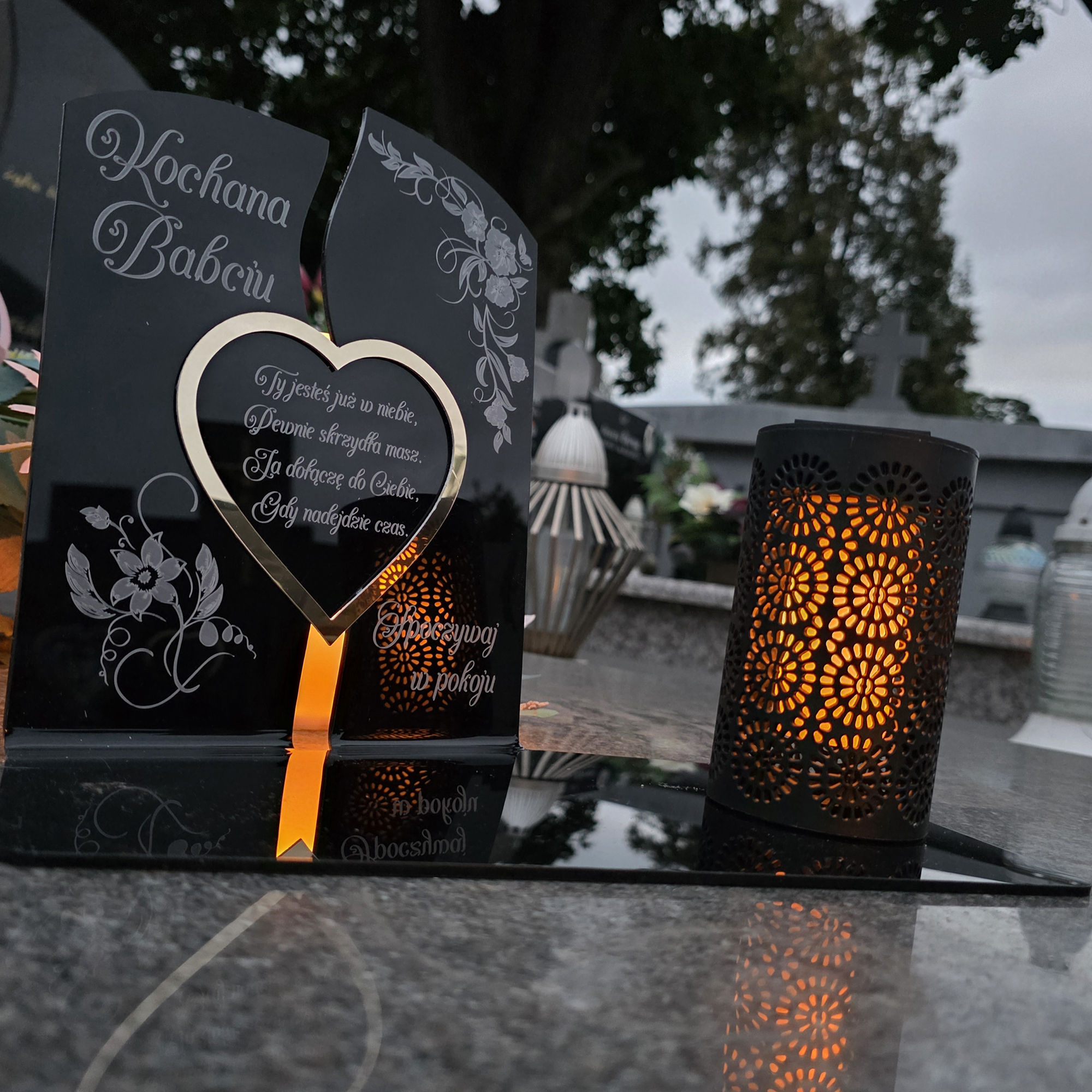 Ten wyjątkowy znicz nagrobny to piękny symbol miłości i pamięci, która nigdy nie gaśnie.