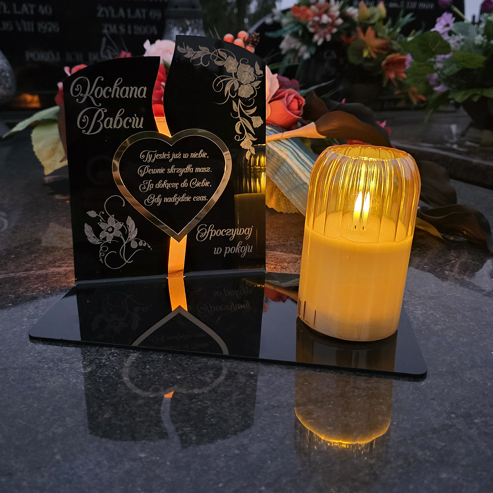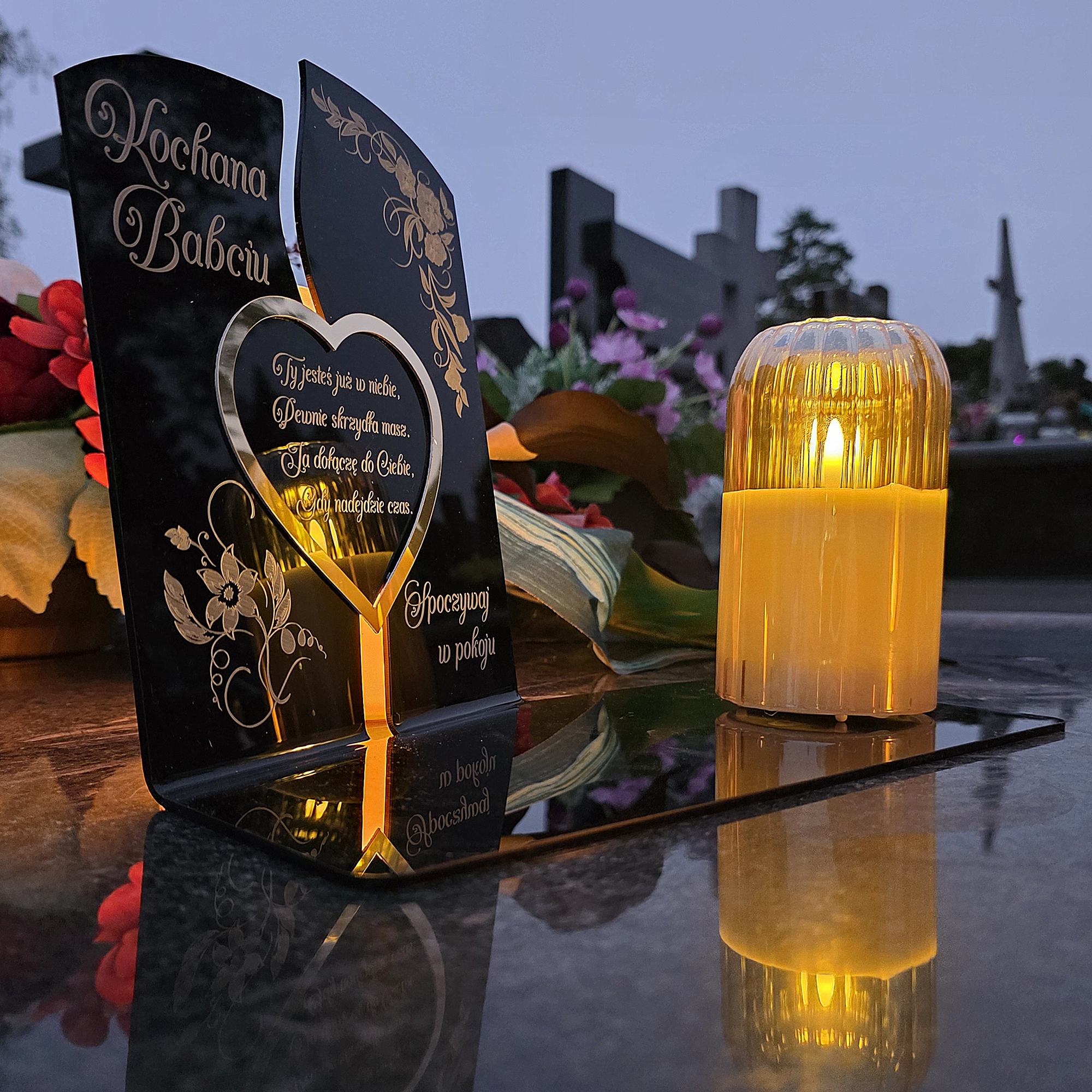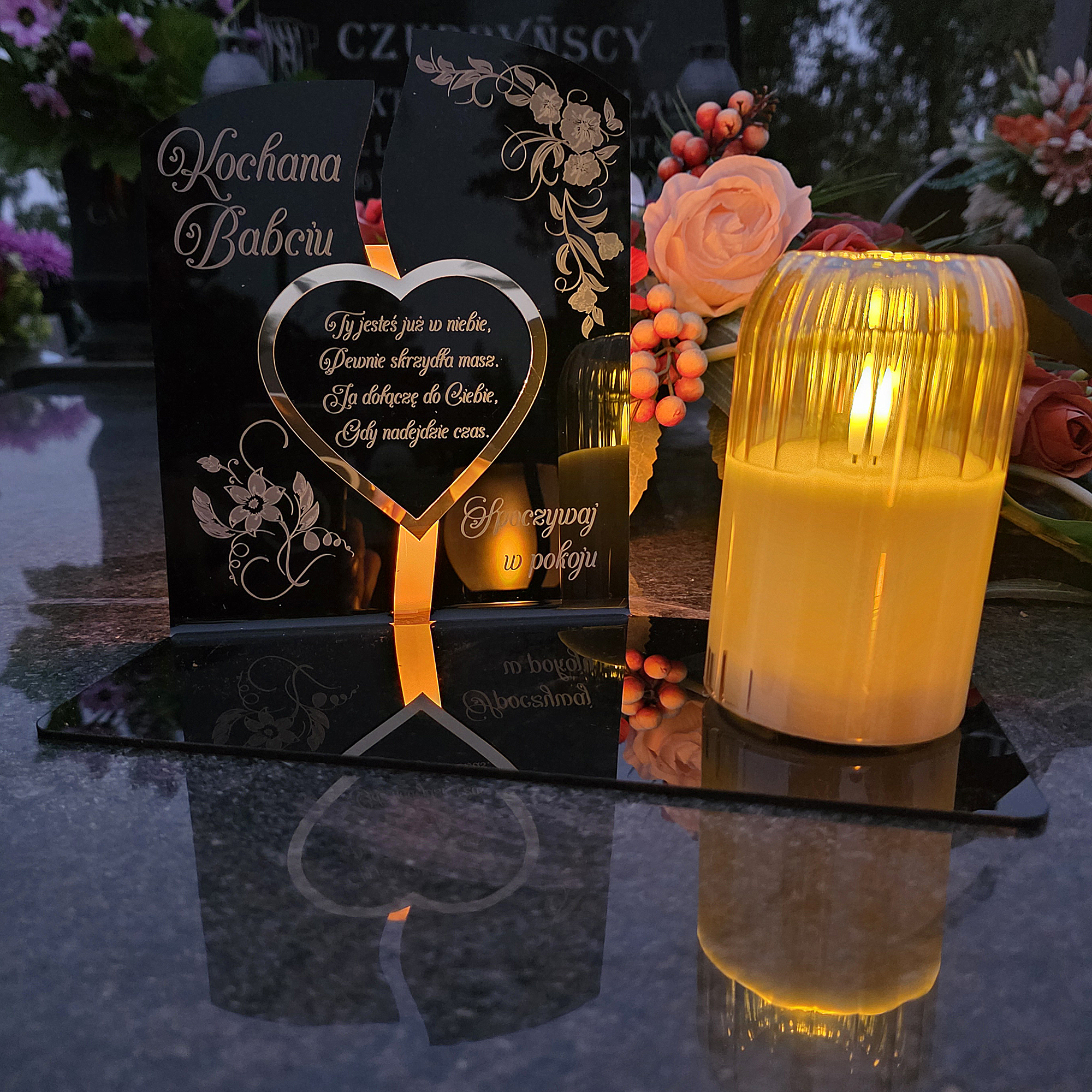 Ten wyjątkowy znicz nagrobny to piękny symbol miłości i pamięci, która nigdy nie gaśnie.