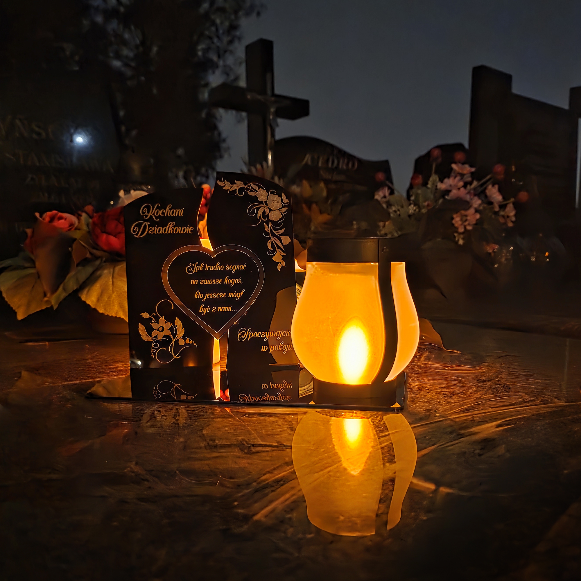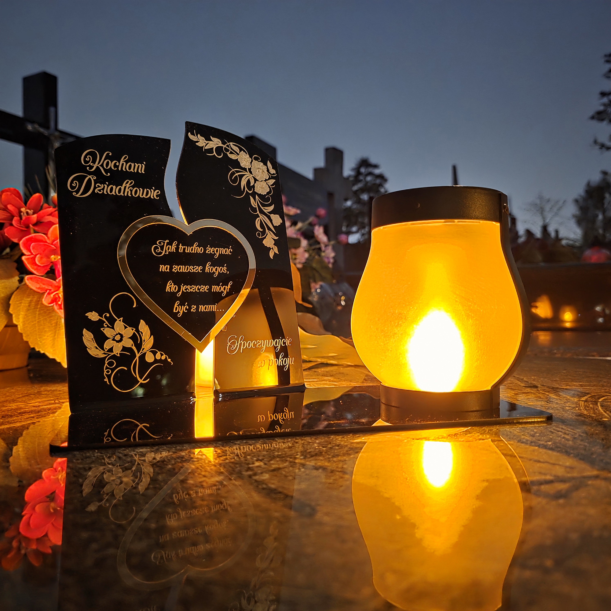 Ten wyjątkowy znicz nagrobny to piękny symbol miłości i pamięci, która nigdy nie gaśnie.