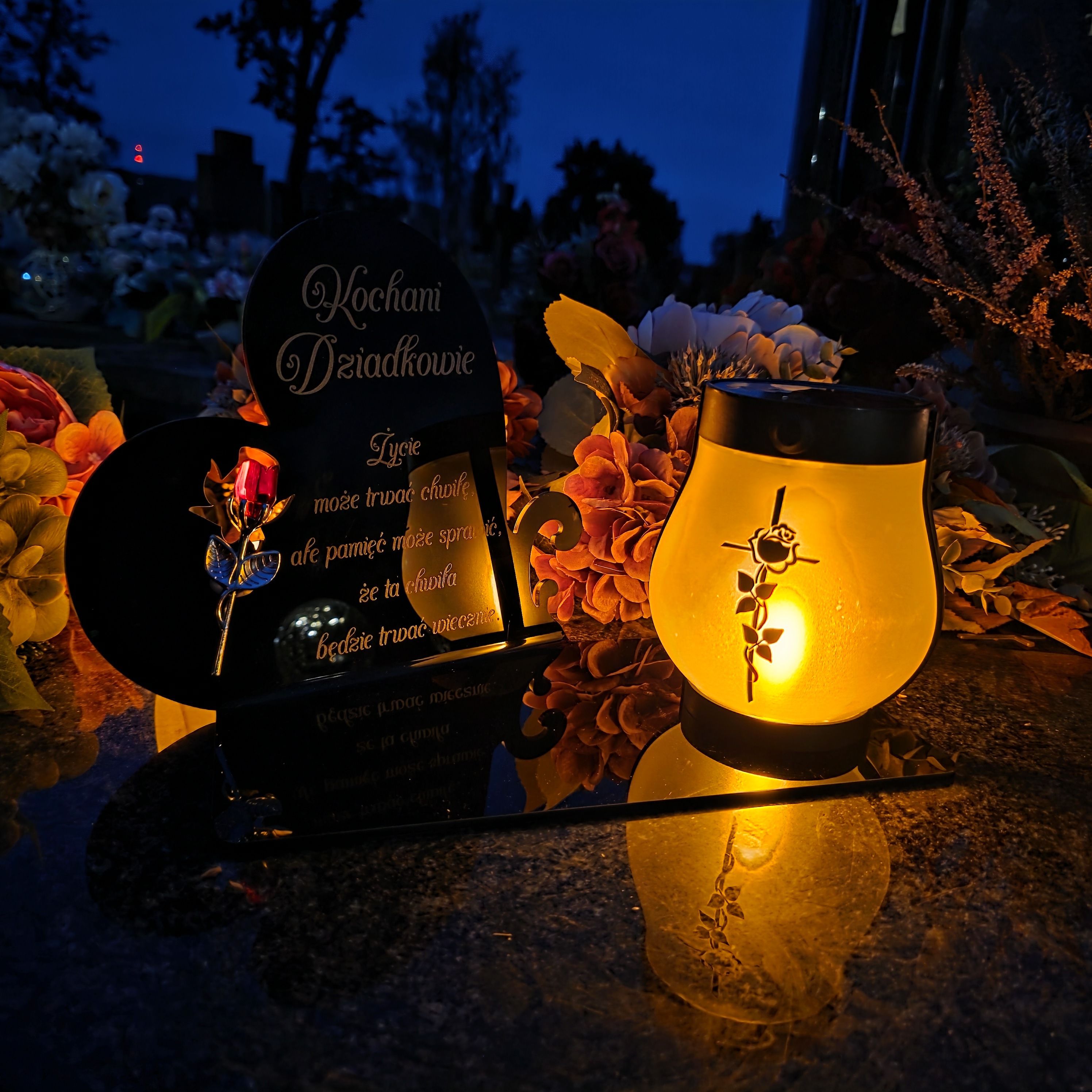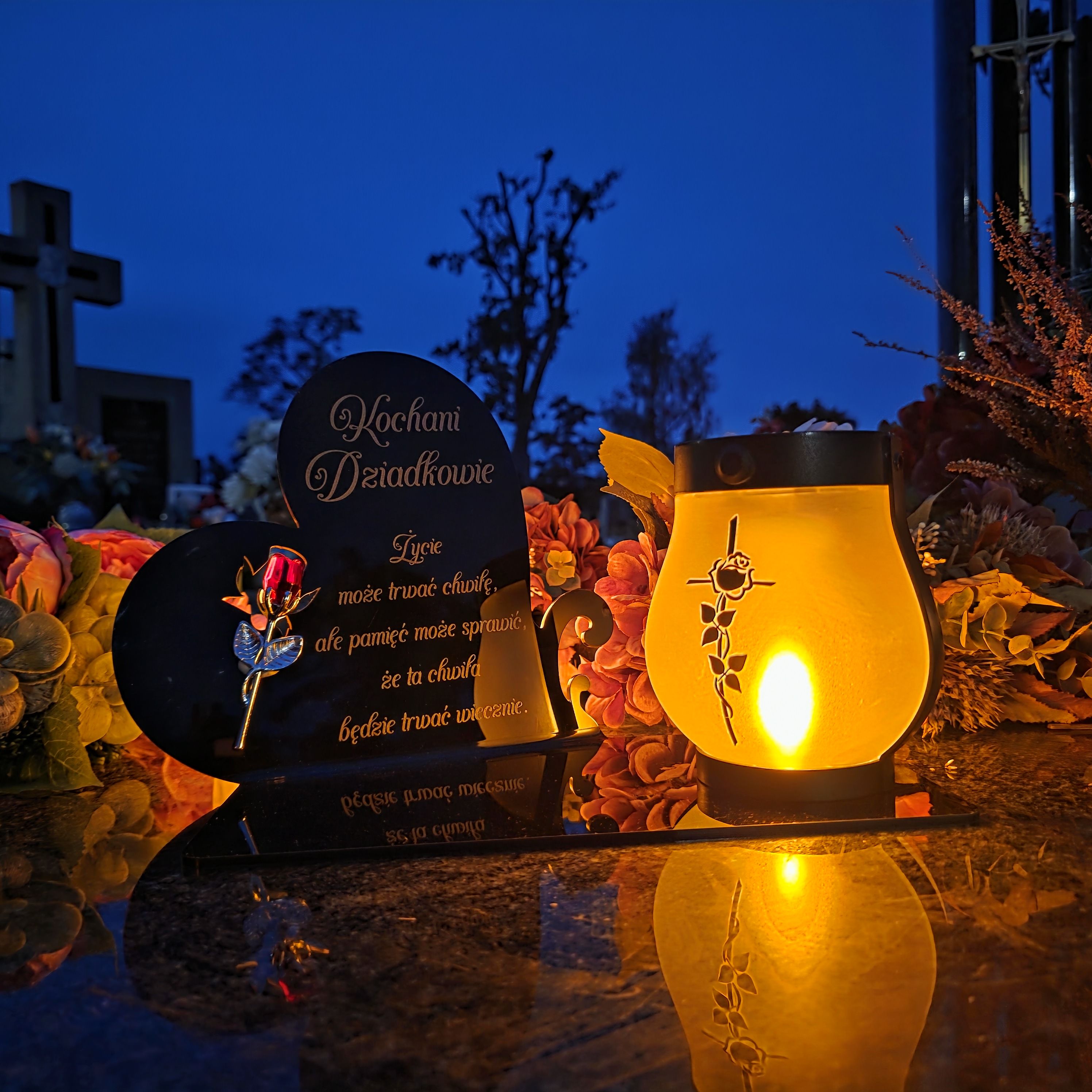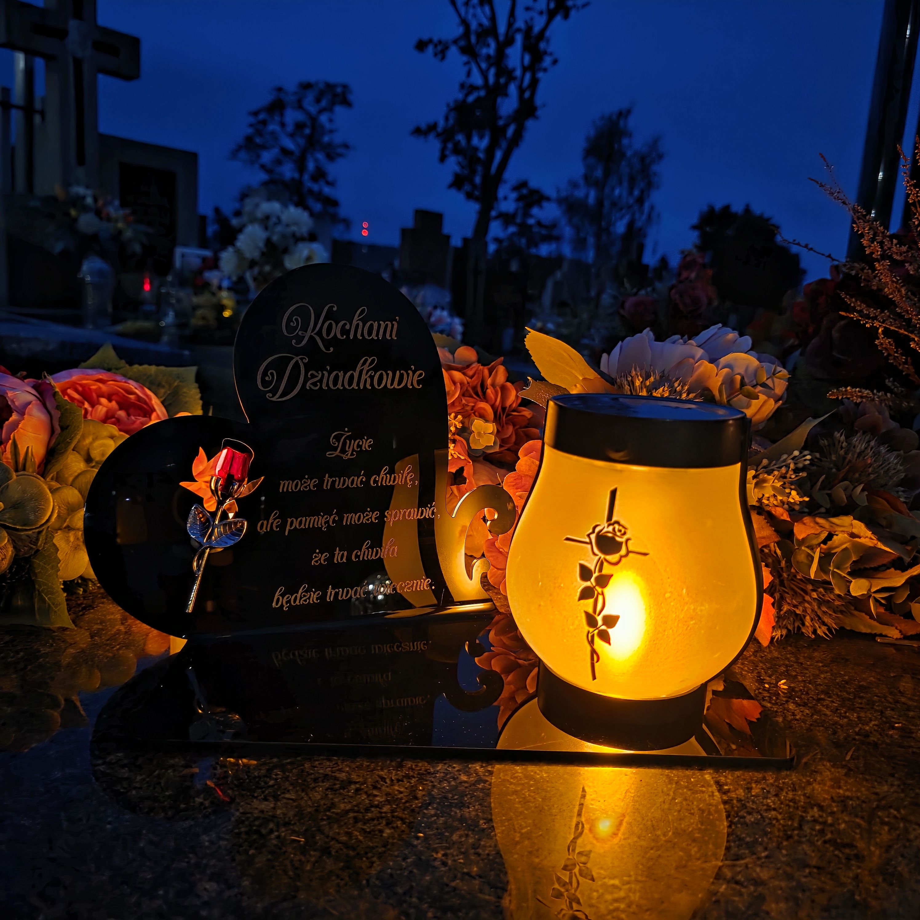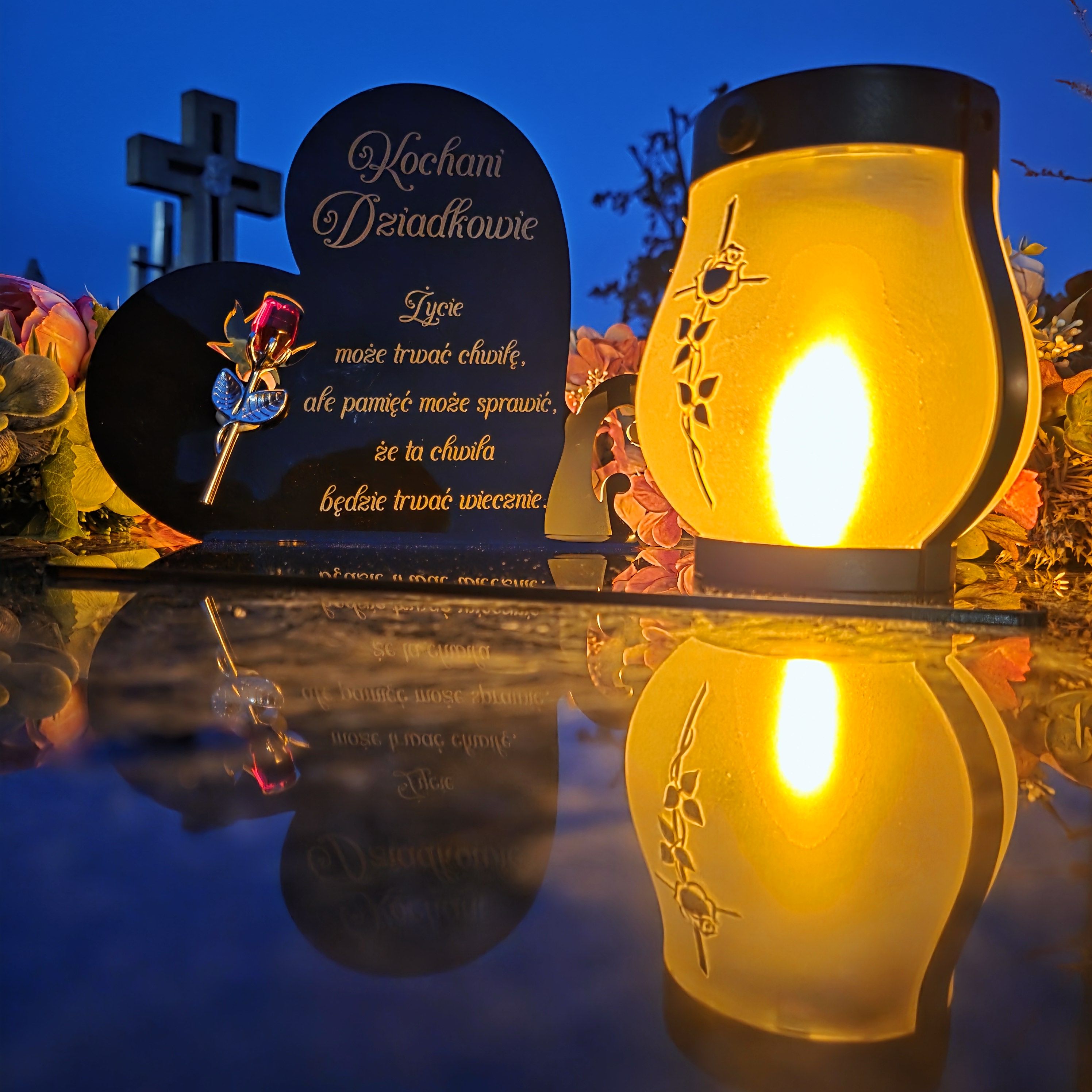 Ten wyjątkowy znicz nagrobny to piękny symbol miłości i pamięci, która nigdy nie gaśnie.