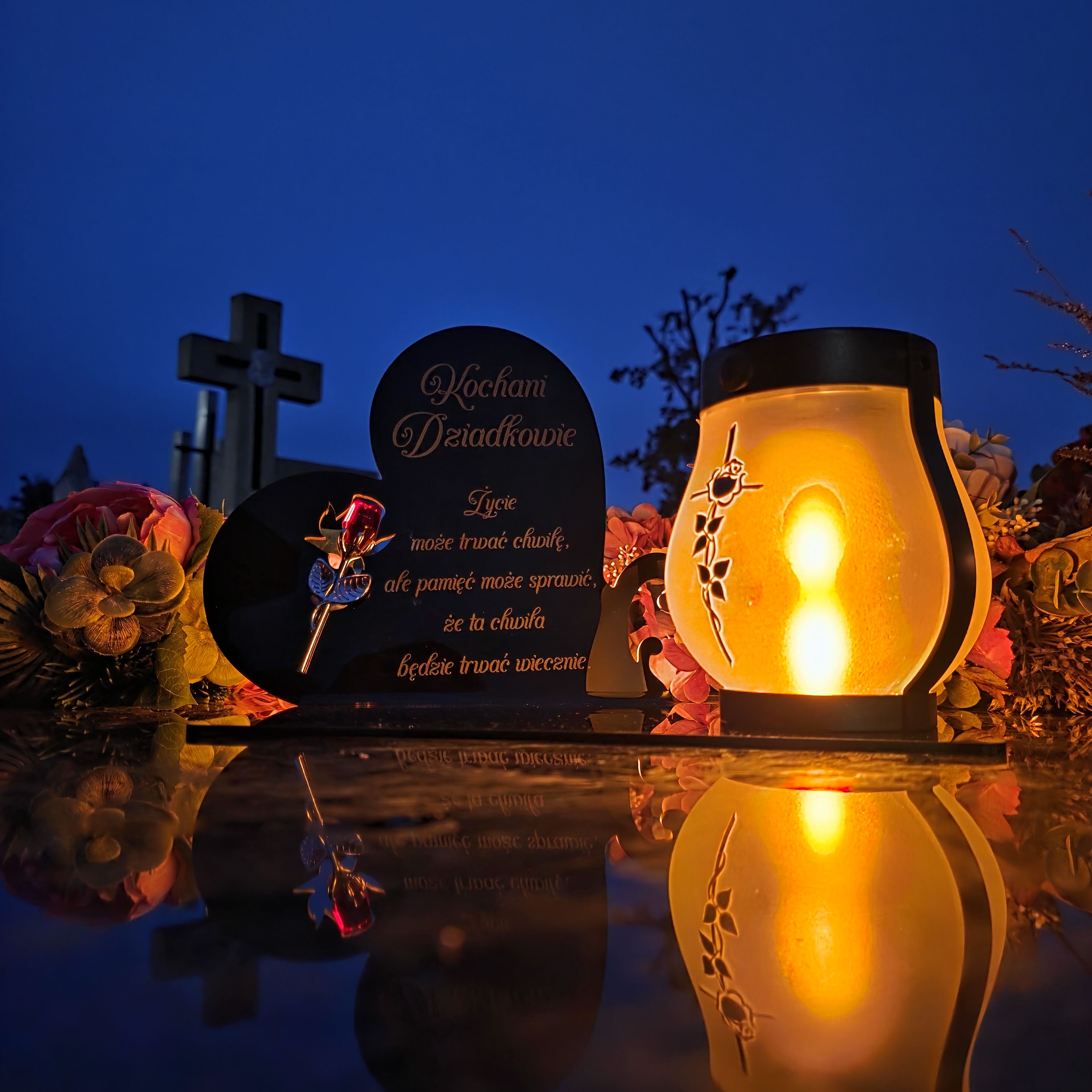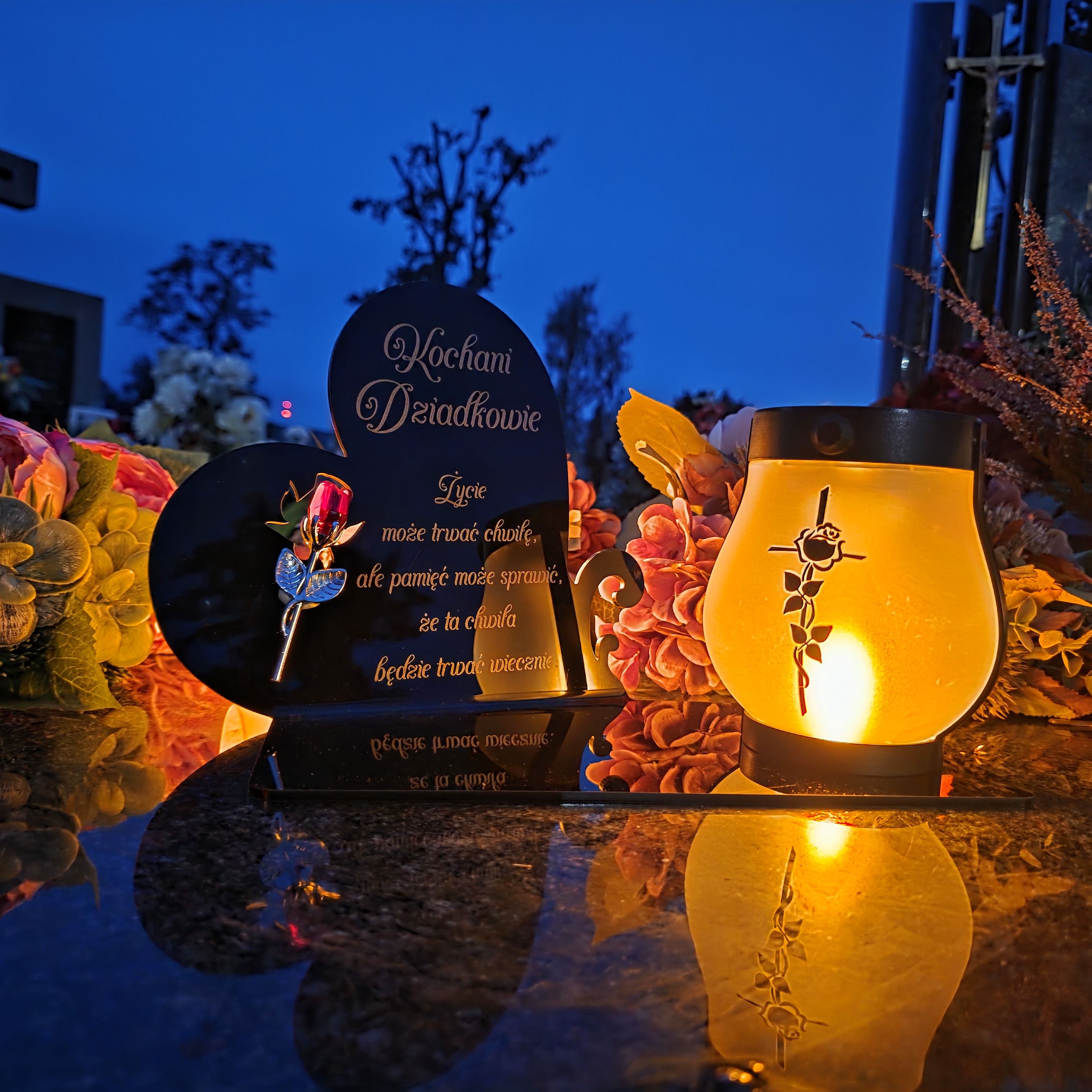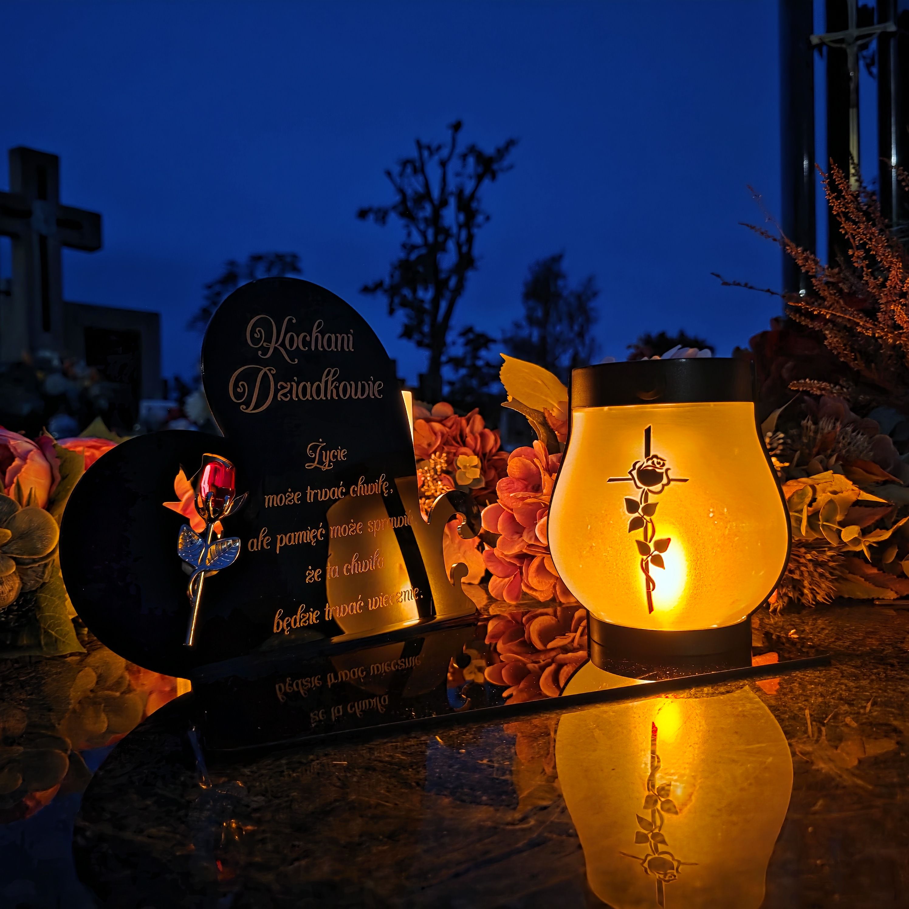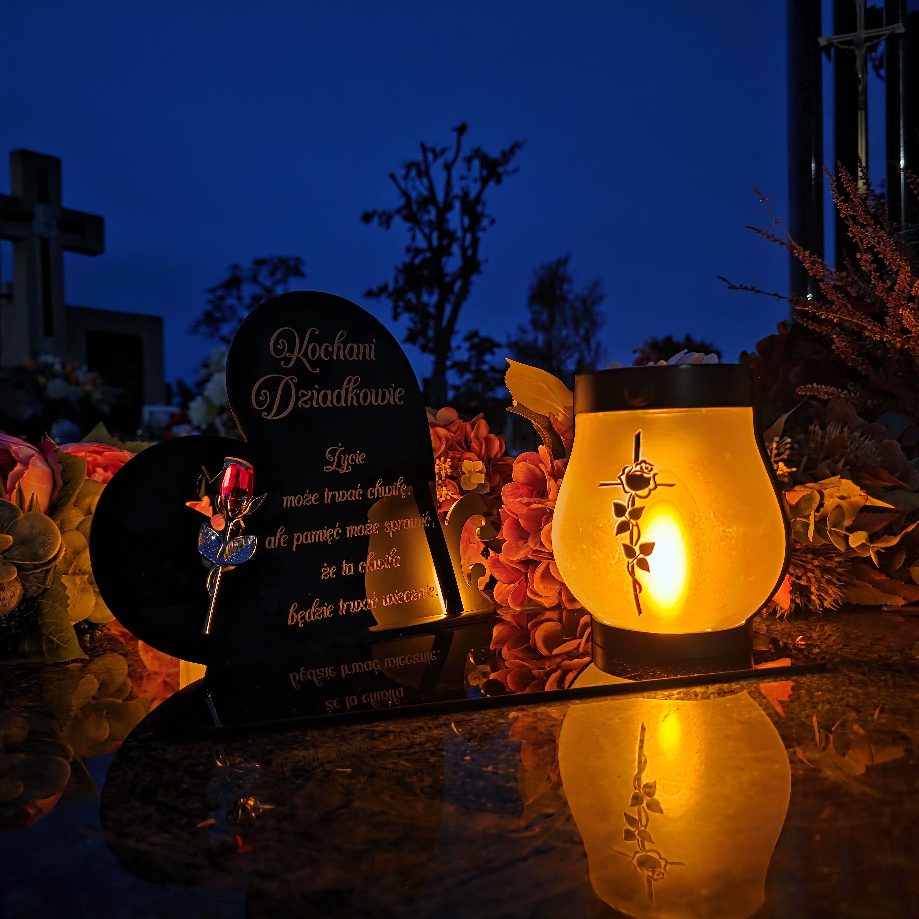 Ten wyjątkowy znicz nagrobny to piękny symbol miłości i pamięci, która nigdy nie gaśnie.