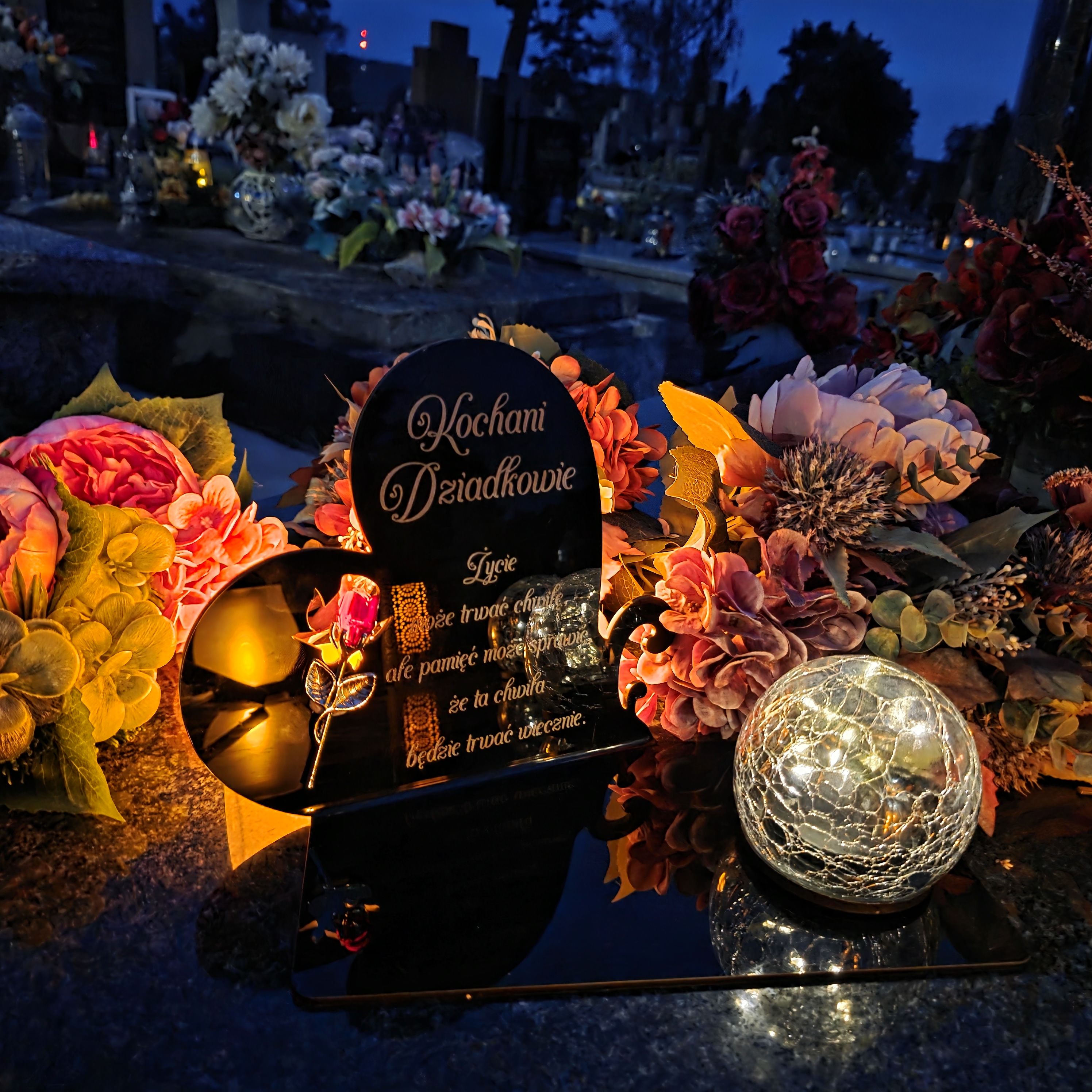 Ten wyjątkowy znicz nagrobny to piękny symbol miłości i pamięci, która nigdy nie gaśnie.