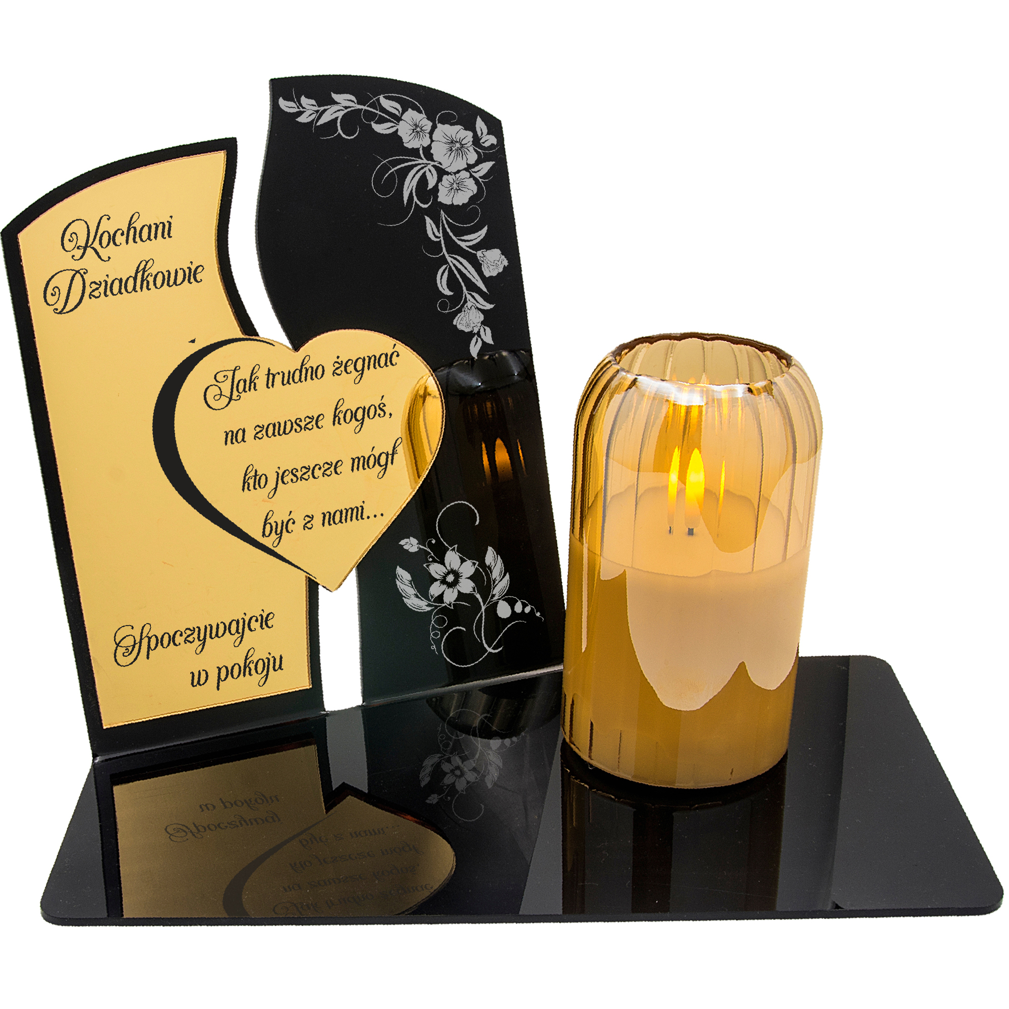 Elegancki znicz nagrobny dla DZIADKÓW – ze złotymi akcentami i solarną lampką