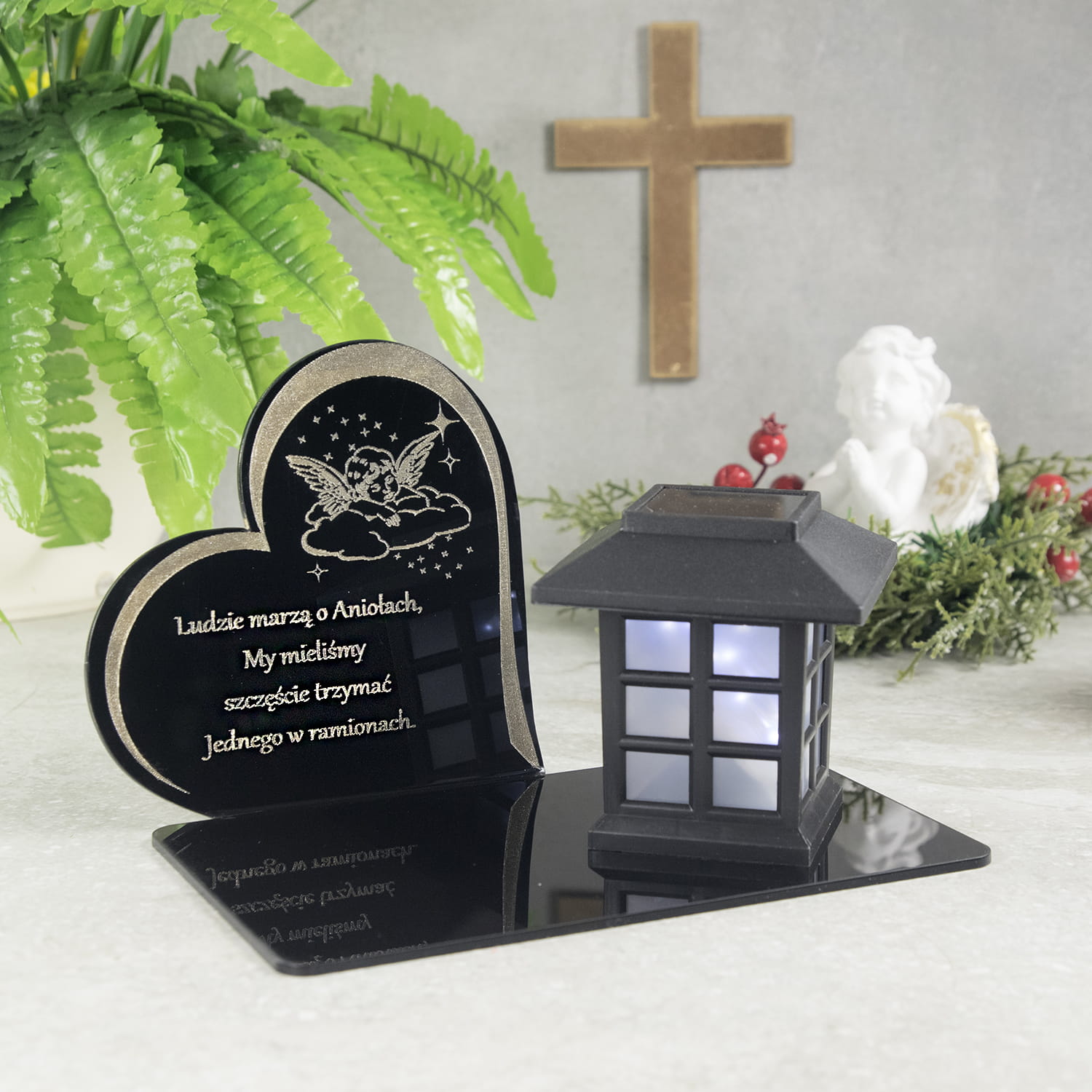 WIECZNY ZNICZ Statuetka Lampion SOLARNY na GRÓB CMENTARZ DUŻY z Aniołkiem