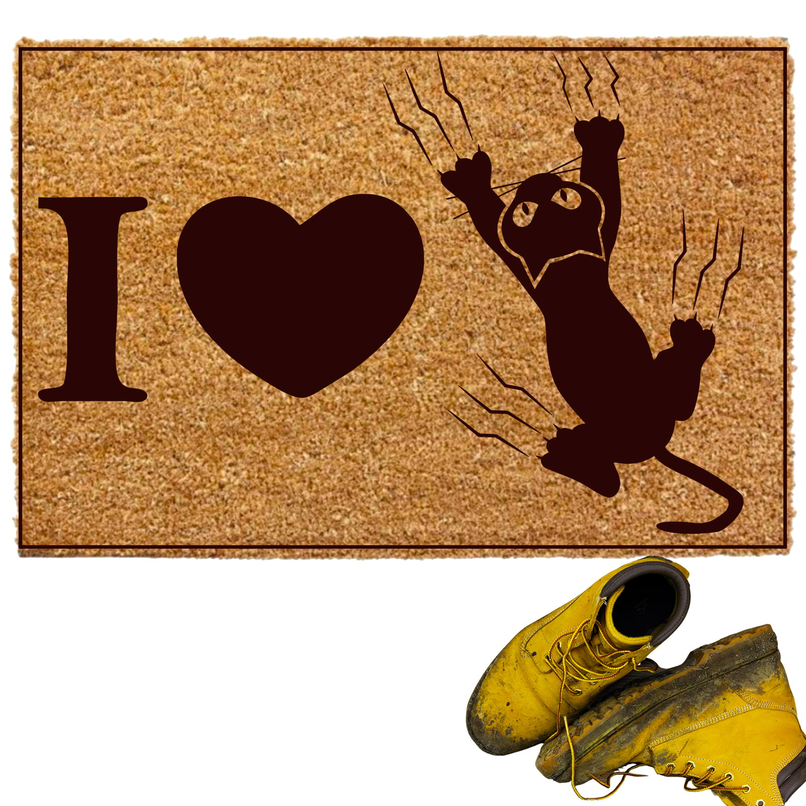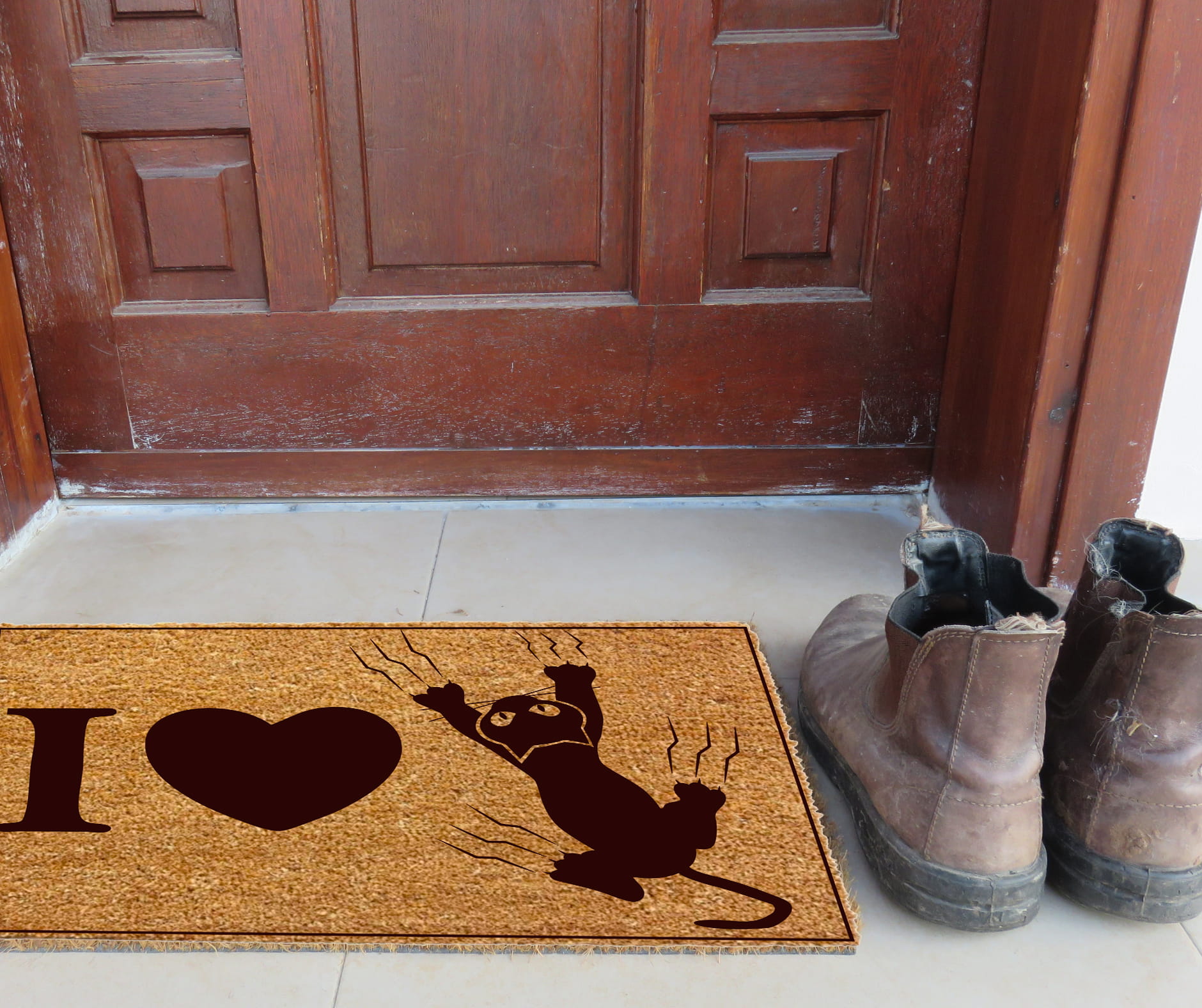 Duża wycieraczka z zabawnym nadrukiem, która doskonale sprawdzi się w każdym mieszkaniu lub domu, wycieraczka jest wykonana z włókna kokosowego, dzięki czemu doskonale zatrzymuje brud i wszelkie zanieczyszczenia z naszych butów. Idealny pomysł na prezent na parapetówkę.