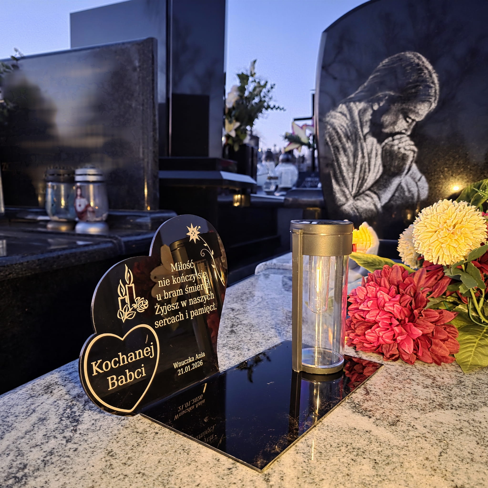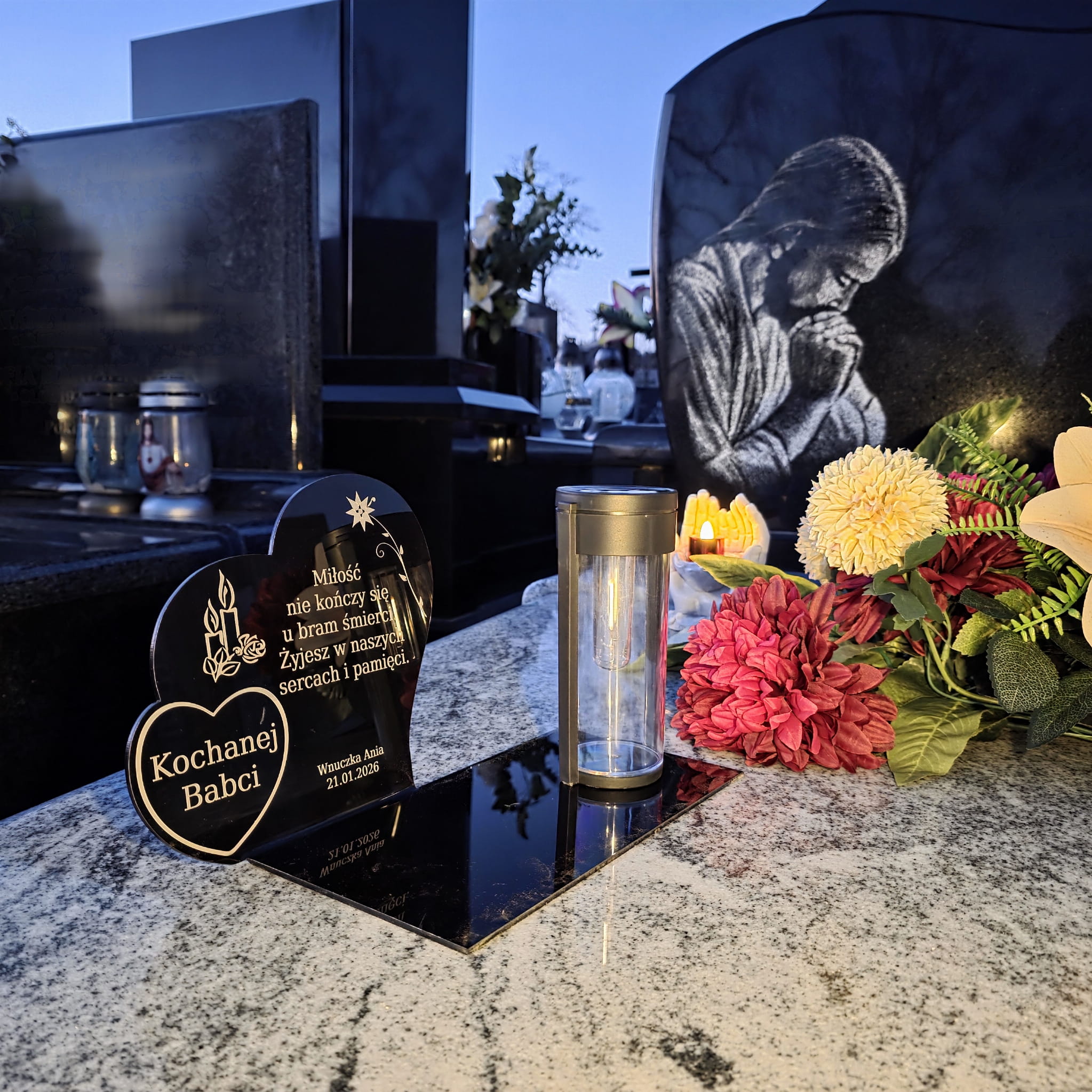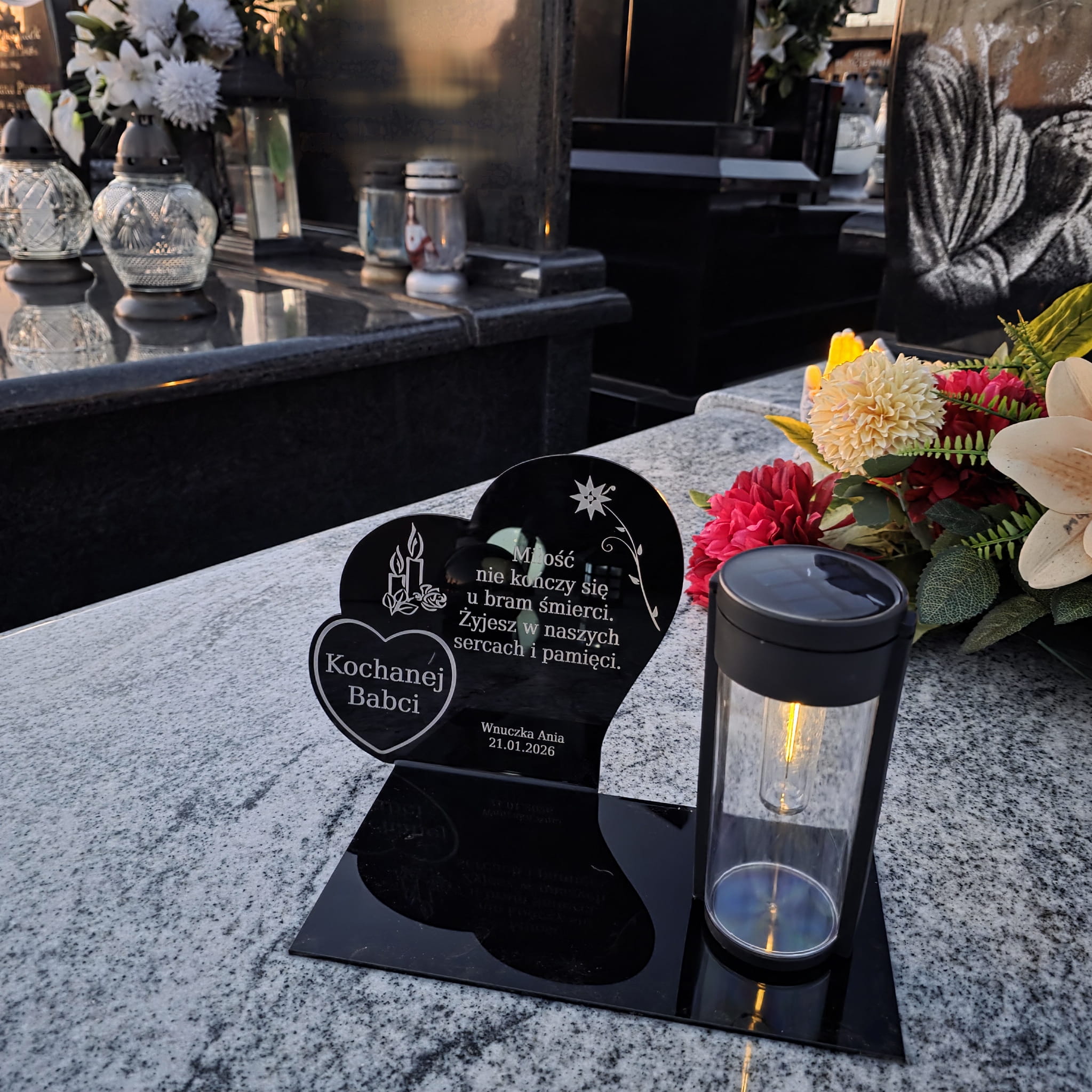 Wieczny ZNICZ SOLARNY Pamięci na Grób Cmentarz dla BABCI Dziadka