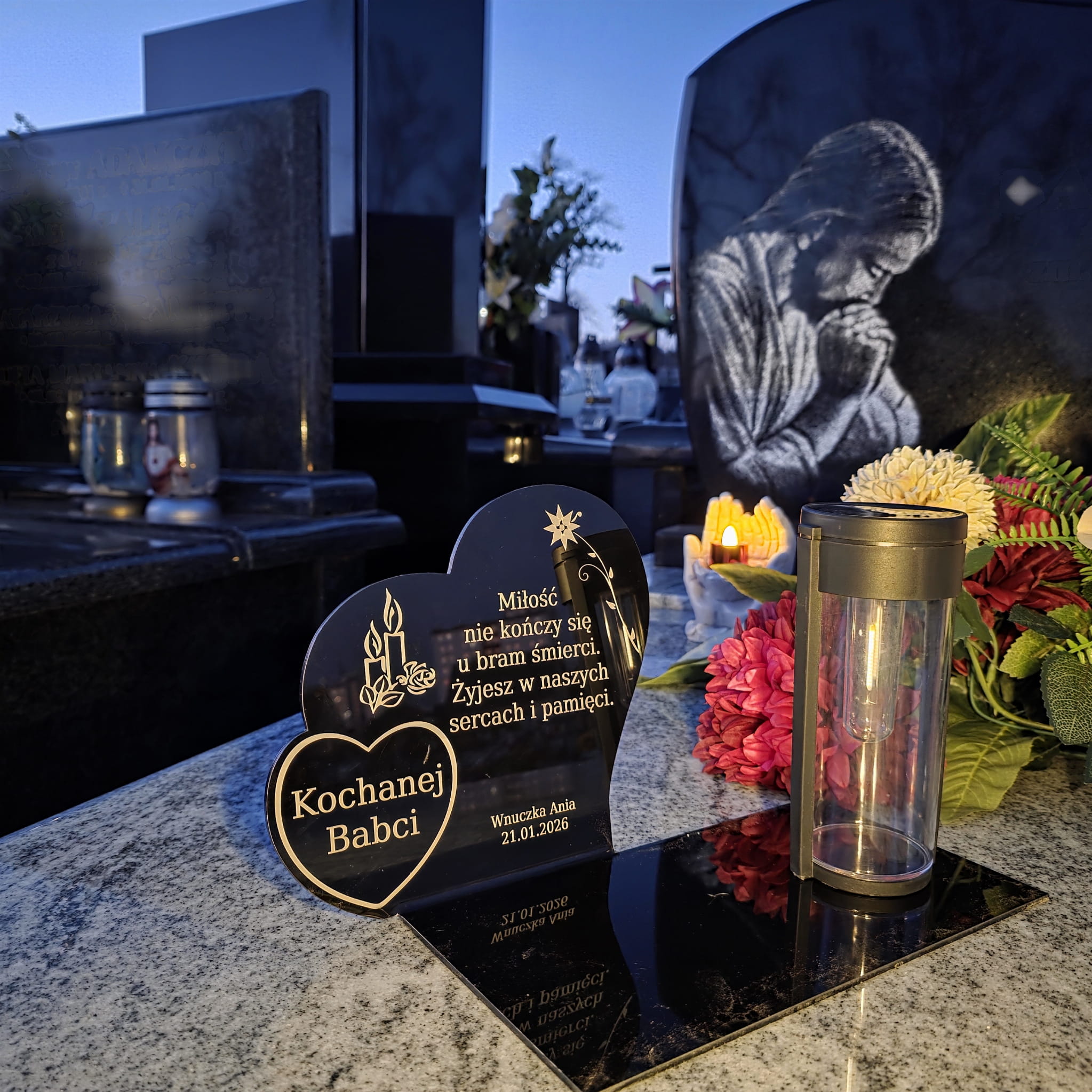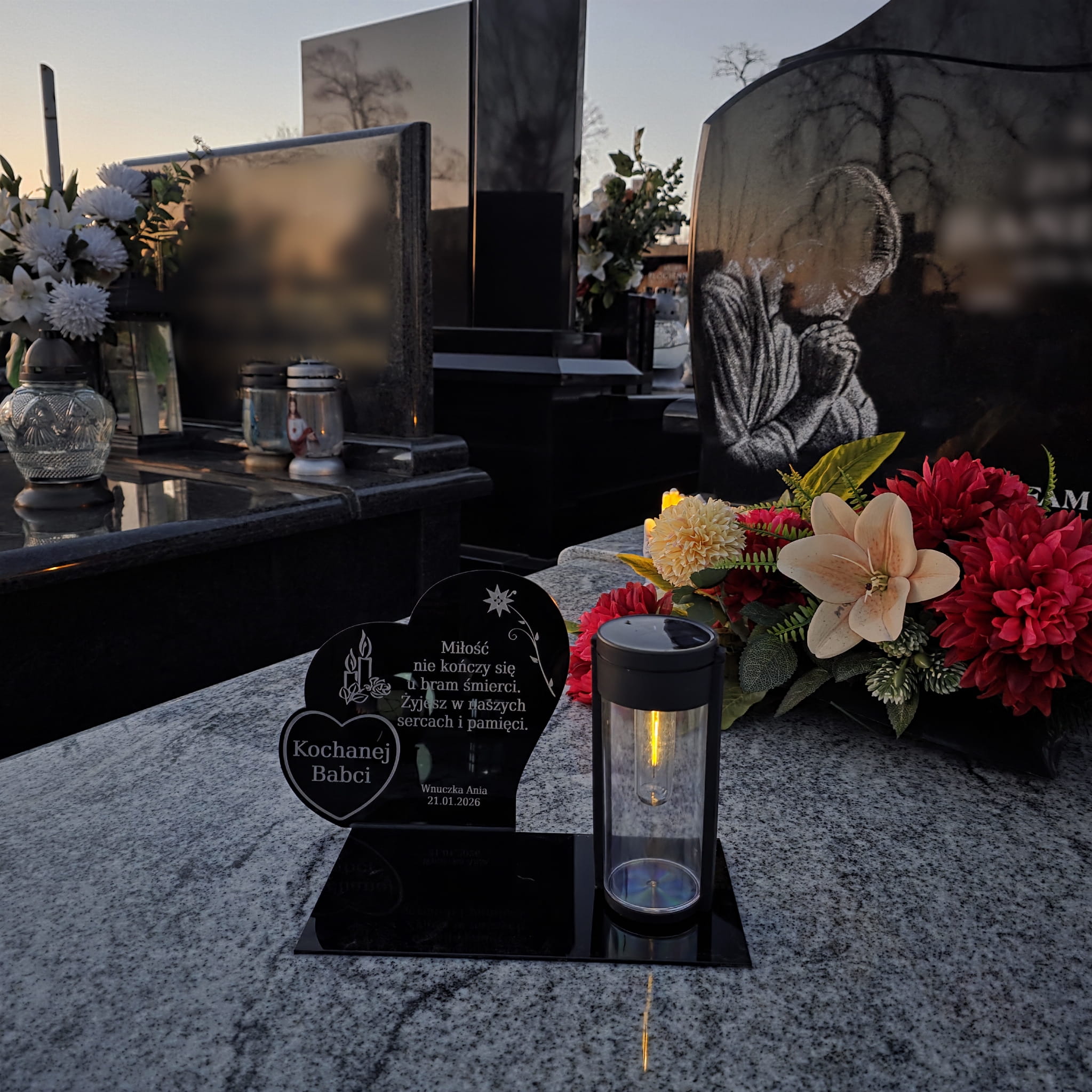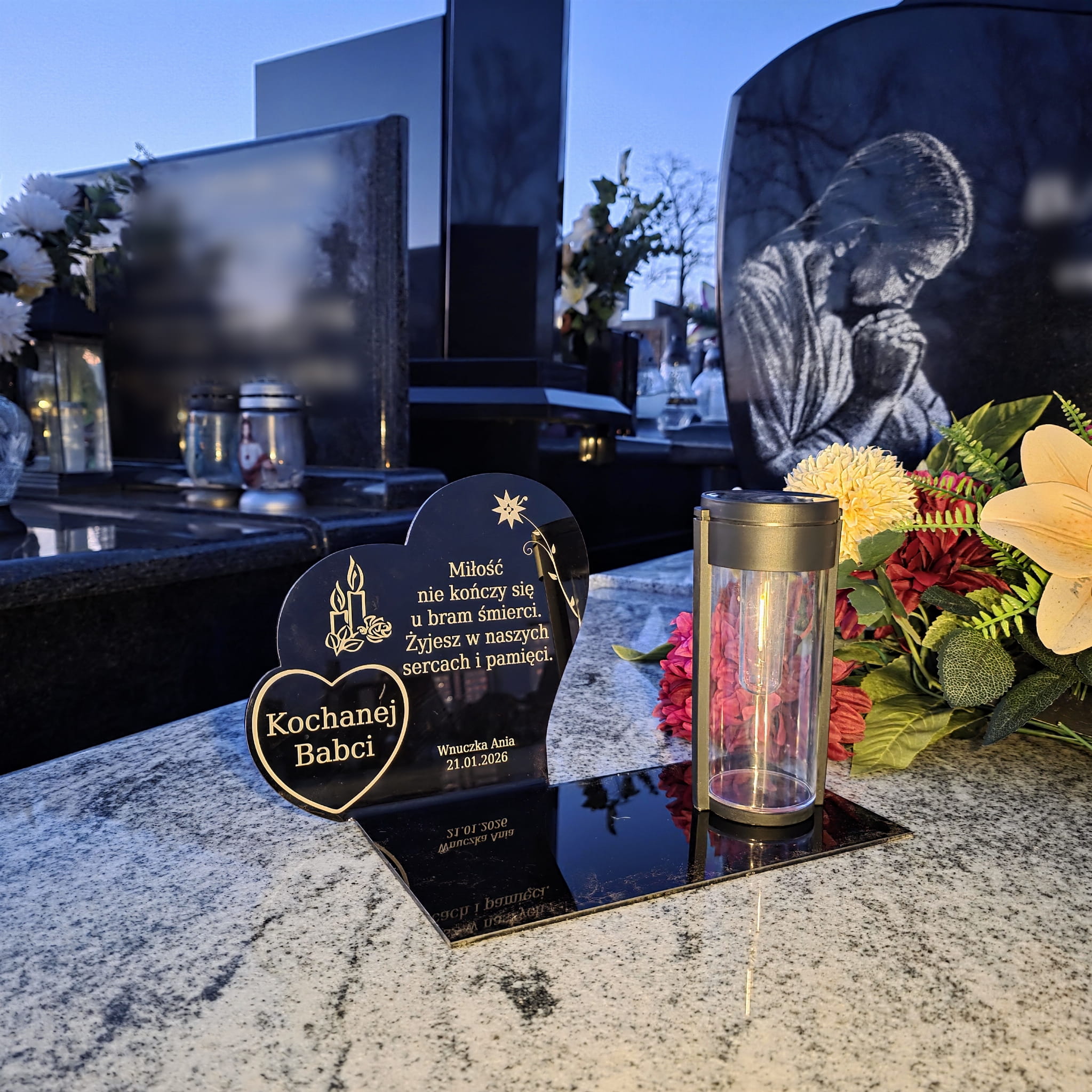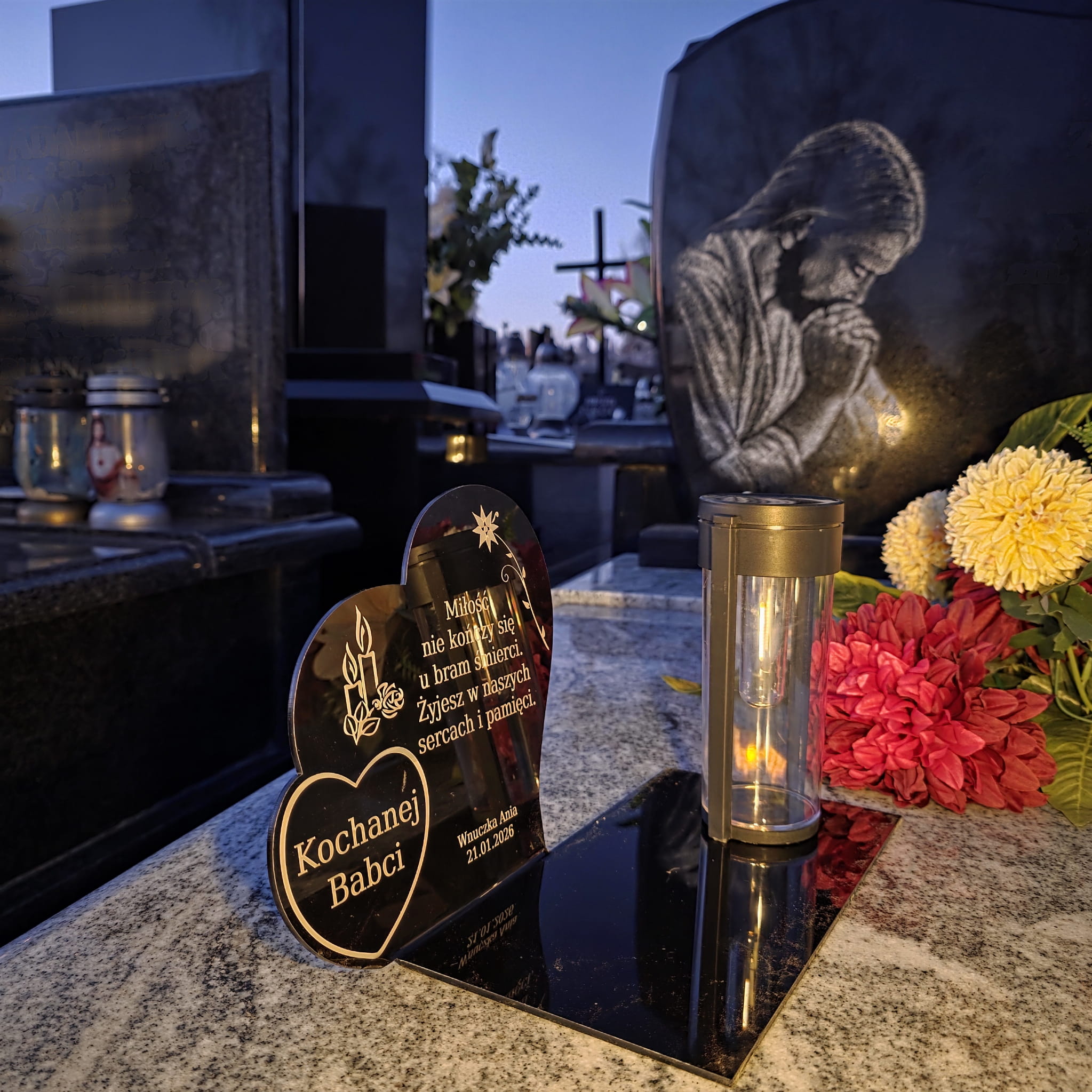Wieczny ZNICZ SOLARNY Pamięci na Grób Cmentarz dla BABCI Dziadka