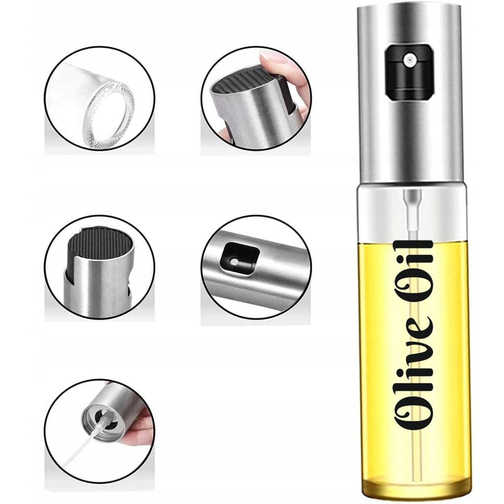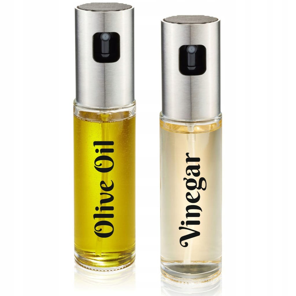 Zestaw spryskiwaczy do oleju i octu w formie wygodnego dozownika w sprayu. Umożliwia wygodne rozprowadzanie octu i oliwy. Eleganckie wykonanie ze szkła oraz stali nierdzewnej. Pojemność aż 100 ml wraz z czytelną miarką na zbiorniczku. Proste i wygodne napełnianie, łatwy do utrzymania w czystości. Idealne do każdej kuchni dodadzą eleganckiego wyglądu.