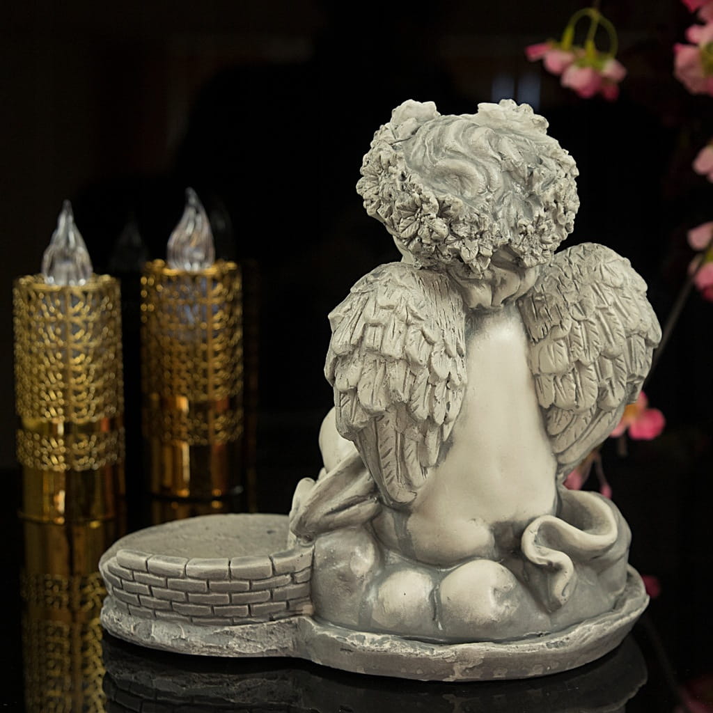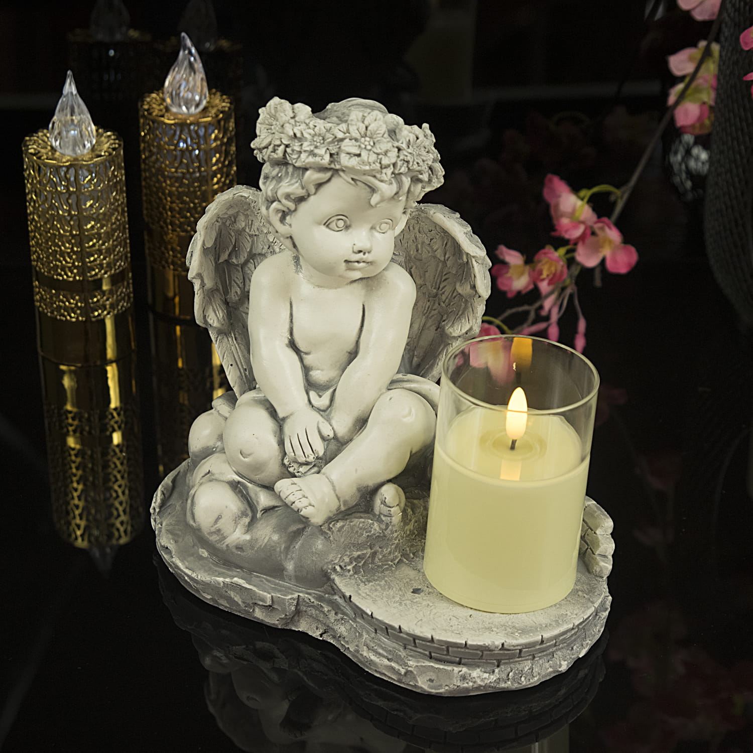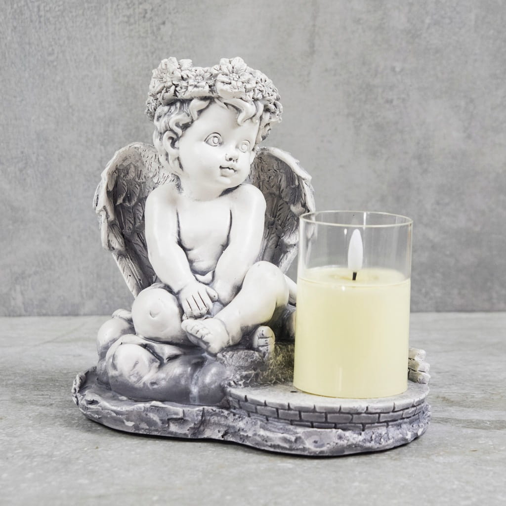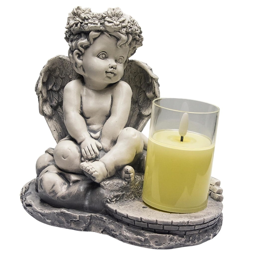 ➡️ Ozdobna gipsowa figurka ogrodowa, nagrobna z lampą LED w kształcie aniołka