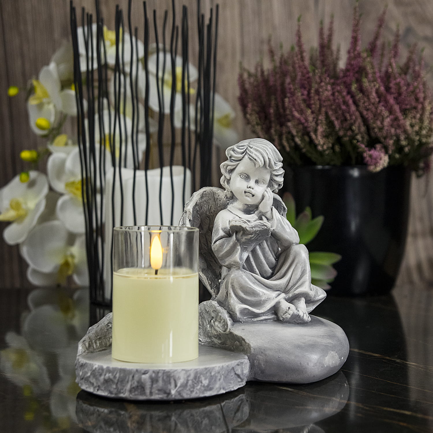 ✅ Dzięki świeczce LED nawet nocą postać aniołka jest doskonale widoczna
