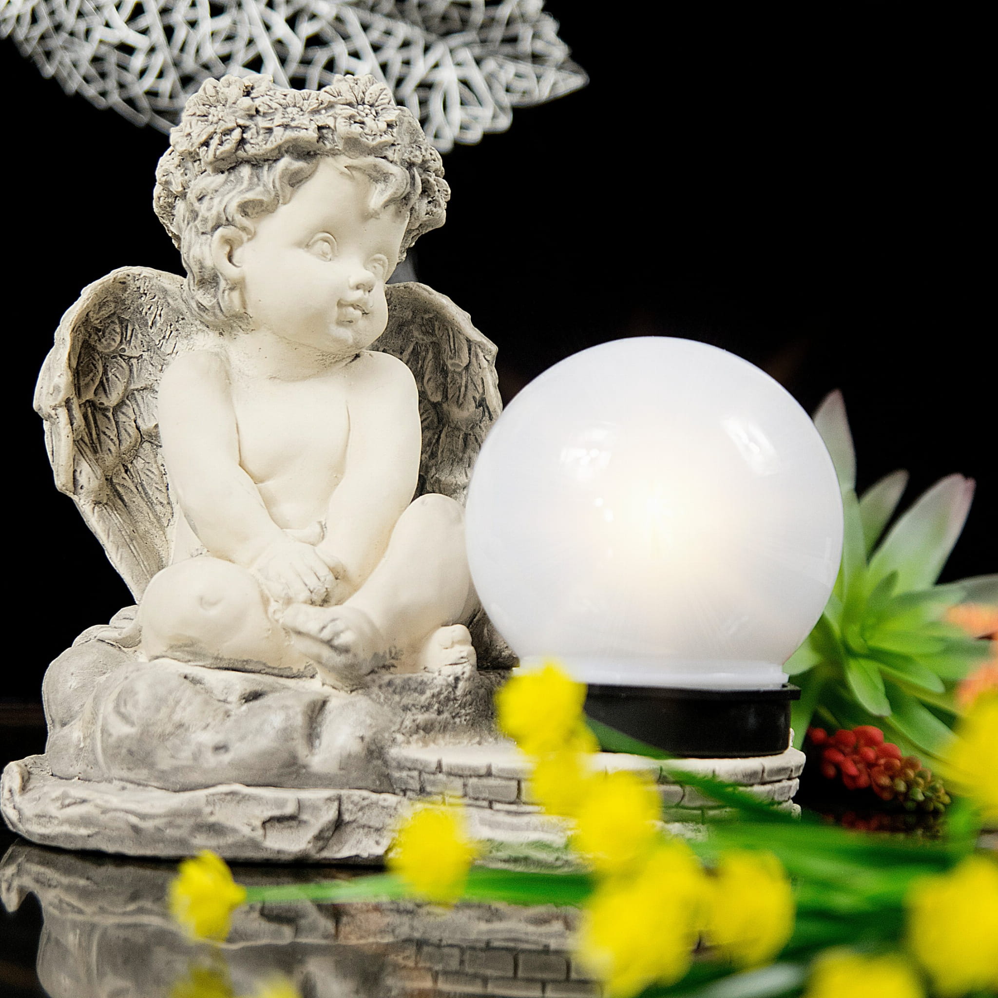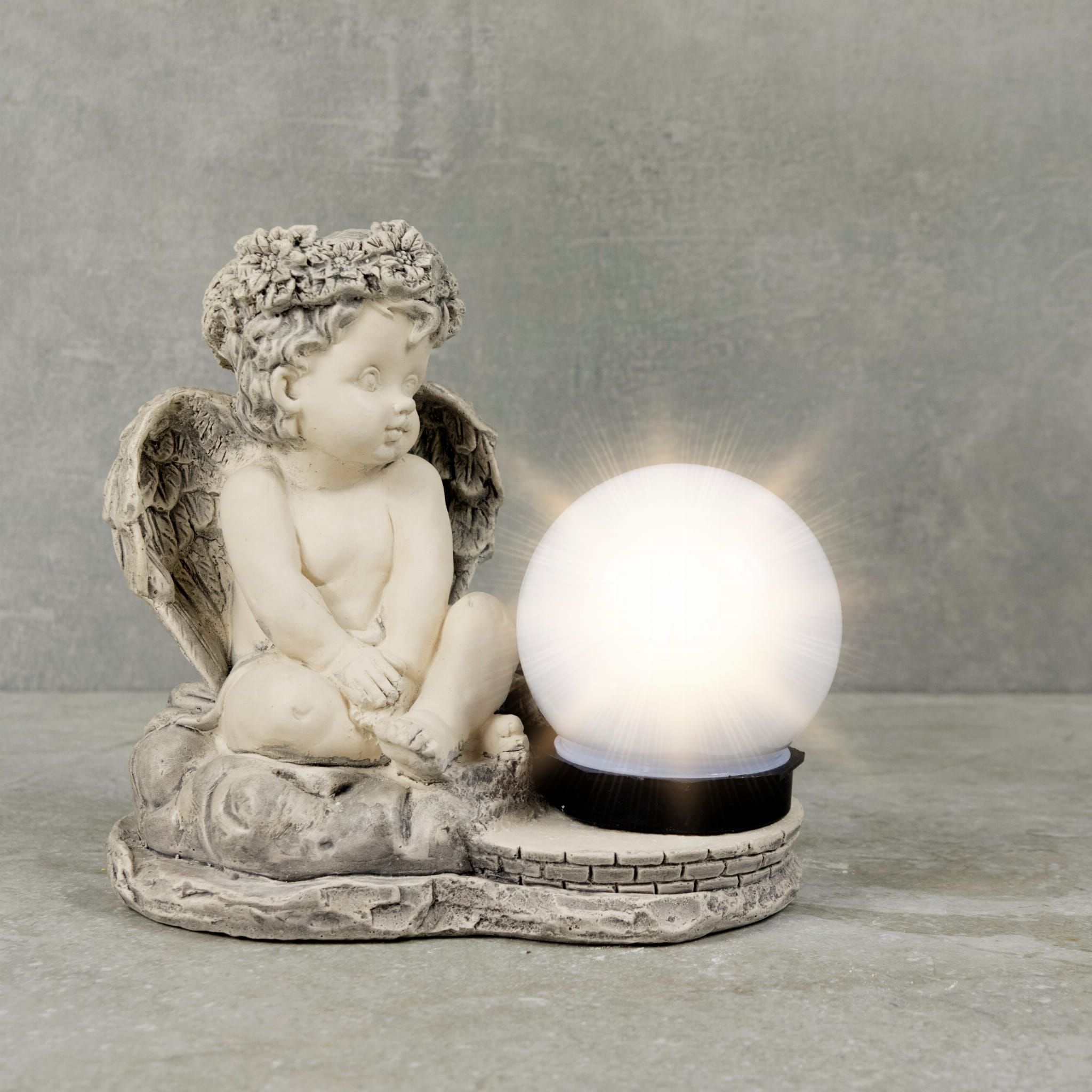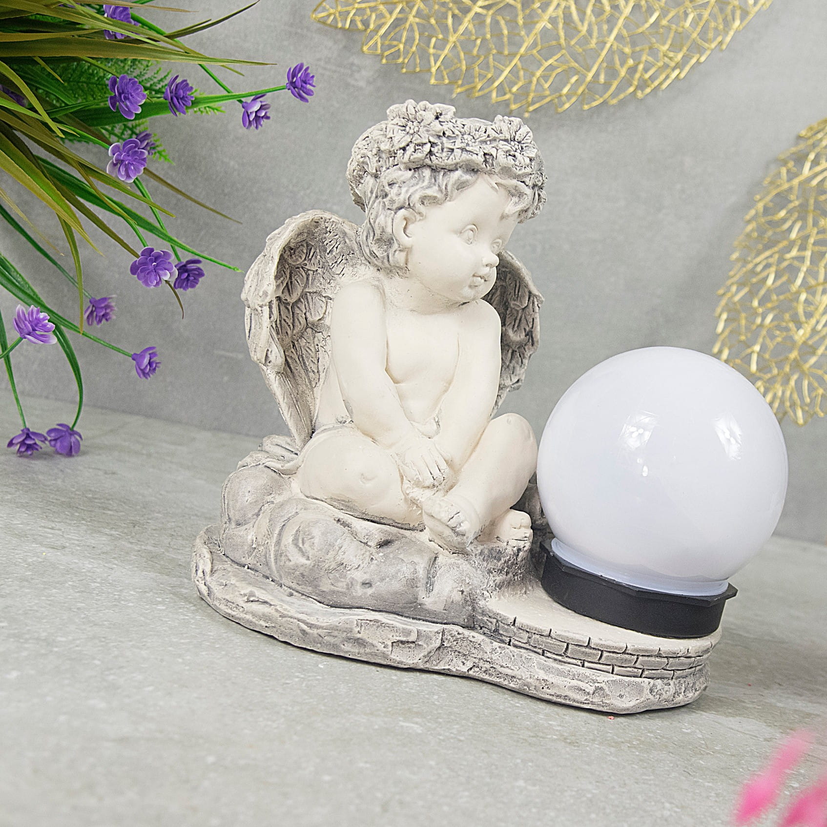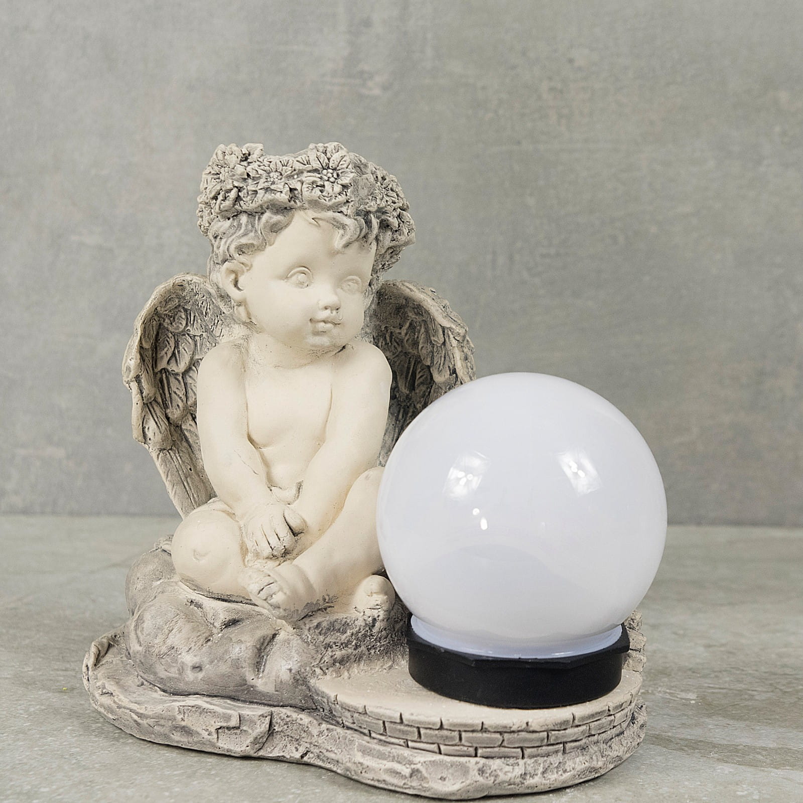 Fantastycznie zdobiona gipsowa figurka ze światłem solarnym która pięknie przyozdobi każdy ogród jak i nagrobek