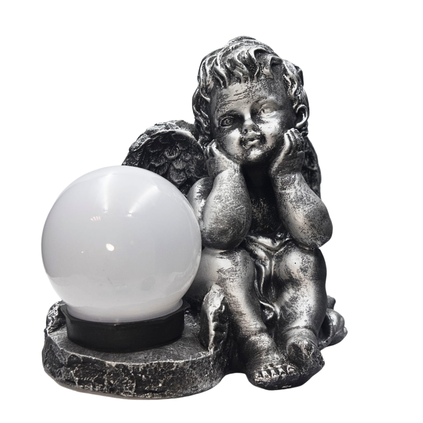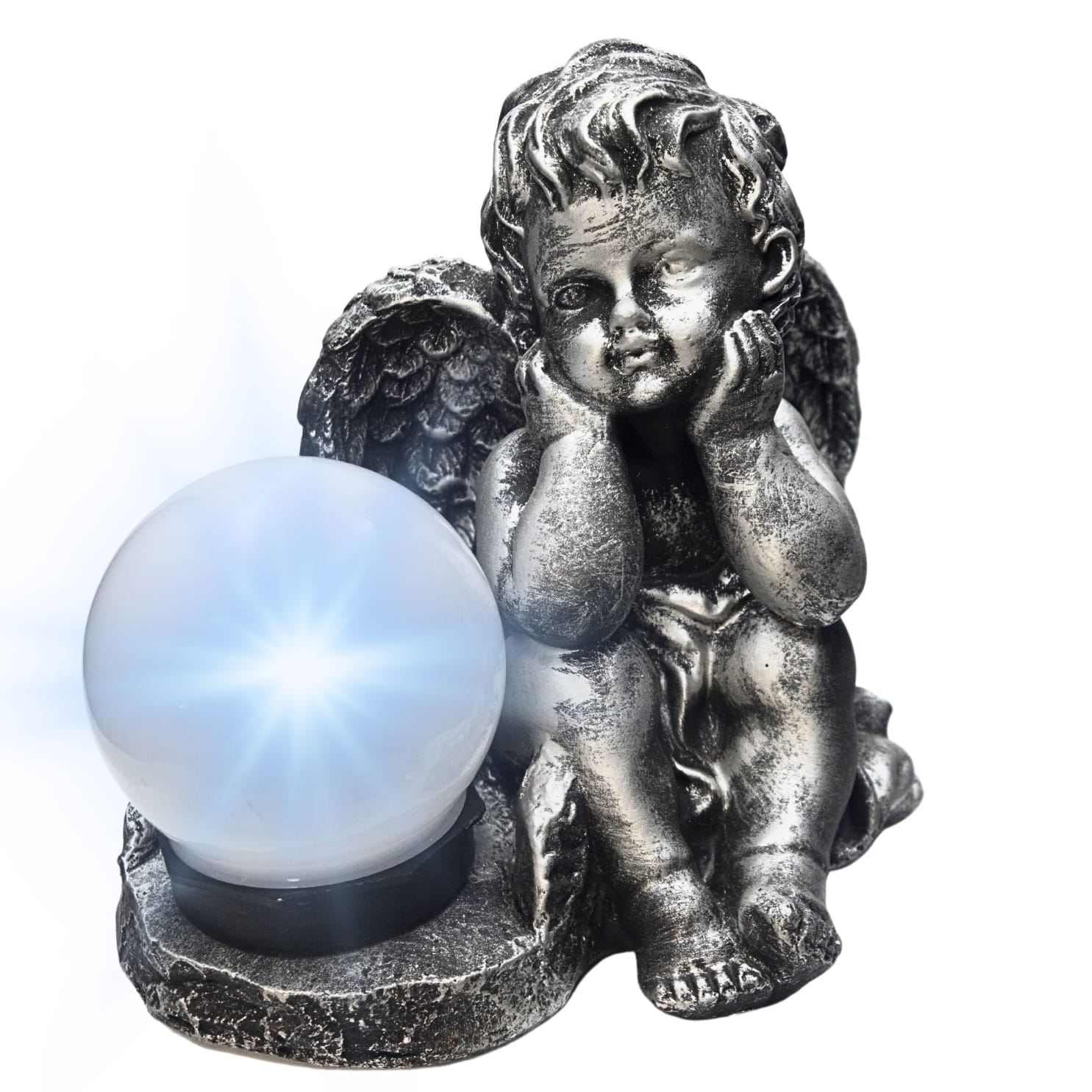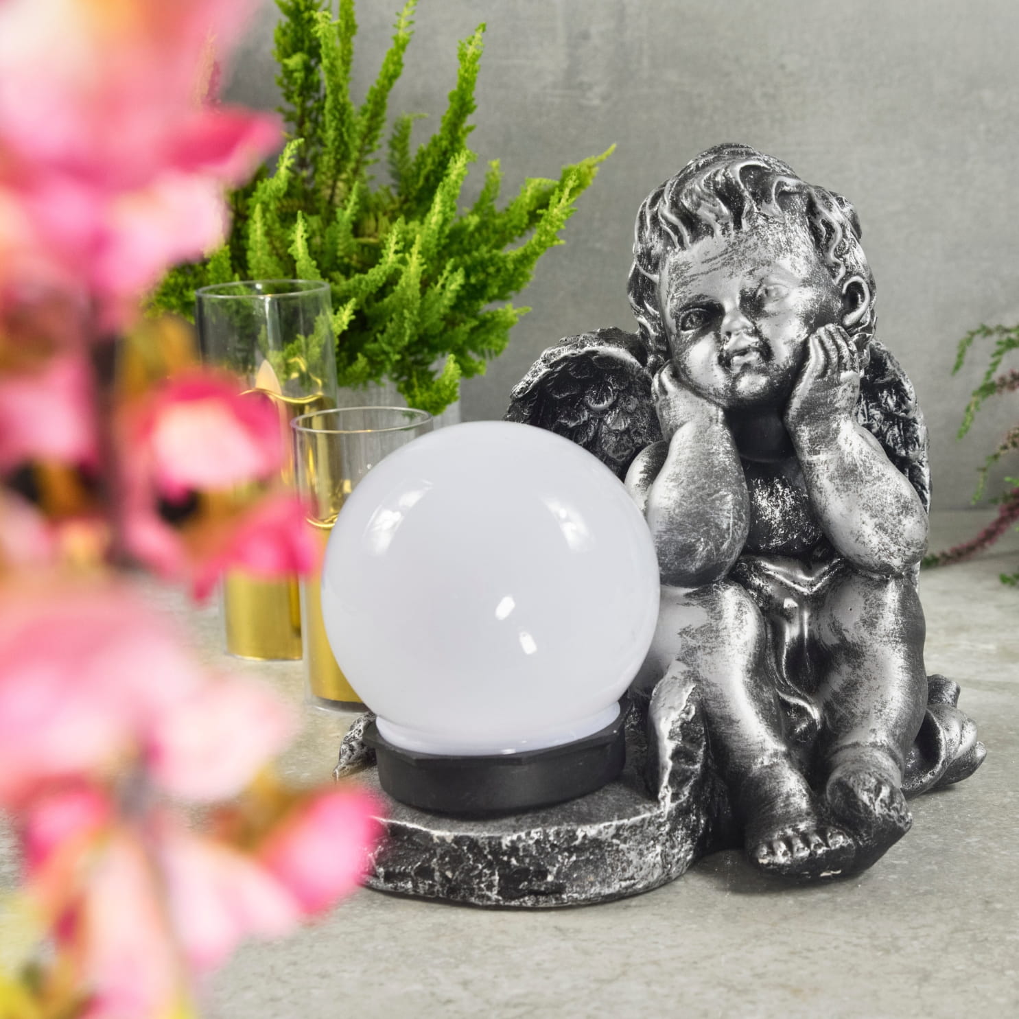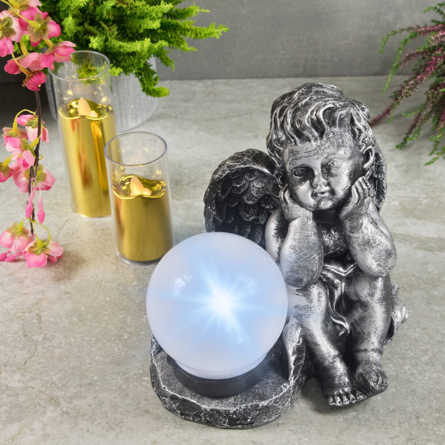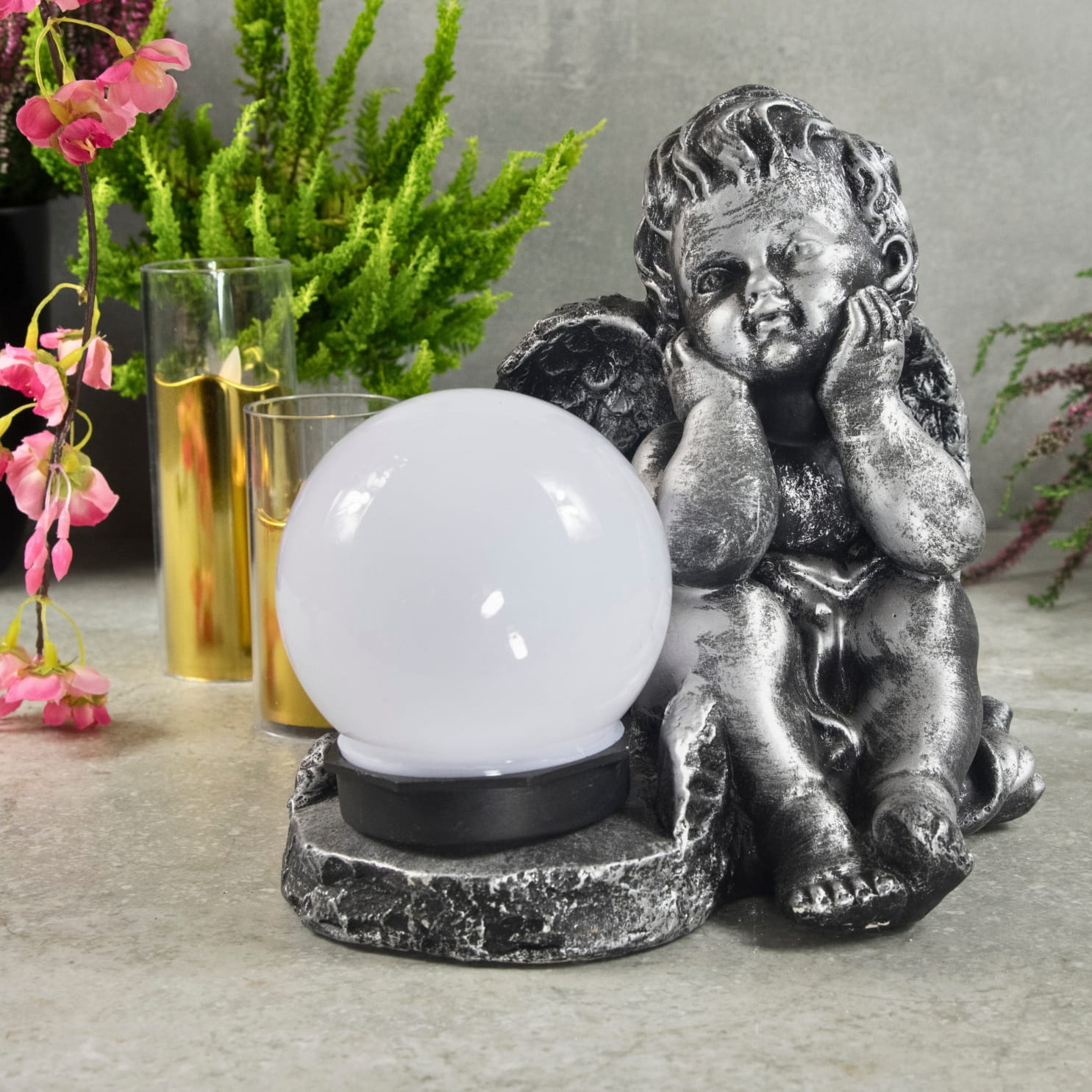 Fantastycznie zdobiona gipsowa figurka ze światłem solarnym która pięknie przyozdobi każdy ogród jak i nagrobek