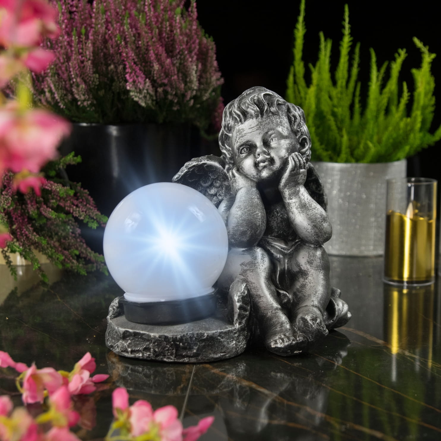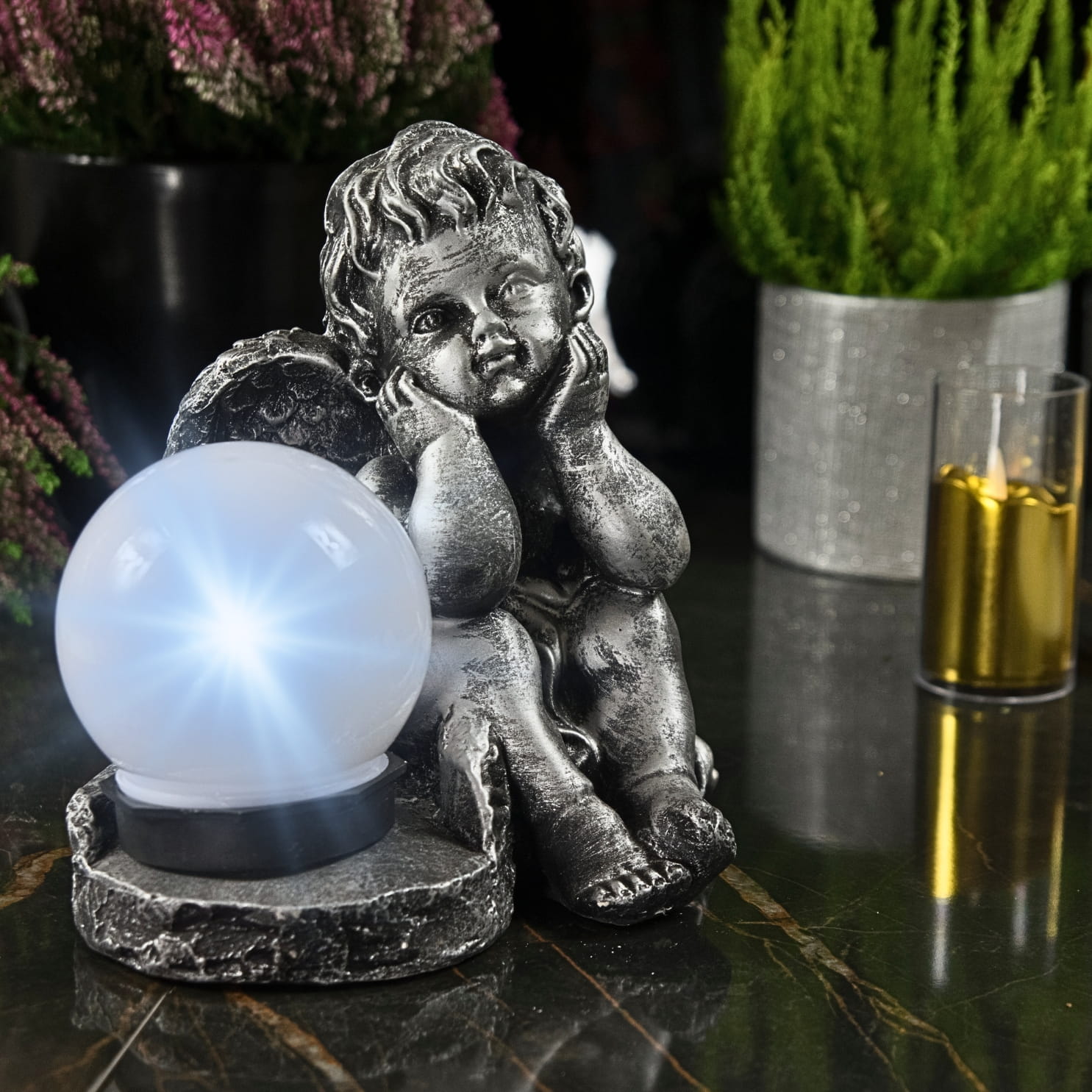 ✅ Dzięki lampie solarnej nawet nocą postać aniołka jest doskonale widoczna