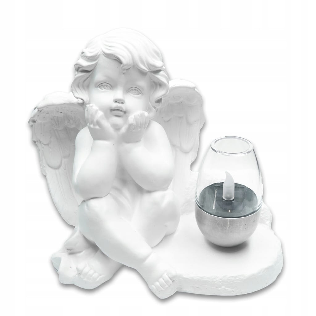 ⭐️ OZDOBA GIPSOWA ANIOŁ FIGURKA NAGROBNA NA GRÓB Z LAMPĄ SOLARNĄ ⭐️