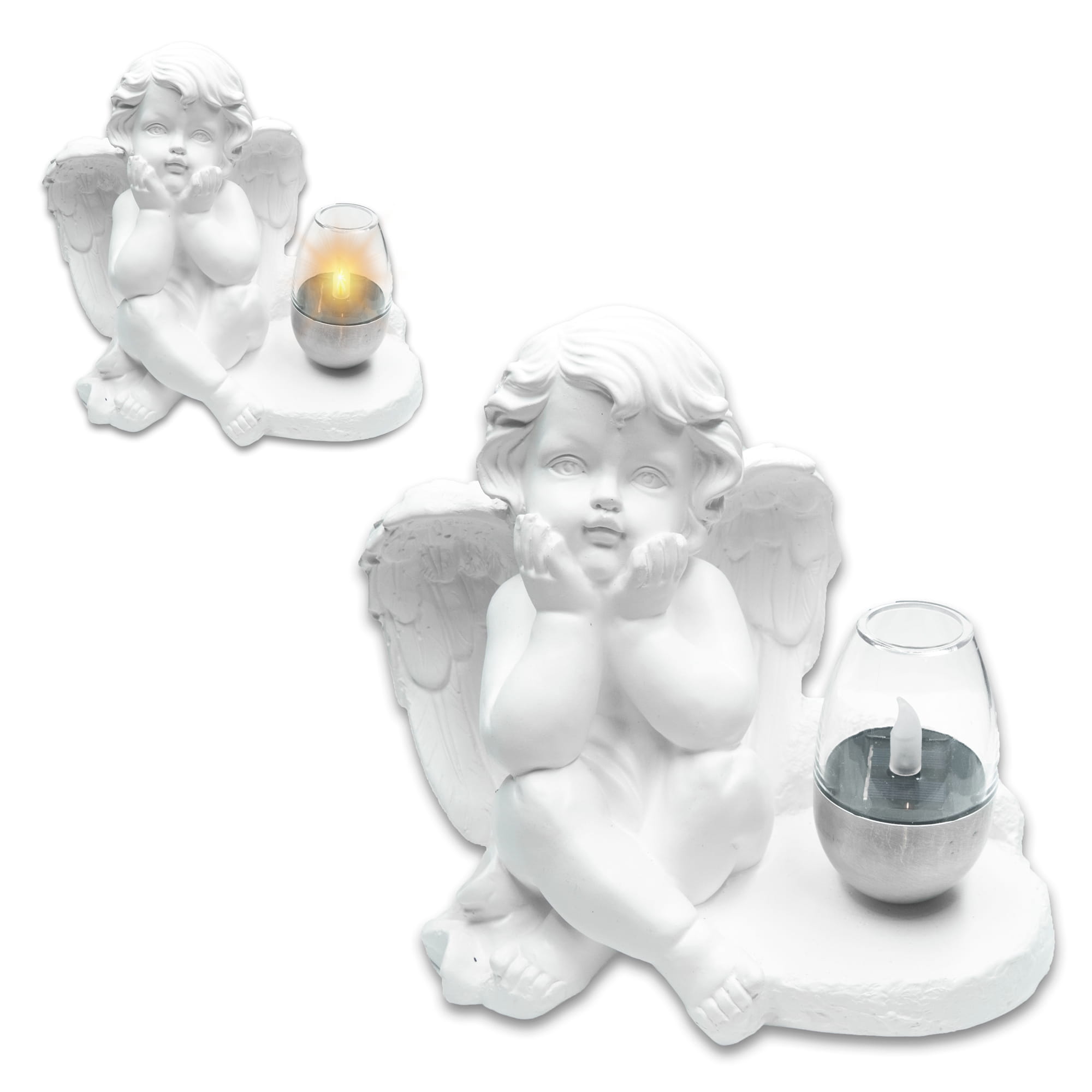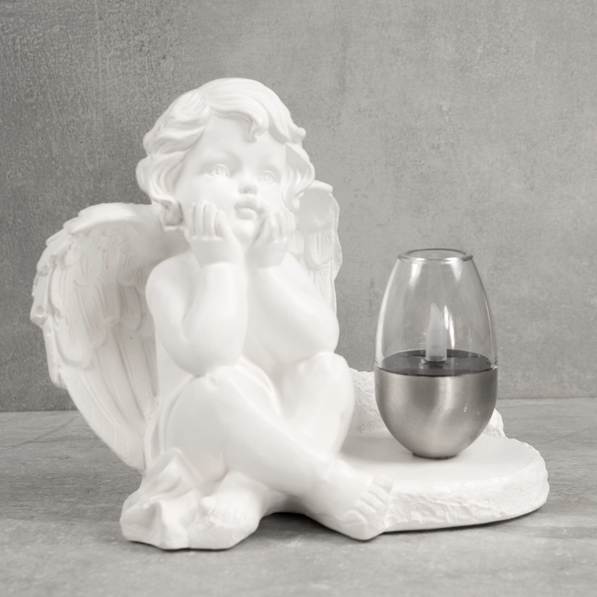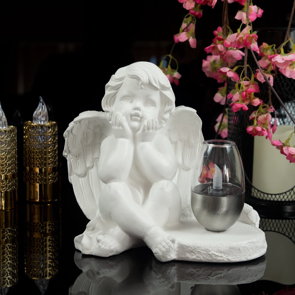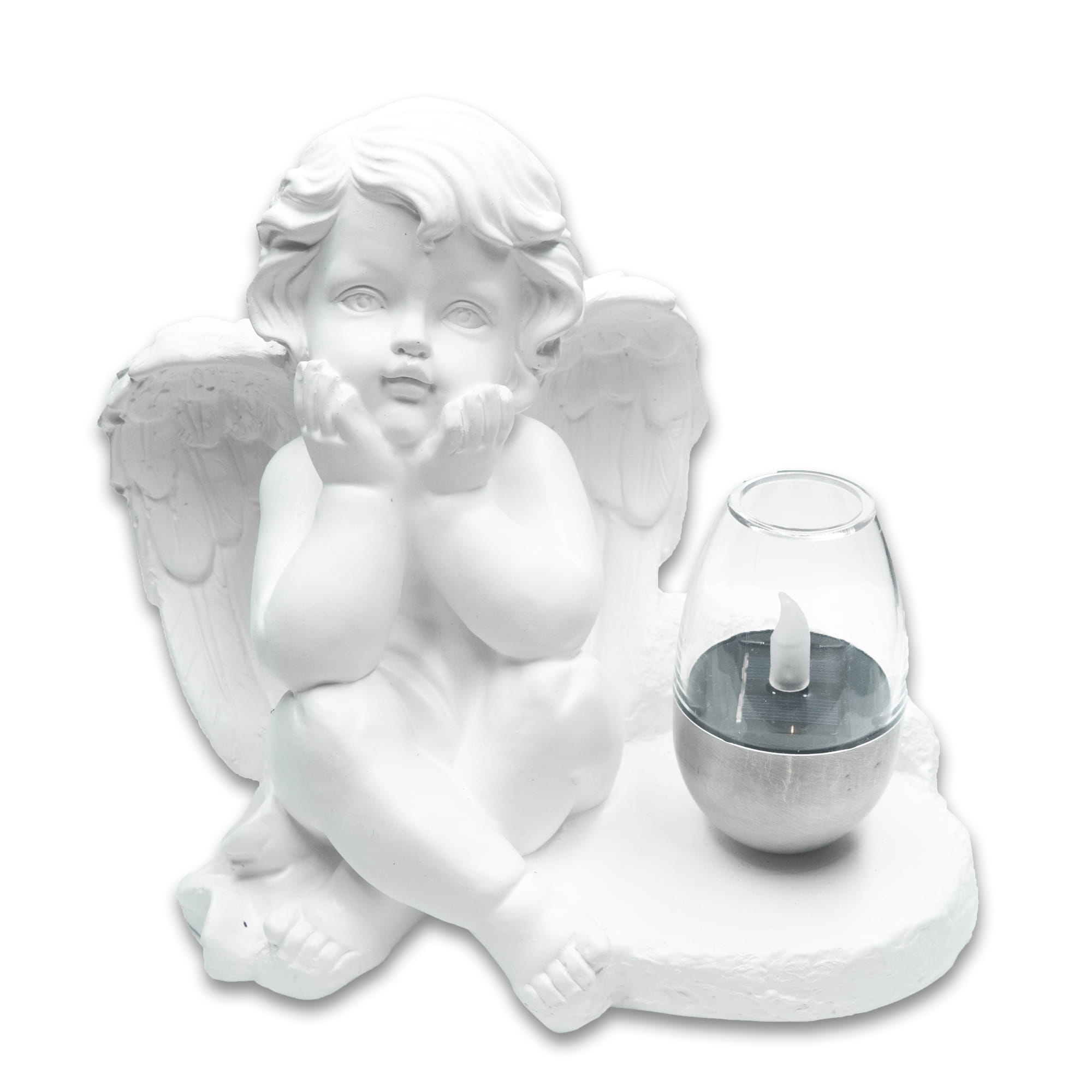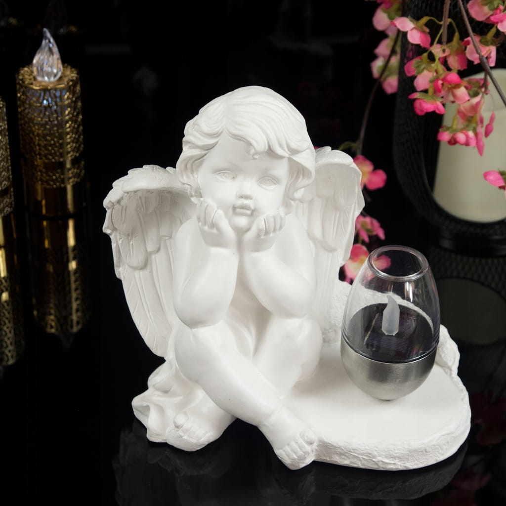 ➡️ Ozdobna gipsowa figurka ogrodowa, nagrobna z lampą LED w kształcie aniołka