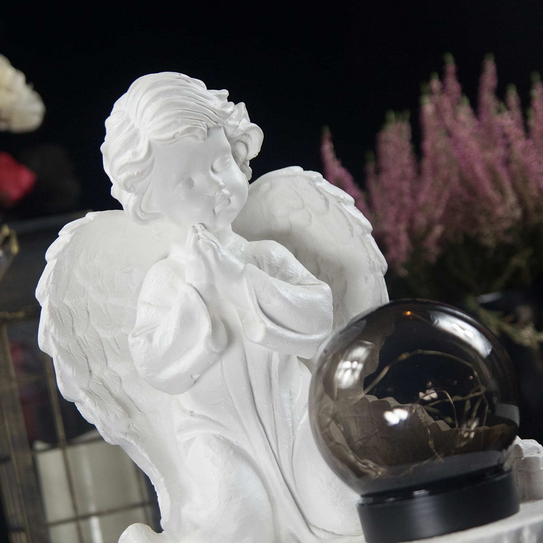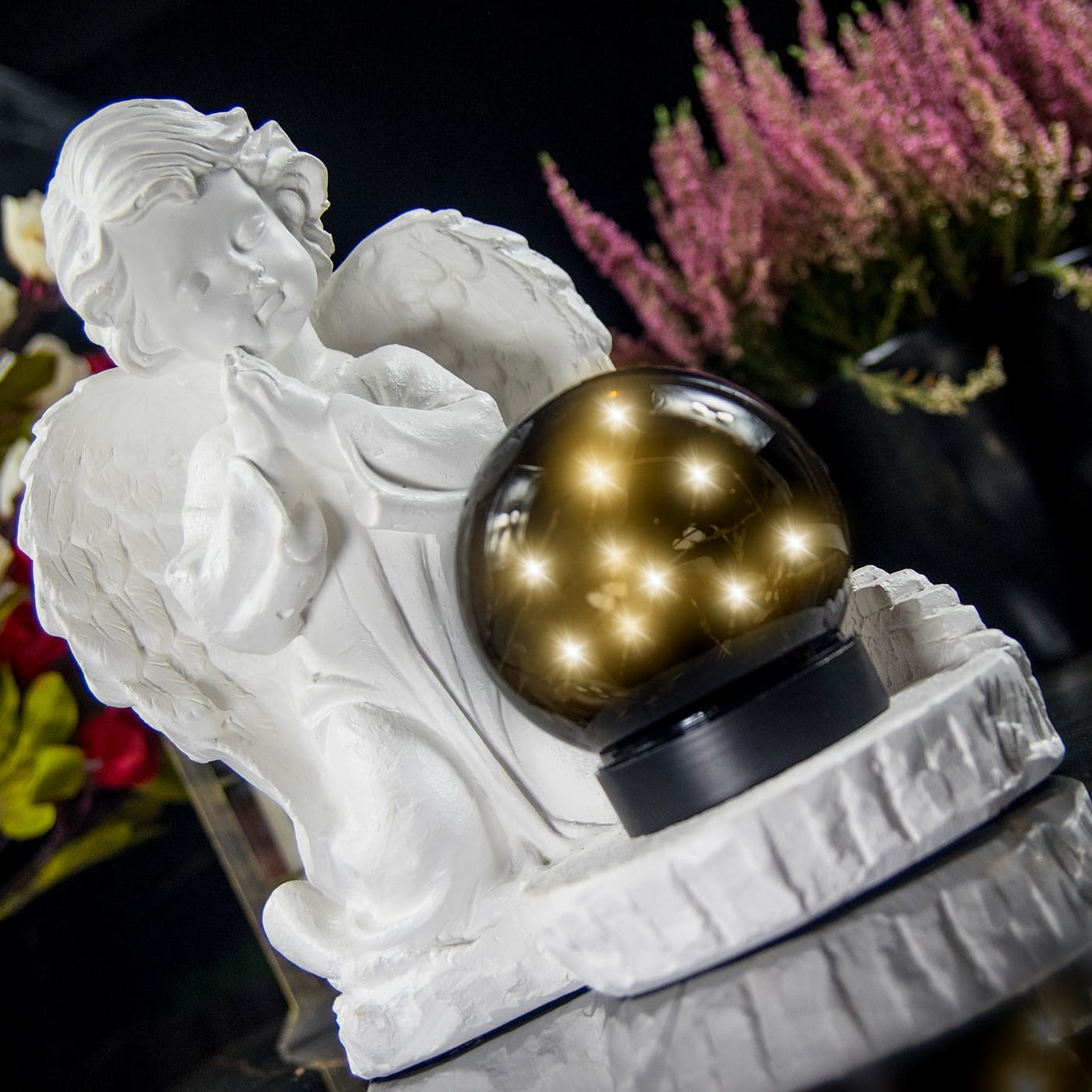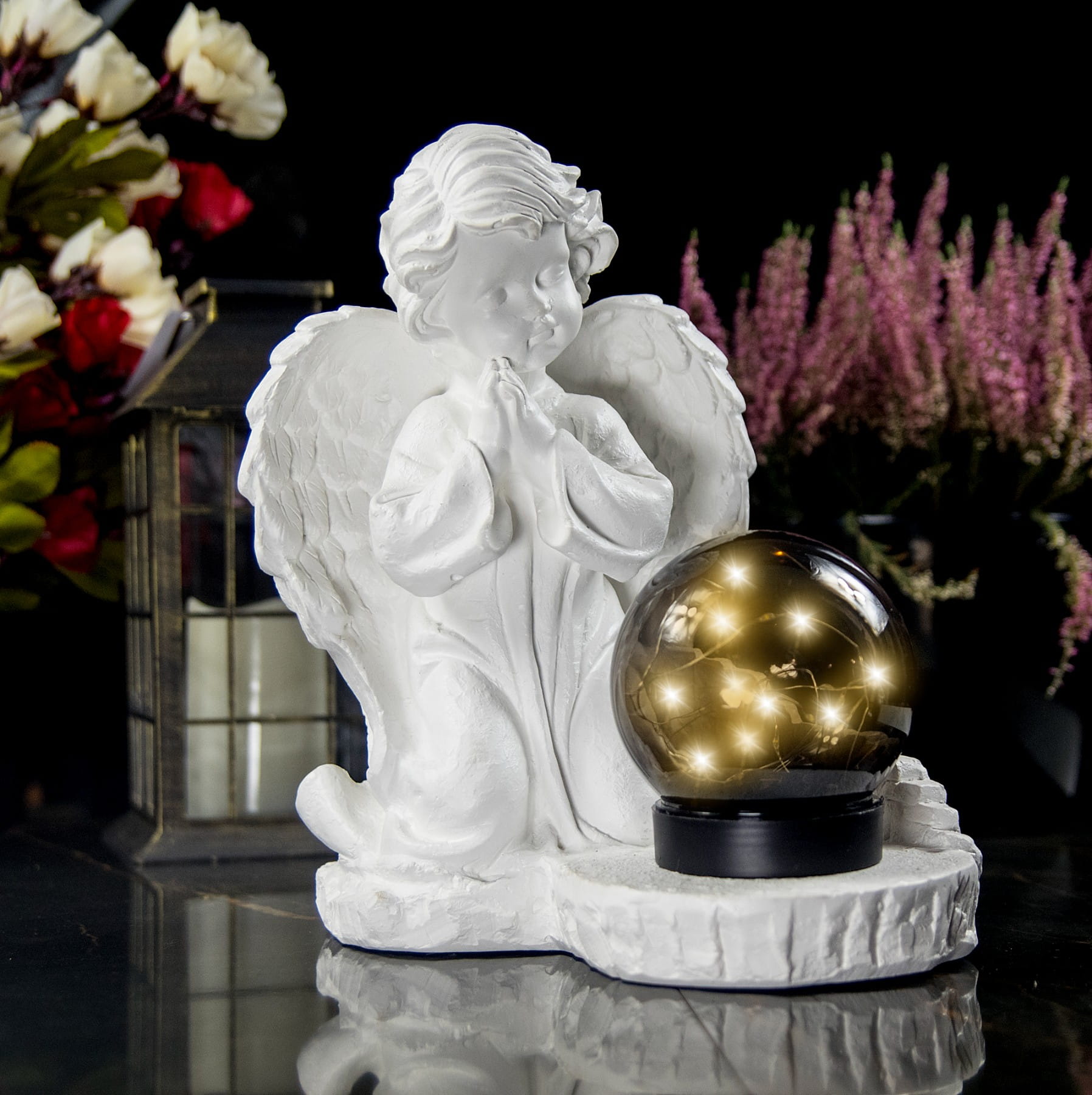 ➡️ Ozdobna gipsowa figurka ogrodowa, nagrobna z lampą LED w kształcie aniołka - BIAŁA