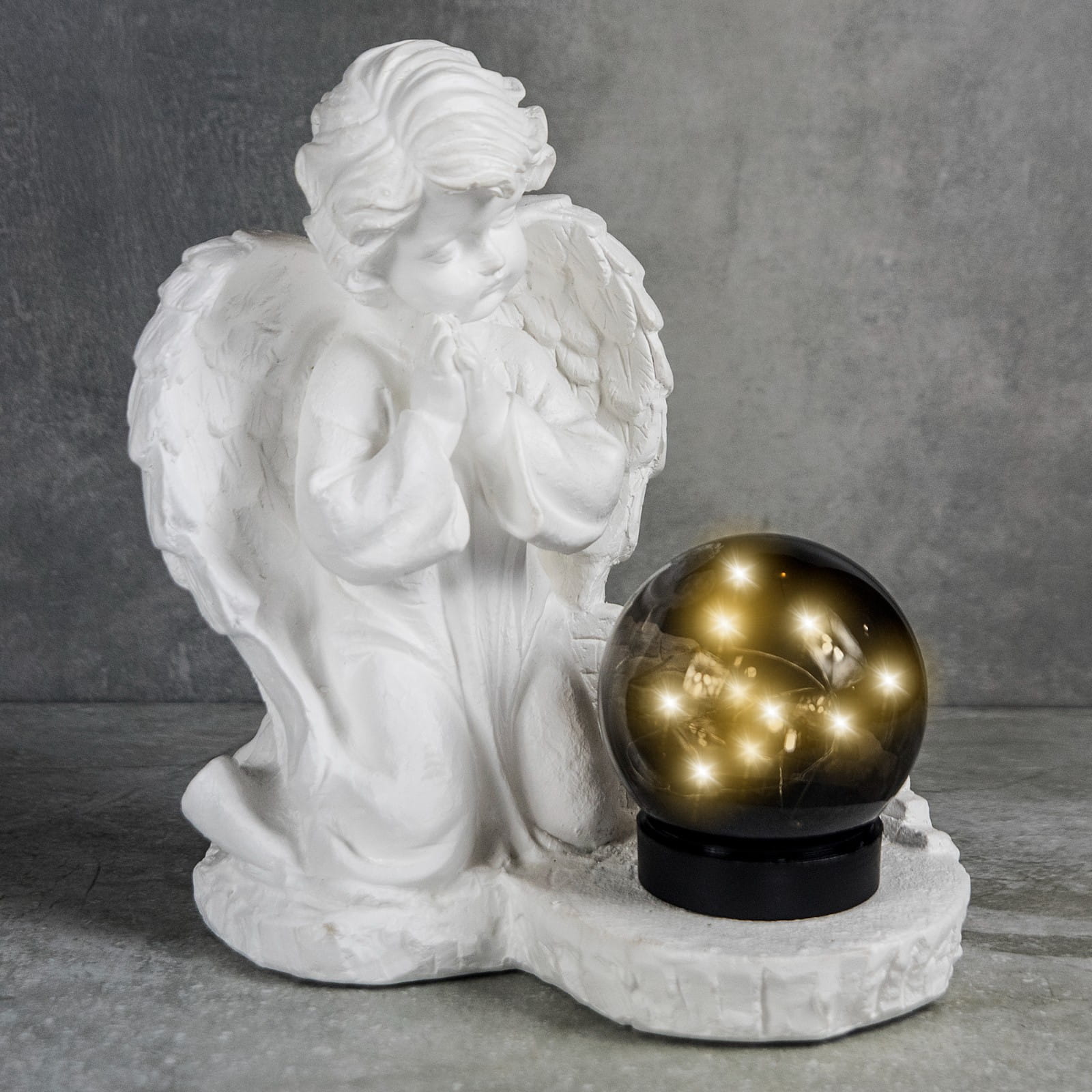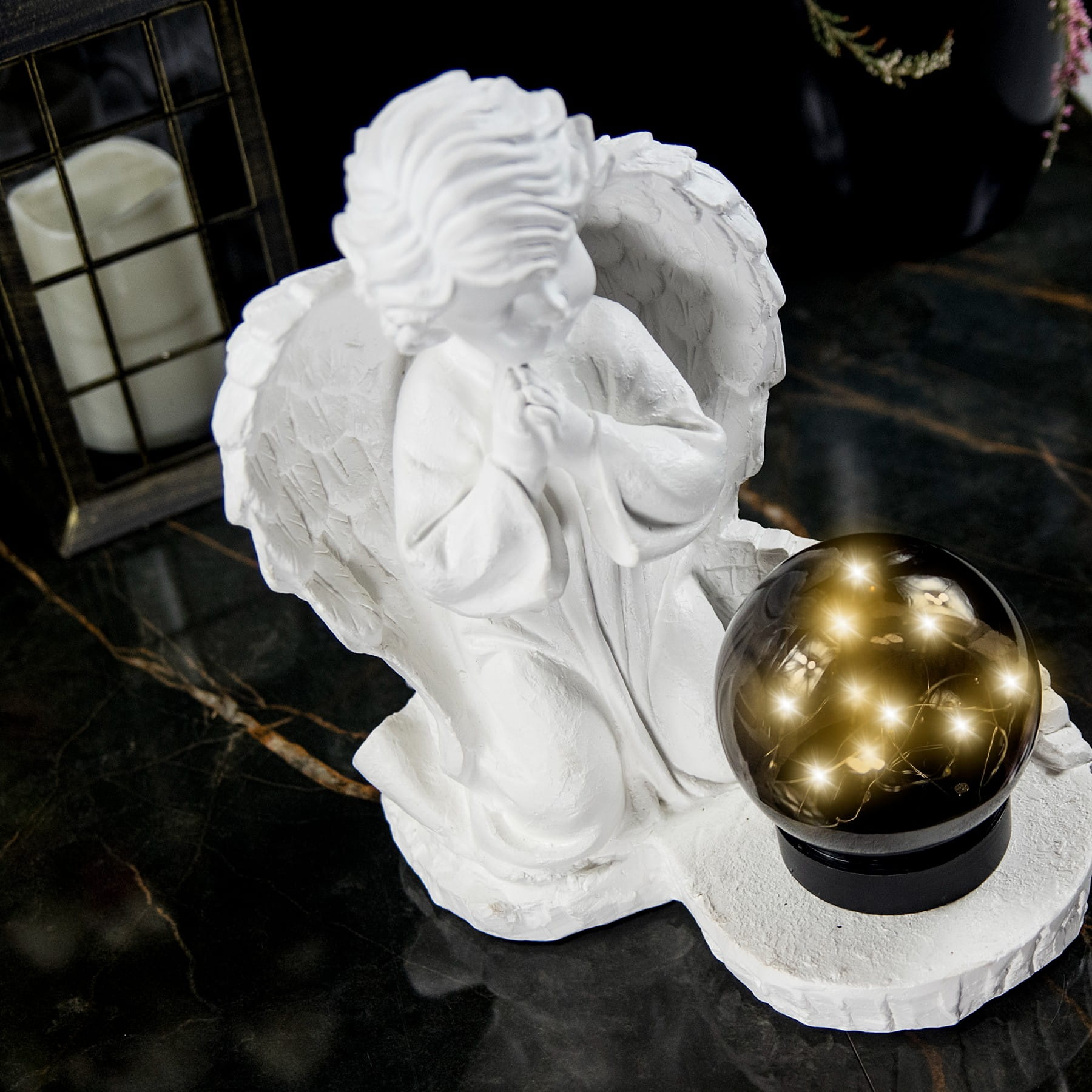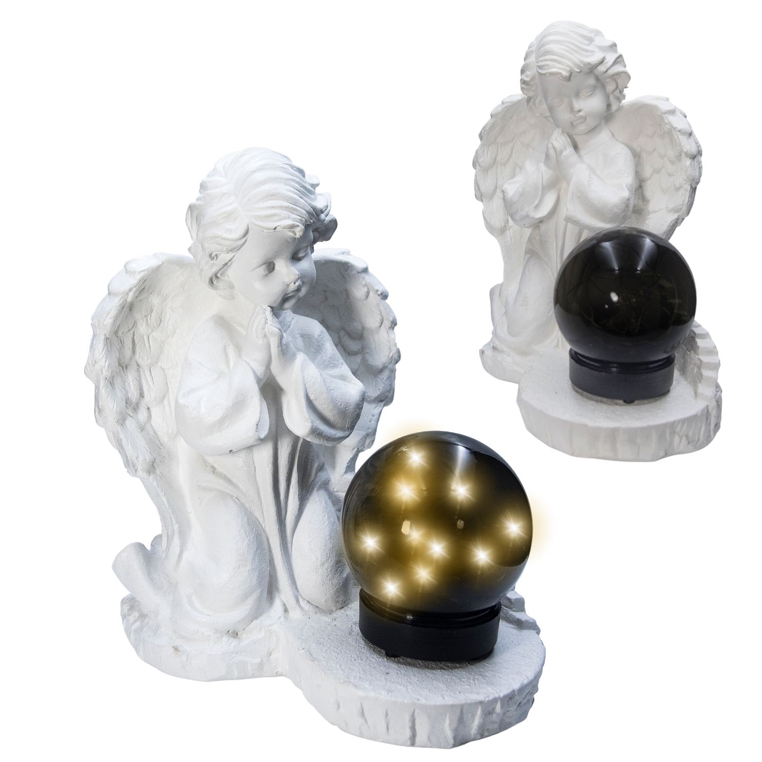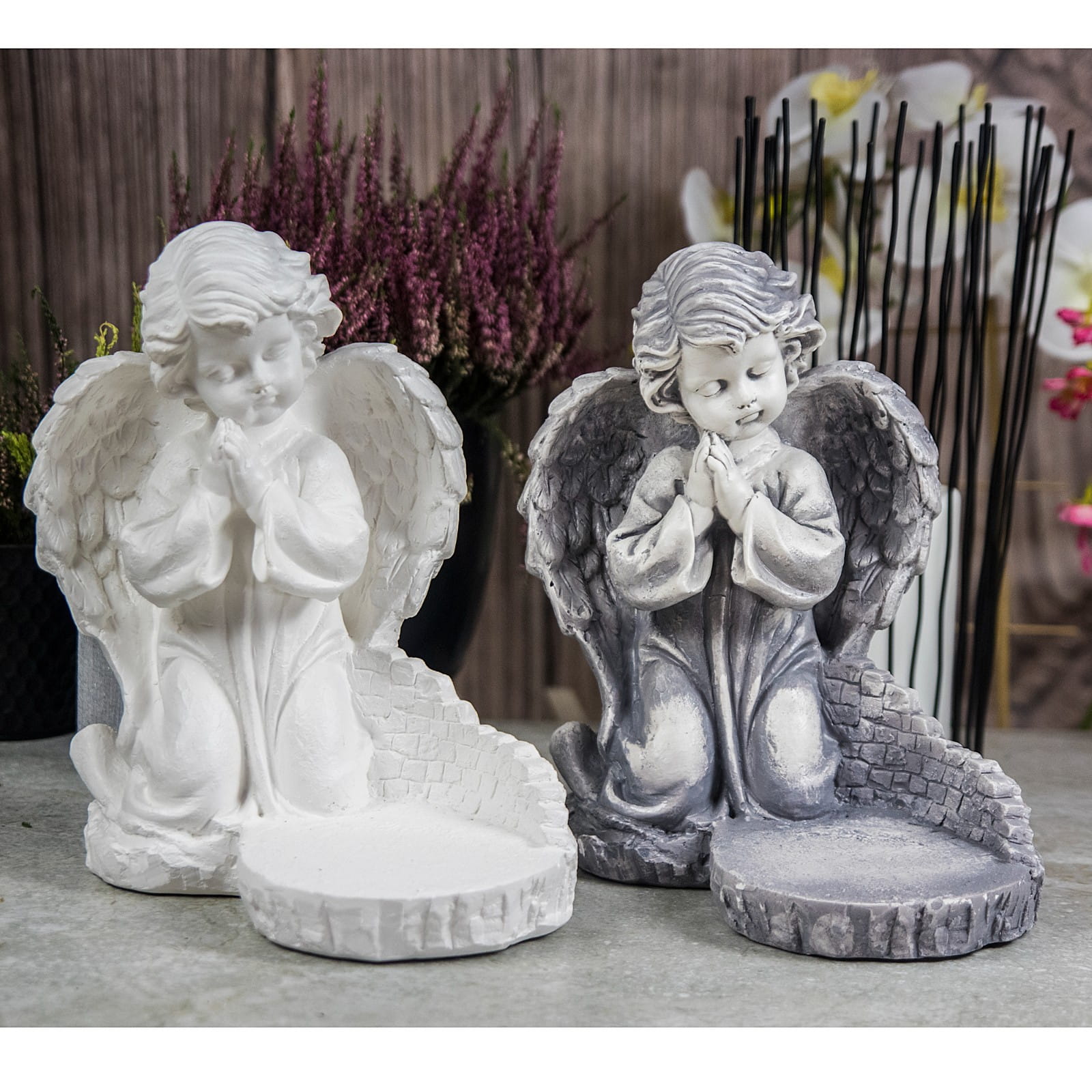 ➡️ Ozdobna gipsowa figurka ogrodowa, nagrobna z lampą LED w kształcie aniołka - BIAŁA