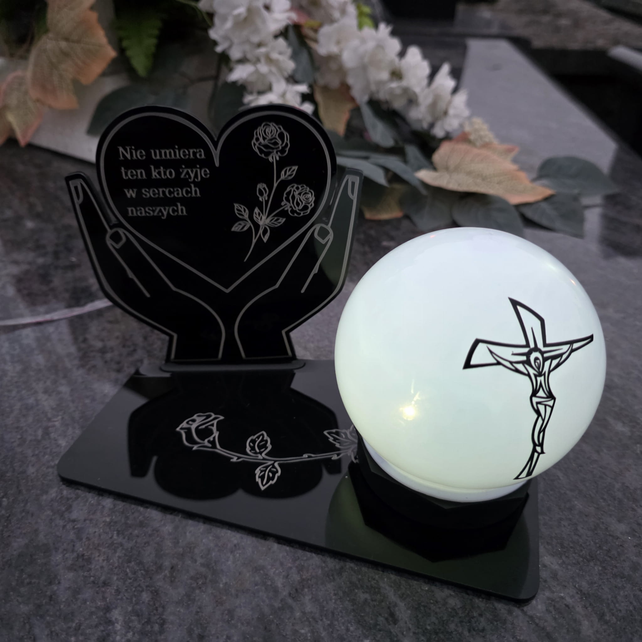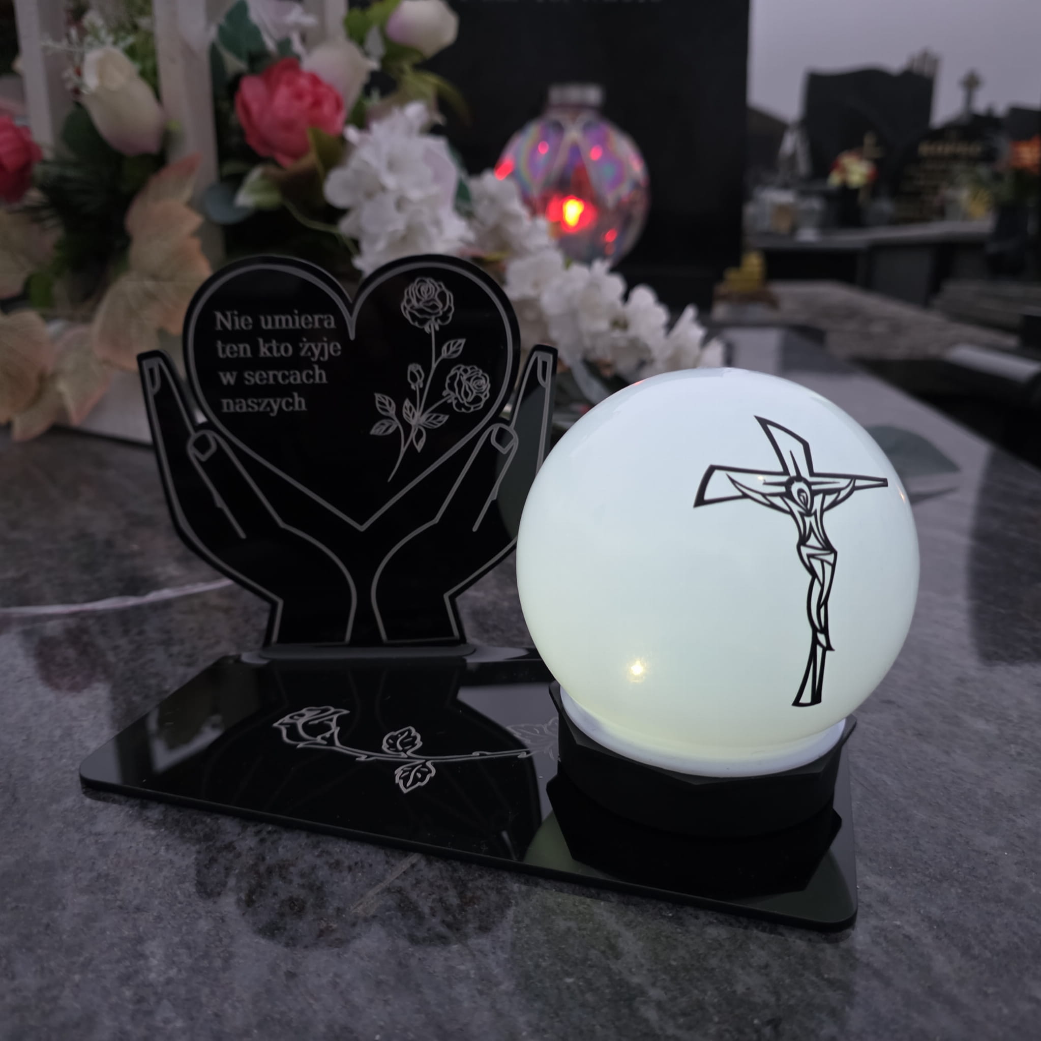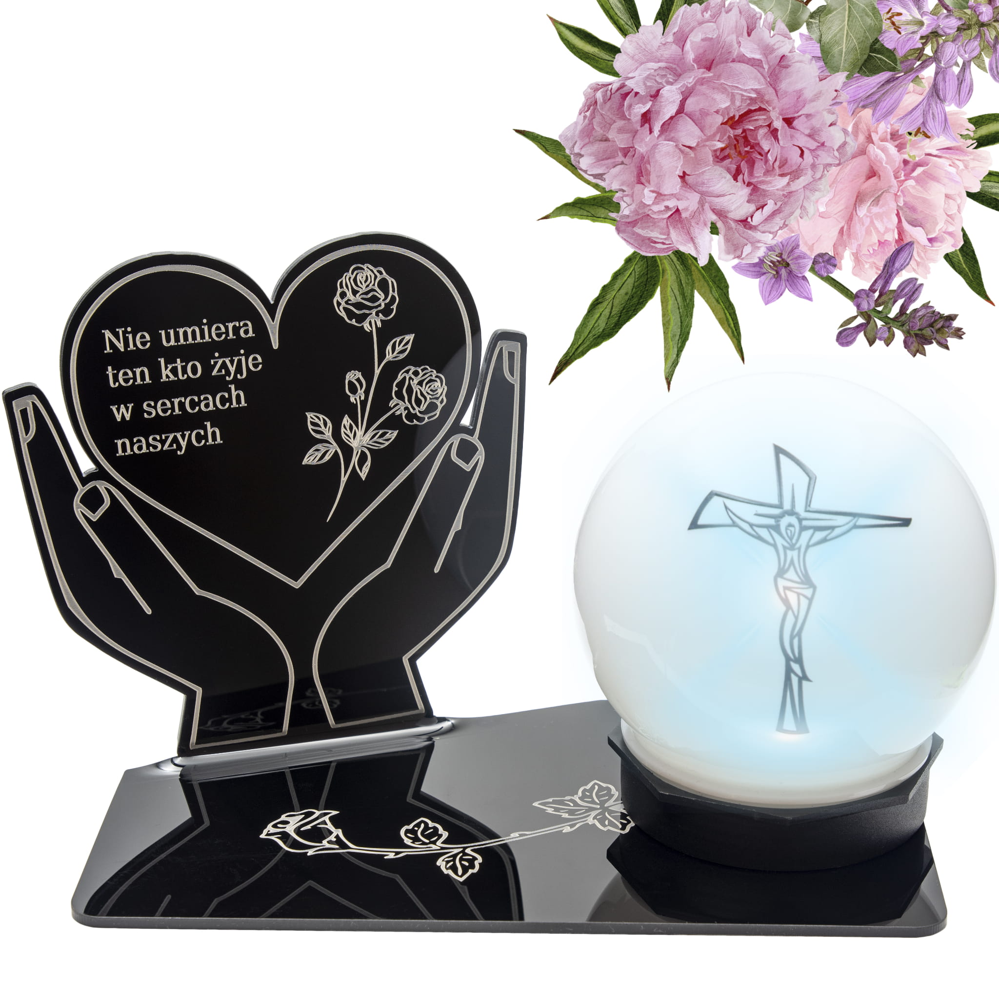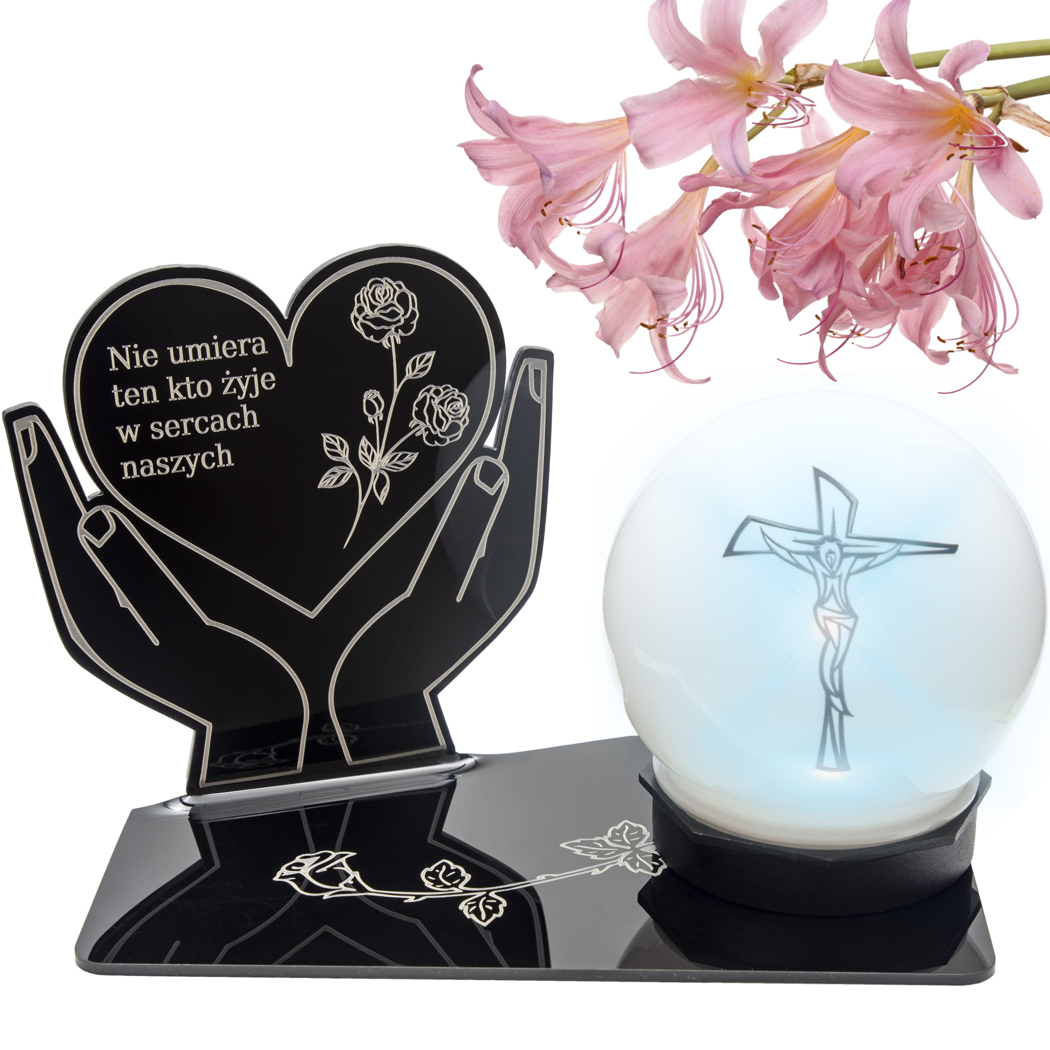 ZNICZ LED Solarna statuetka na cmentarz WIECZNA LAMPKA NA GRÓB podstawka