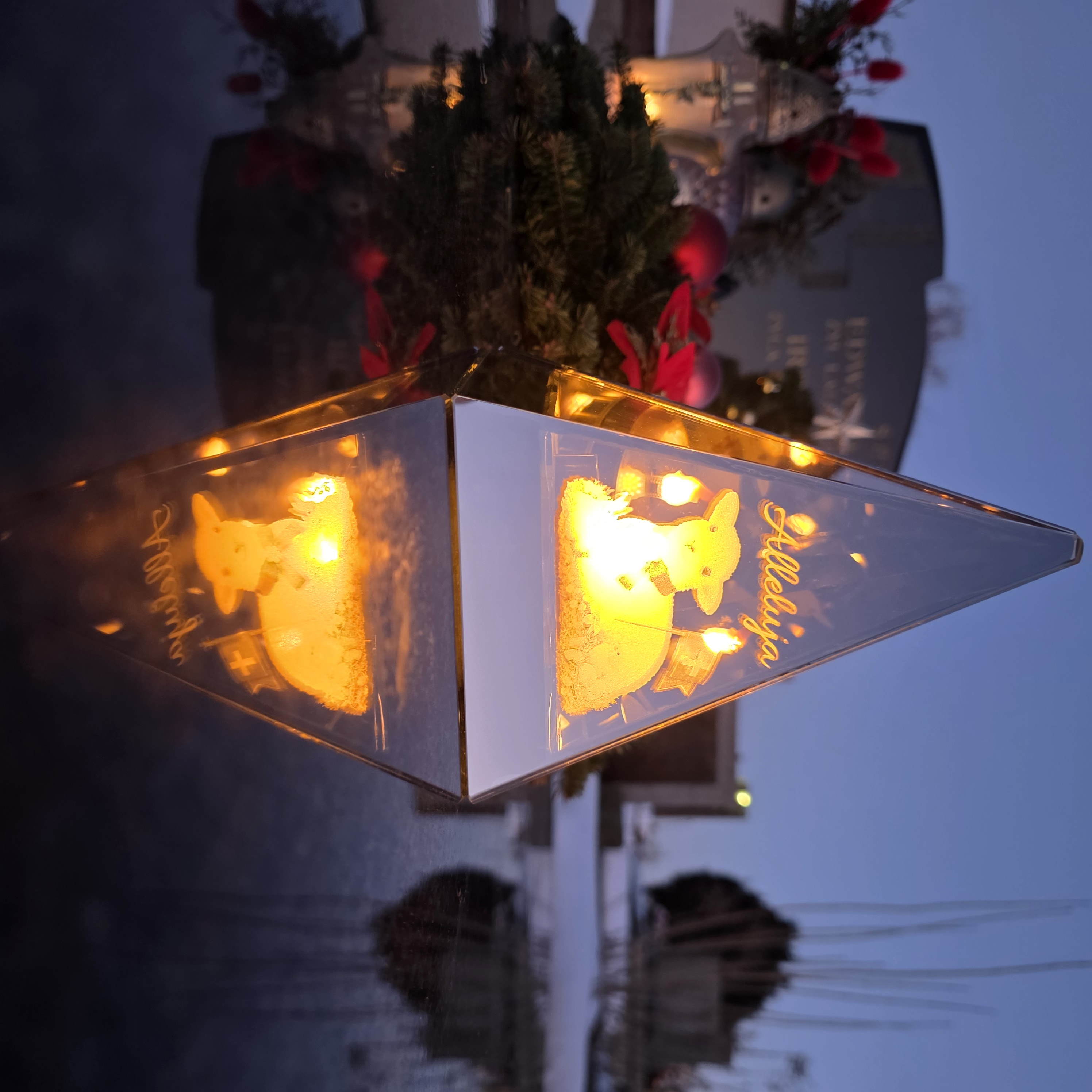 Ekskluzywny Znicz LED Piramida 20 cm – Lustro Weneckie z Ciepłym Płomieniem
