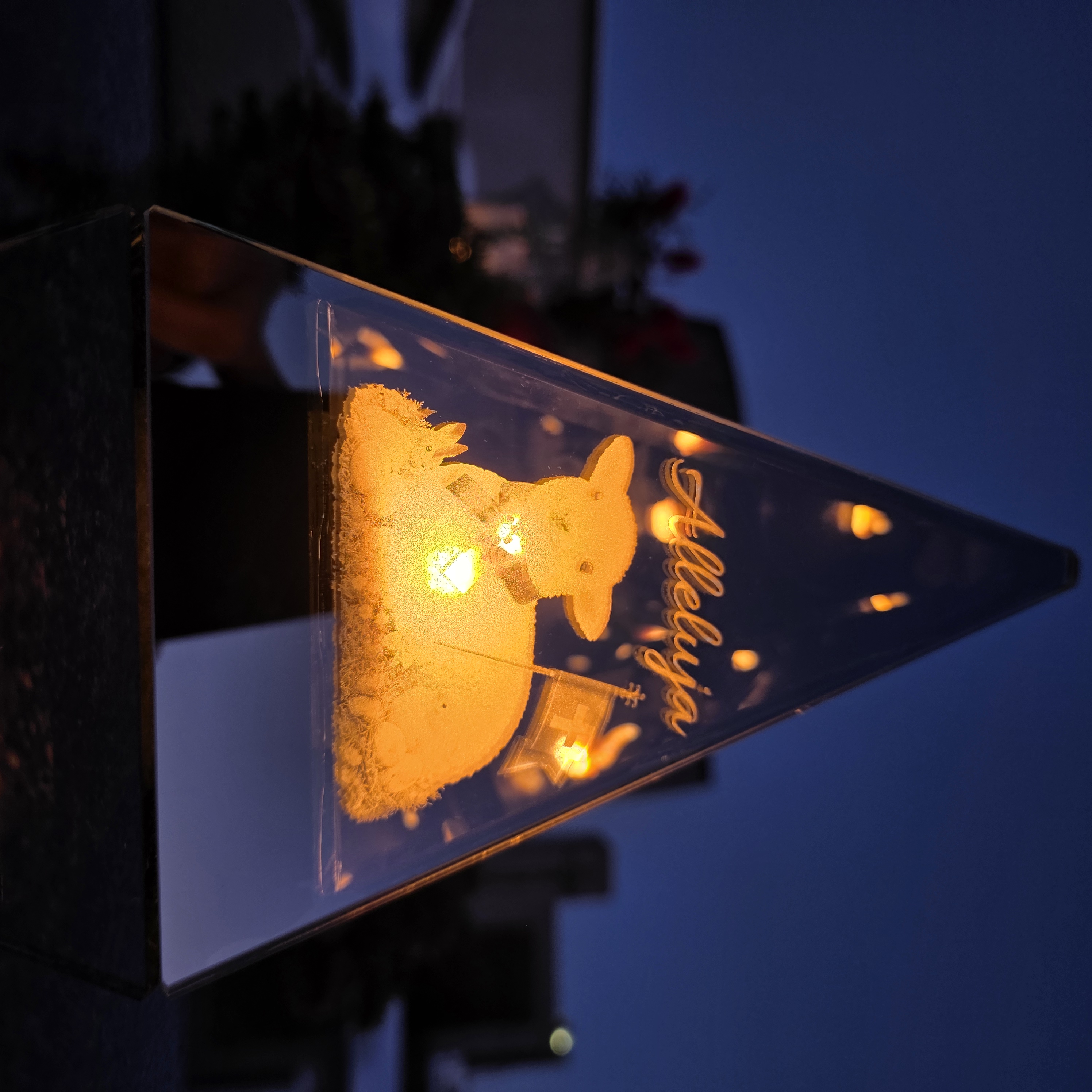 Wewnątrz znajduje się LED o wyglądzie naturalnego płomienia – dzięki odbiciom tworzy się wielokrotny, głęboki efekt 3D