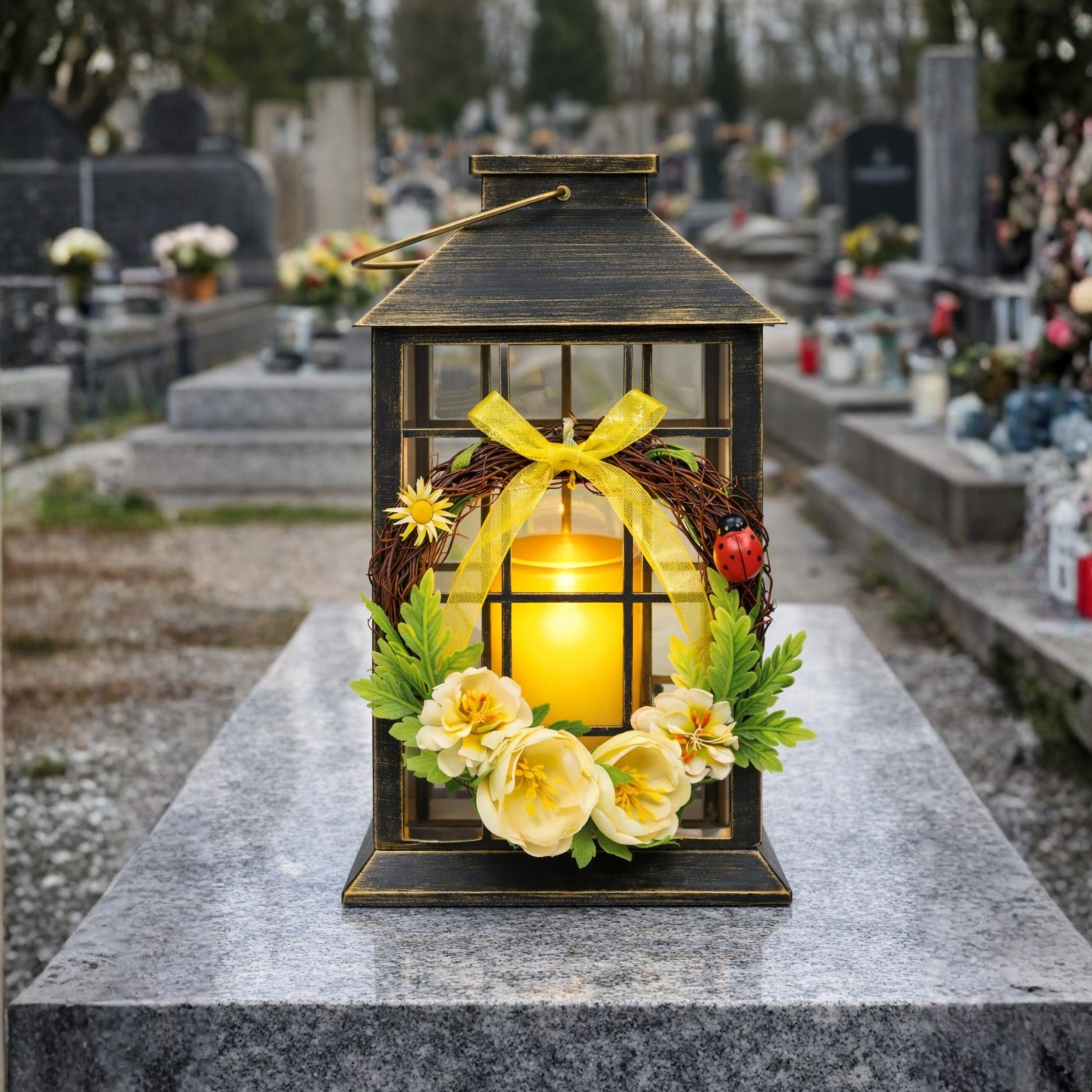 Ta stylowa latarenka solarna z wiosennym wiankiem kwiatowym to połączenie klasycznego znicza z nowoczesną technologią LED.