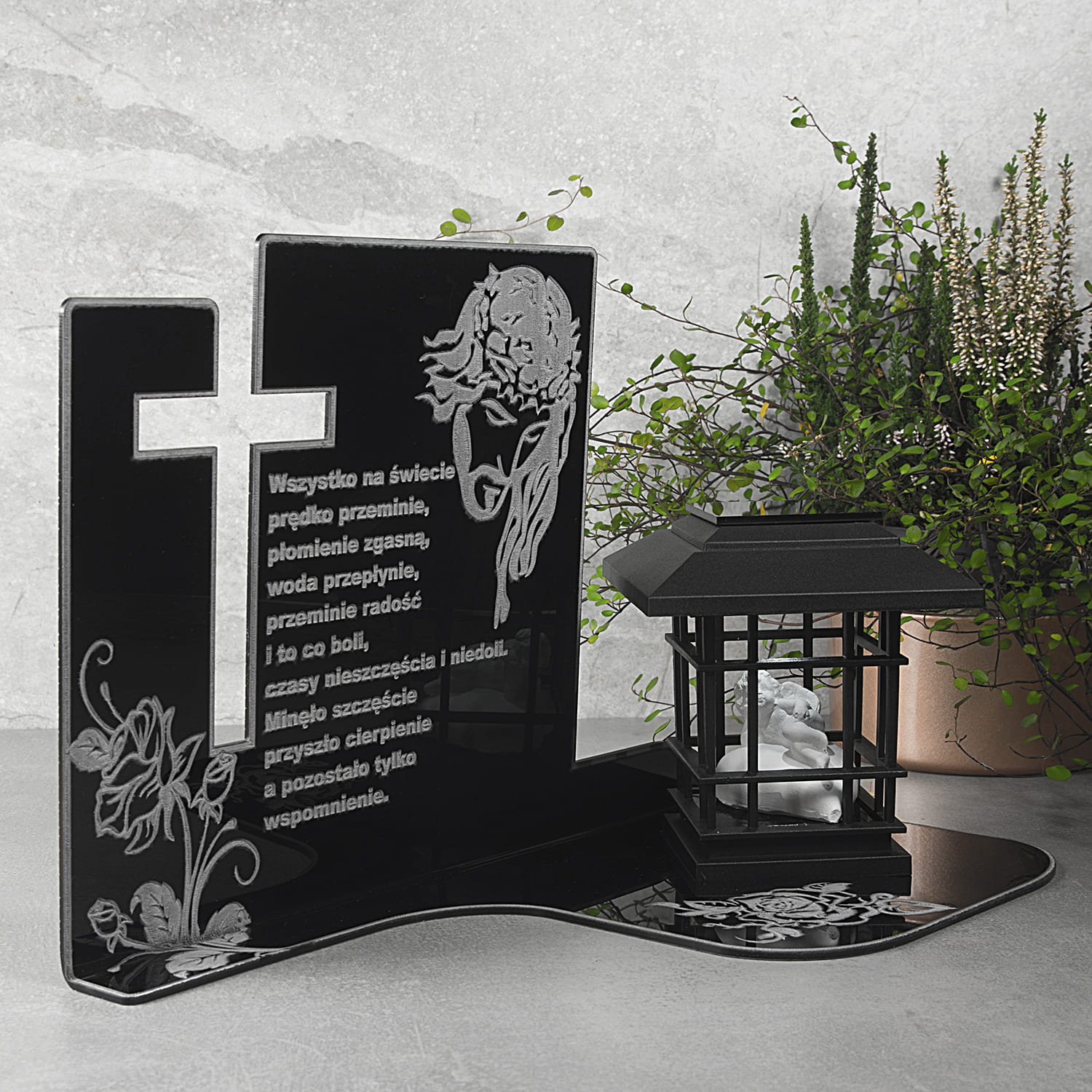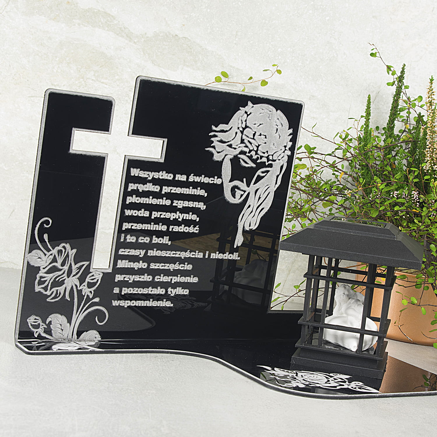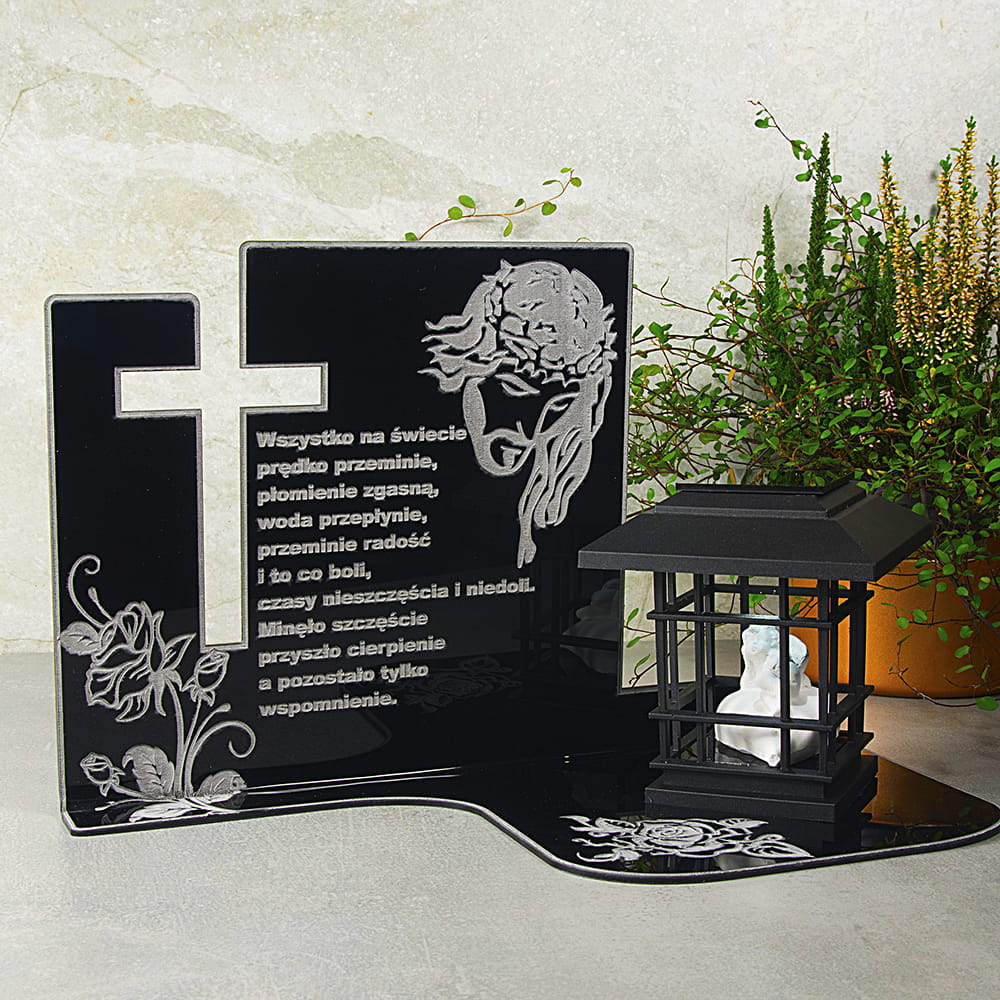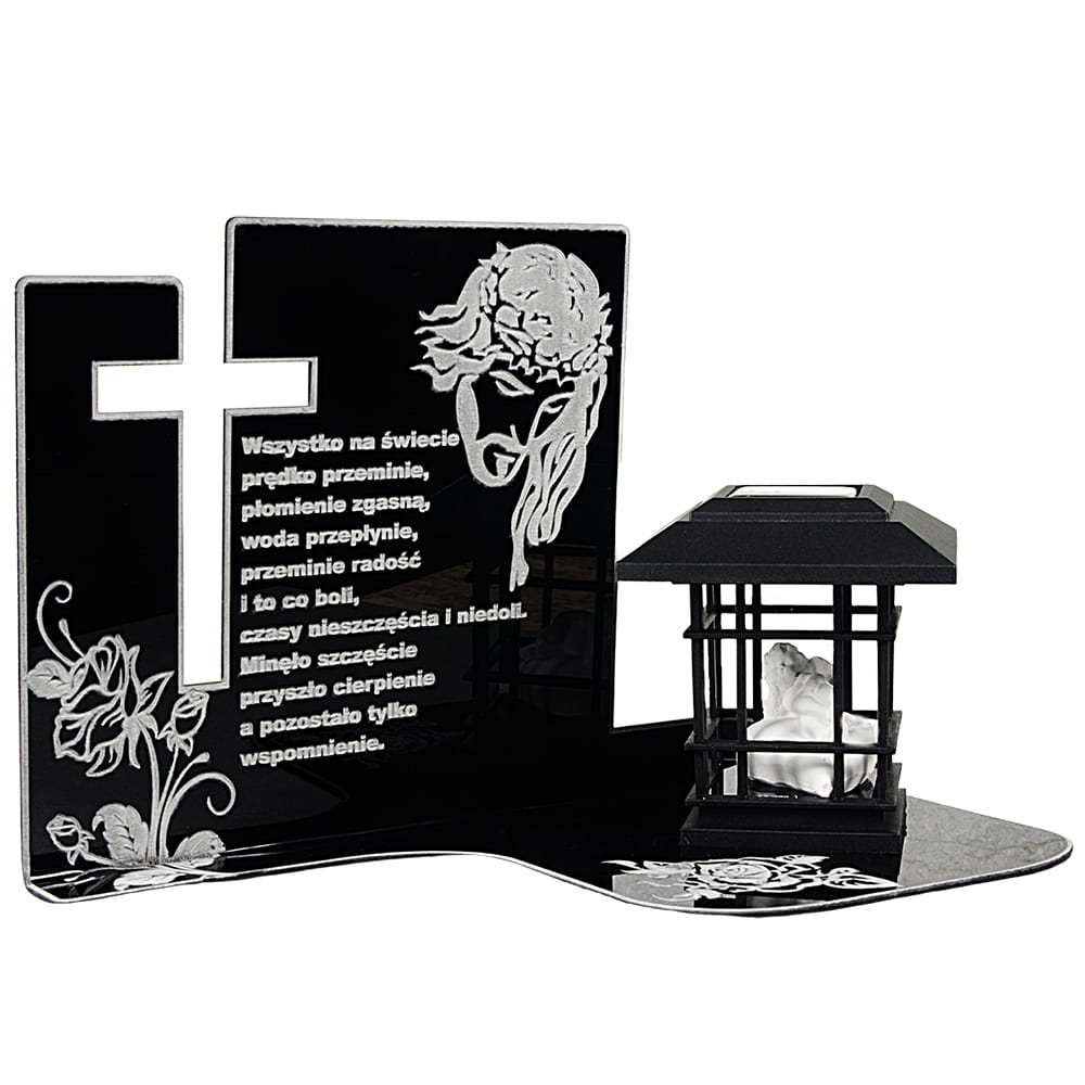ZNICZ Pamięci z Aniołkiem ELEGANCKI LAMPION SZKŁO AKRYLOWE SOLARNY na Grób