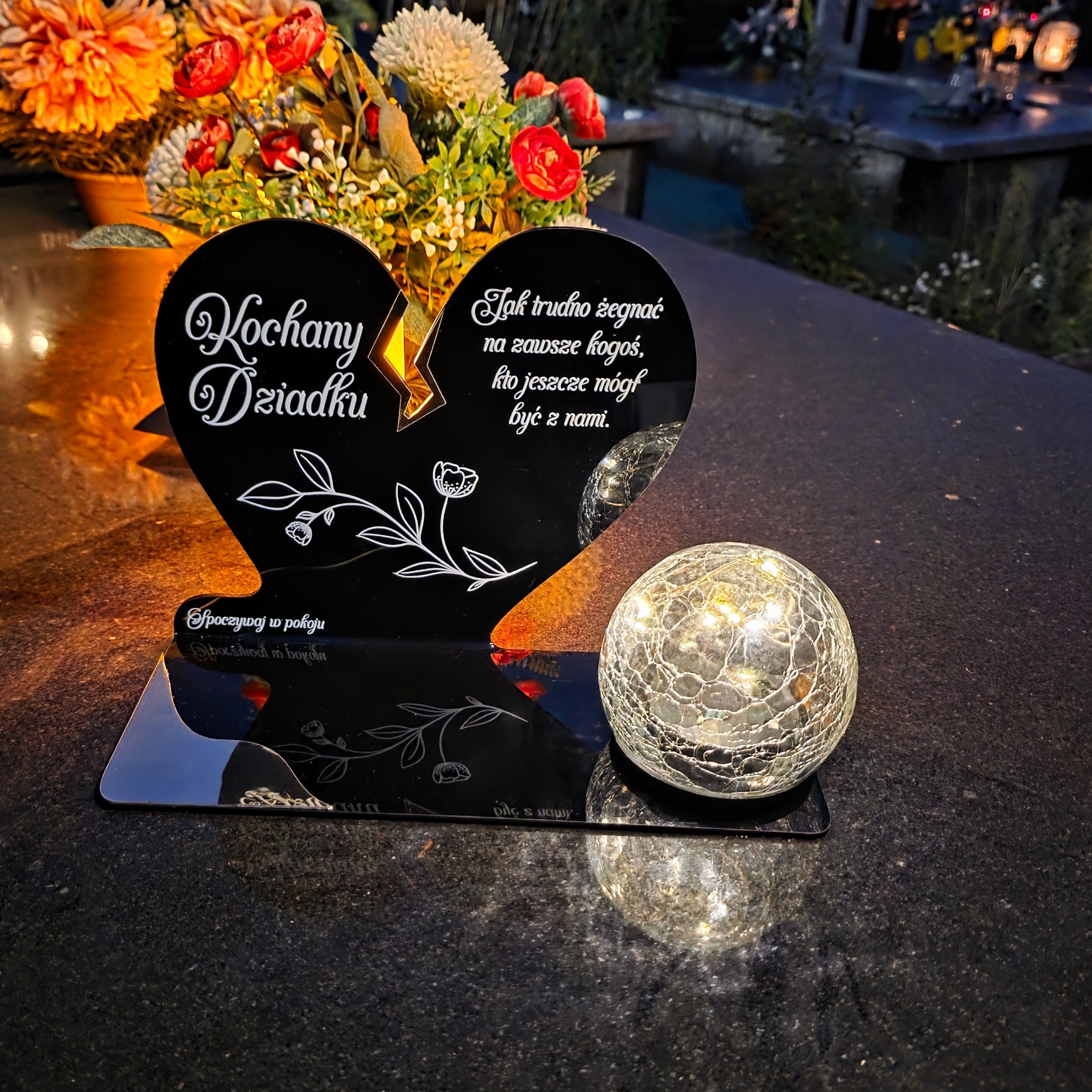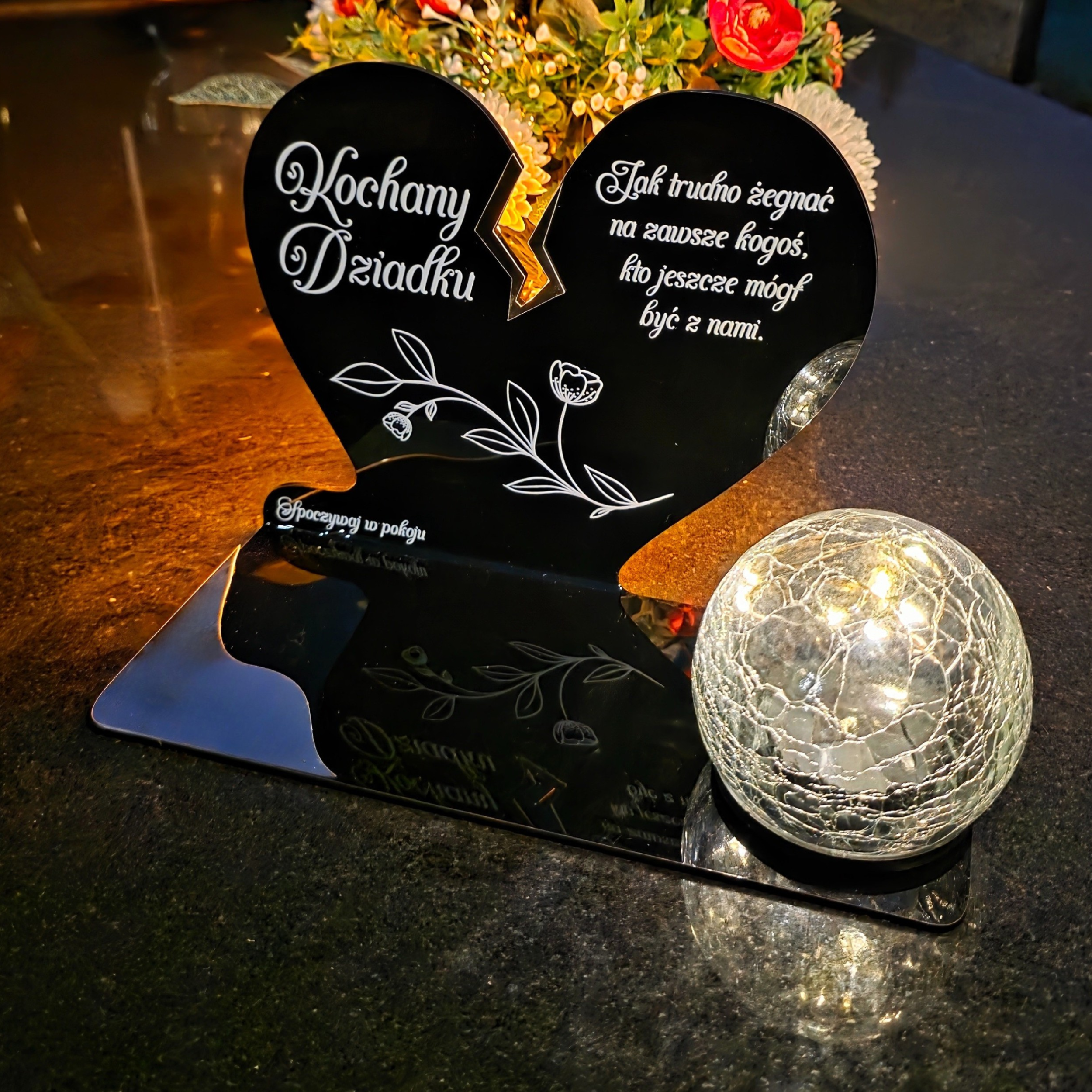 Elegancki znicz nagrobny dla Dziadka– serce ze złotymi akcentami i solarną kulą LED