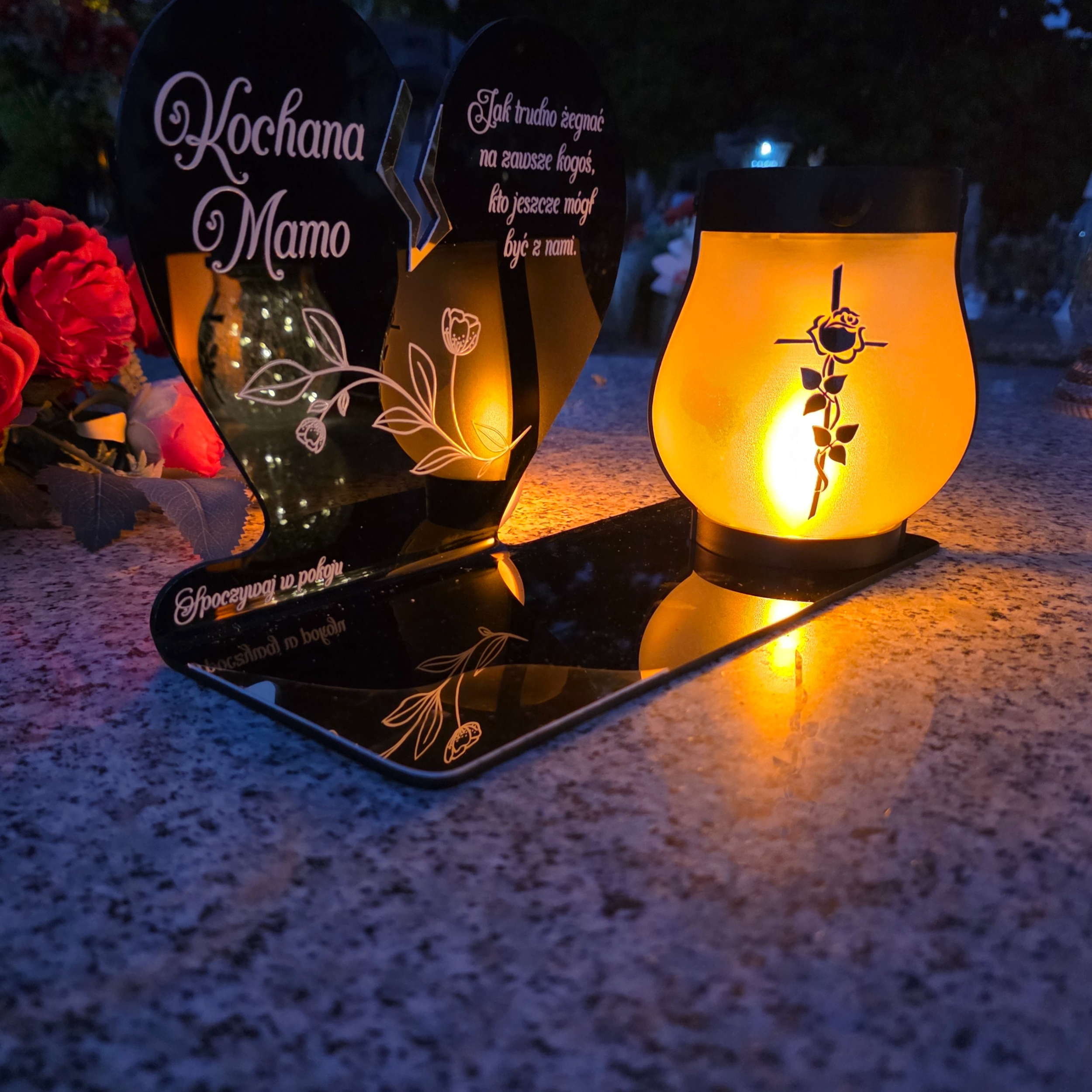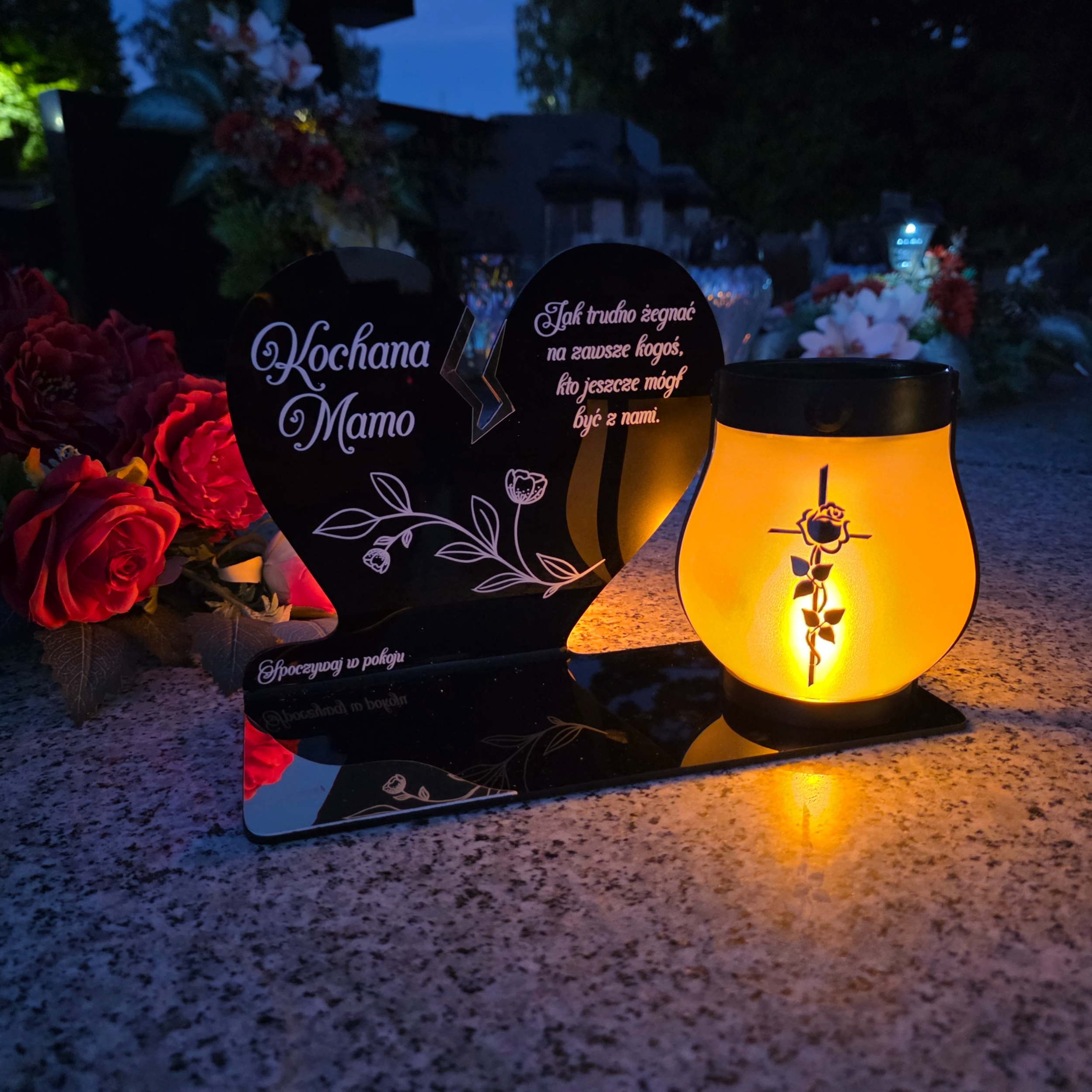 ZNICZ SOLARNY DLA MAMY LED NA GRÓB CMENTARZ SERCE NOWOSCI LAMPKA PŁOMIEŃ