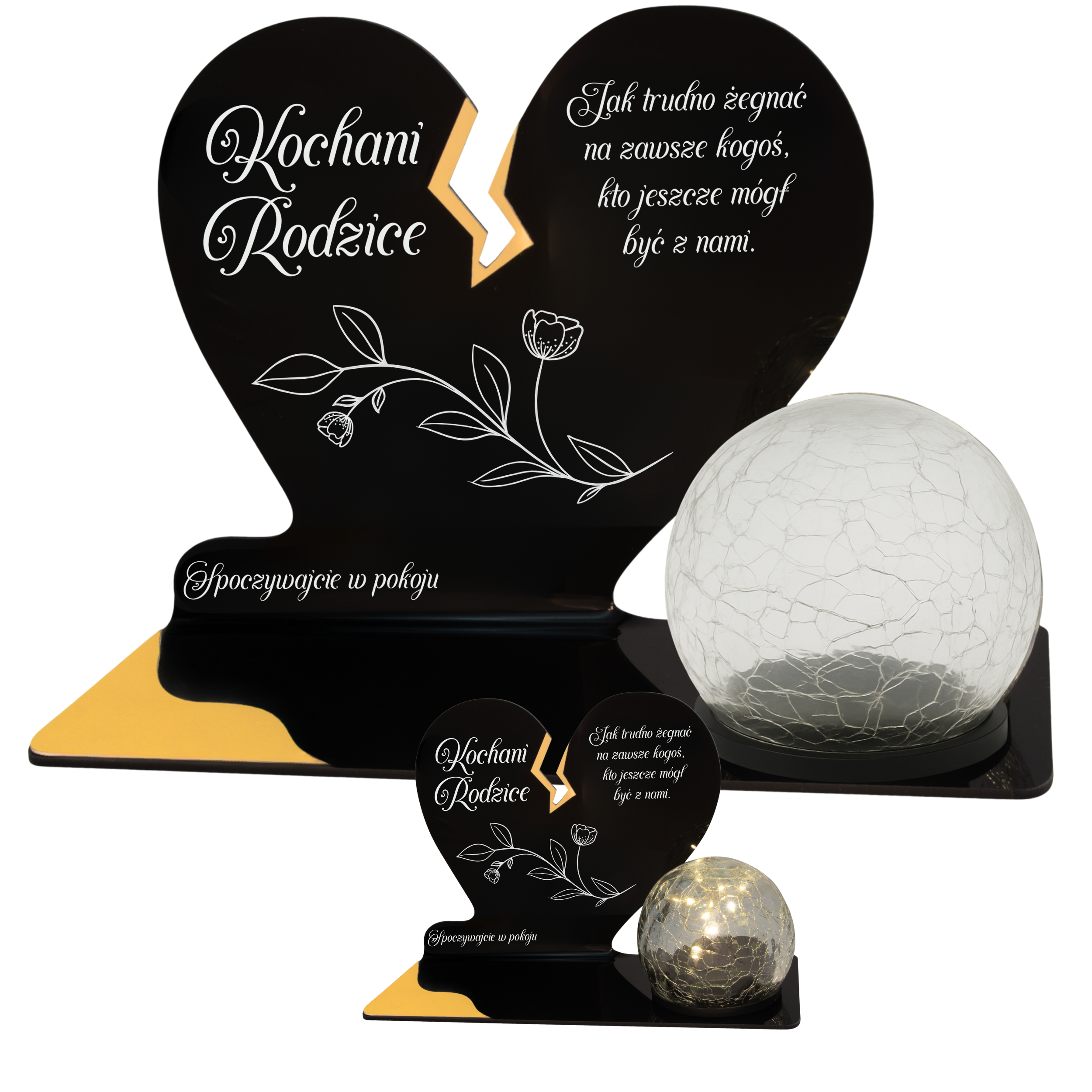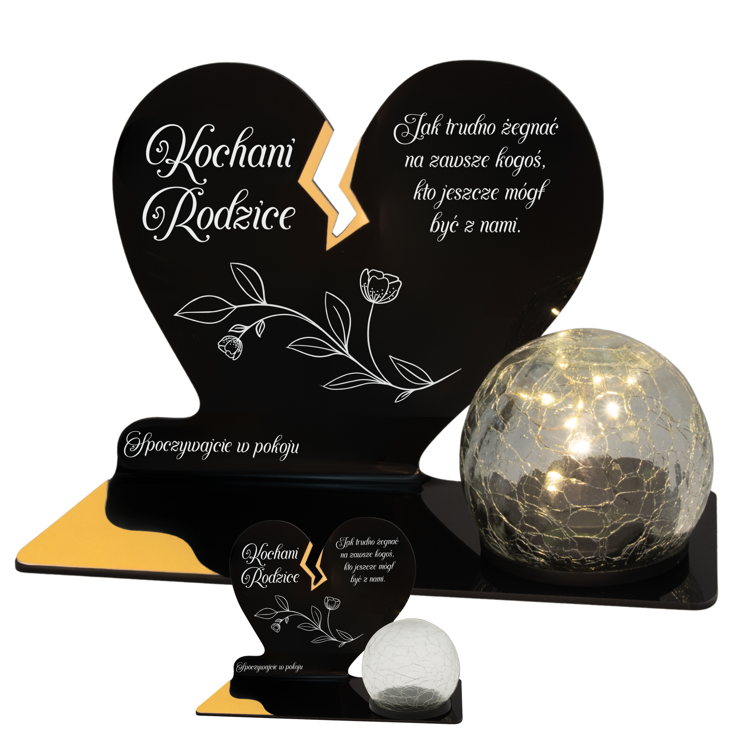 Elegancki znicz nagrobny dla Rodziców– serce ze złotymi akcentami i solarną kulą LED
