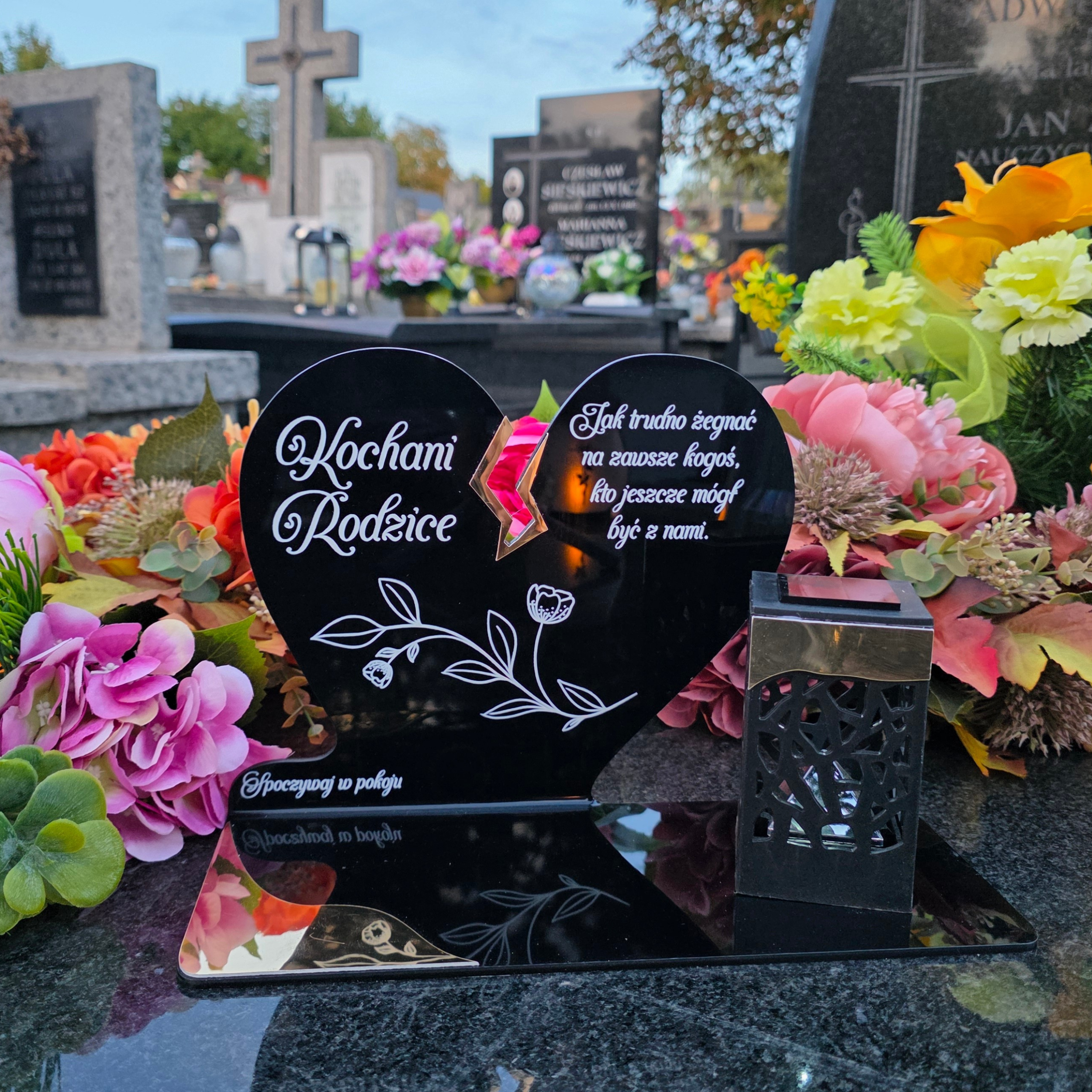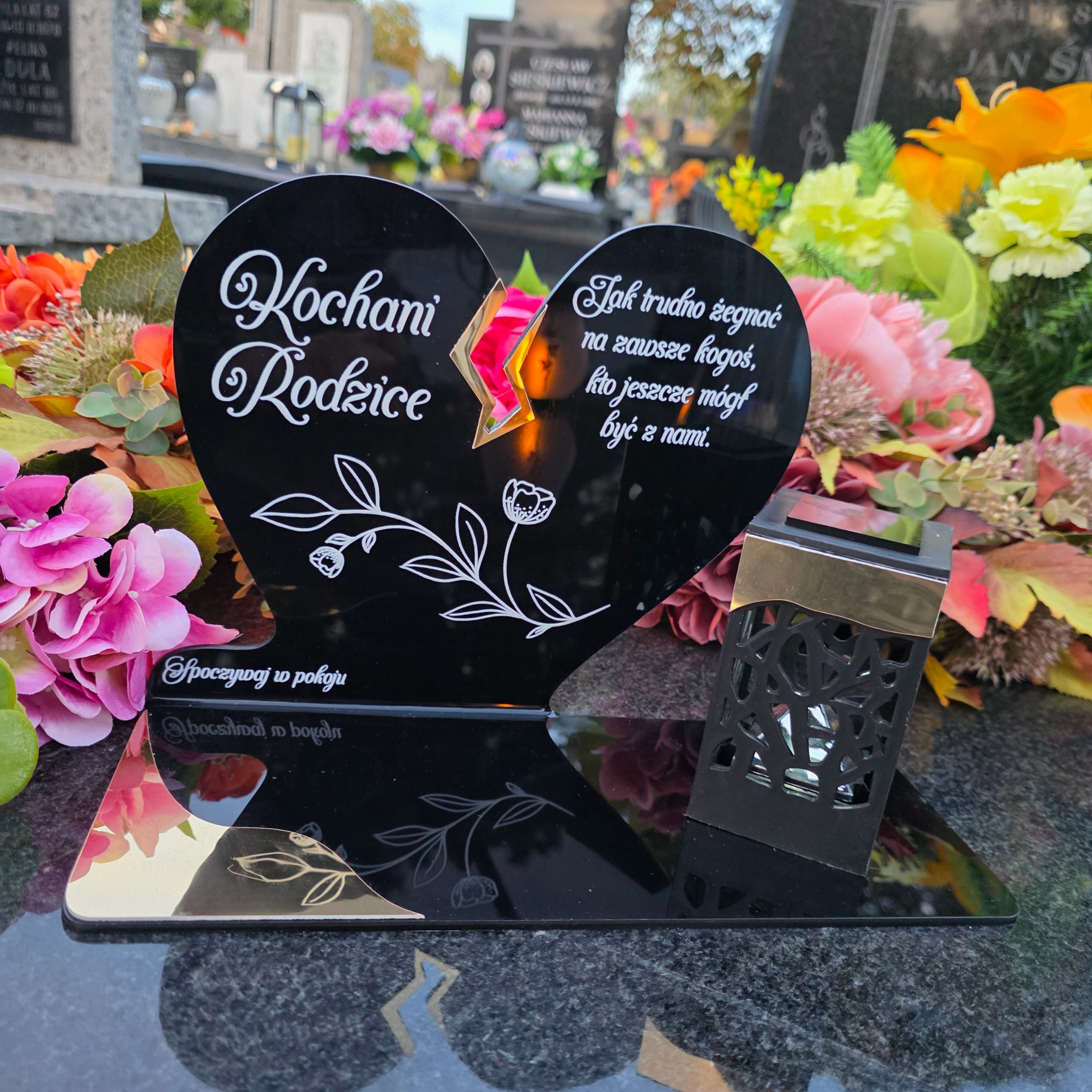 To niezwykła pamiątka, która wyróżnia się eleganckim designem i praktycznym działaniem. Połączenie serca z nowoczesną lampką solarną sprawia, że znicz nie tylko pięknie zdobi nagrobek, ale też zapewnia światło pamięci przez cały rok – bez konieczności wymiany wkładów.
