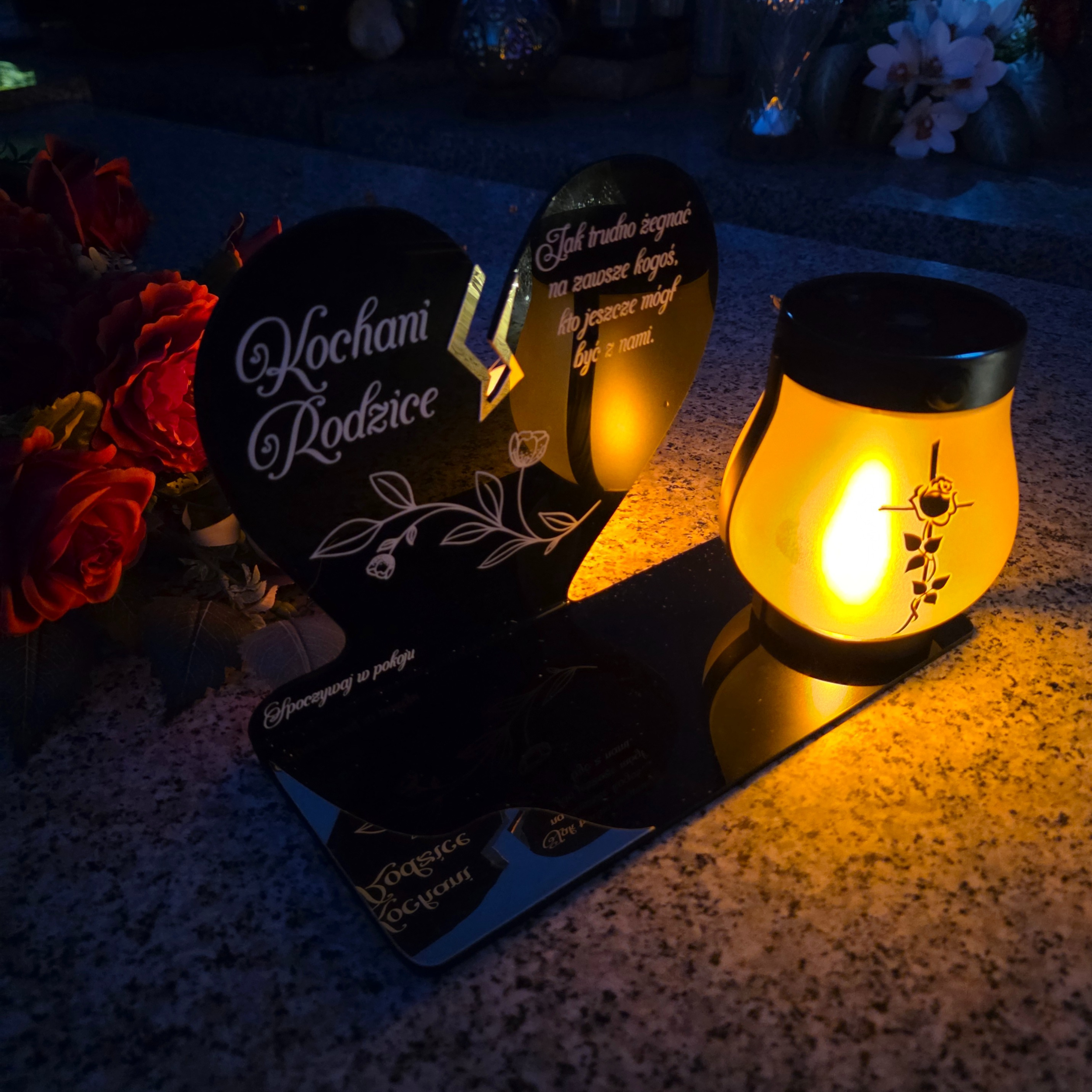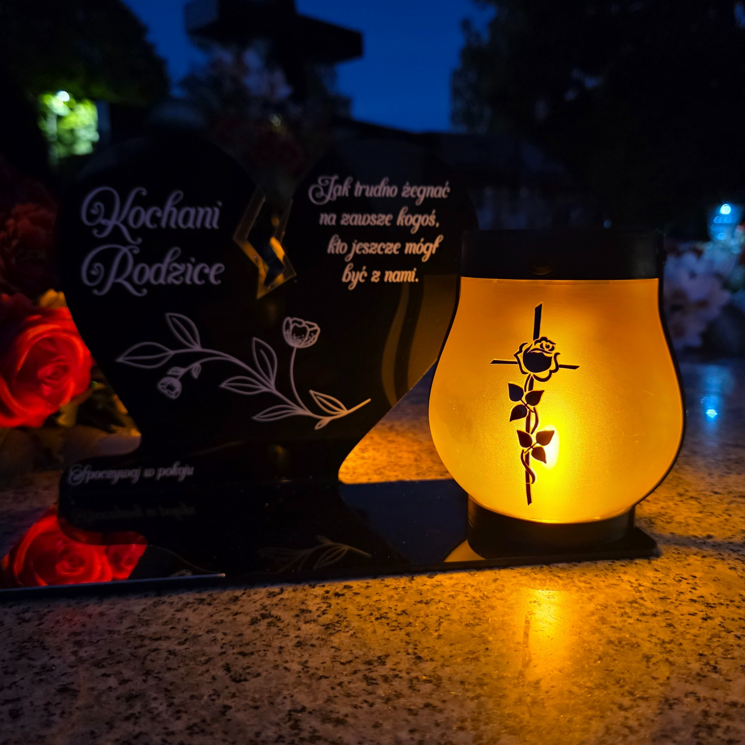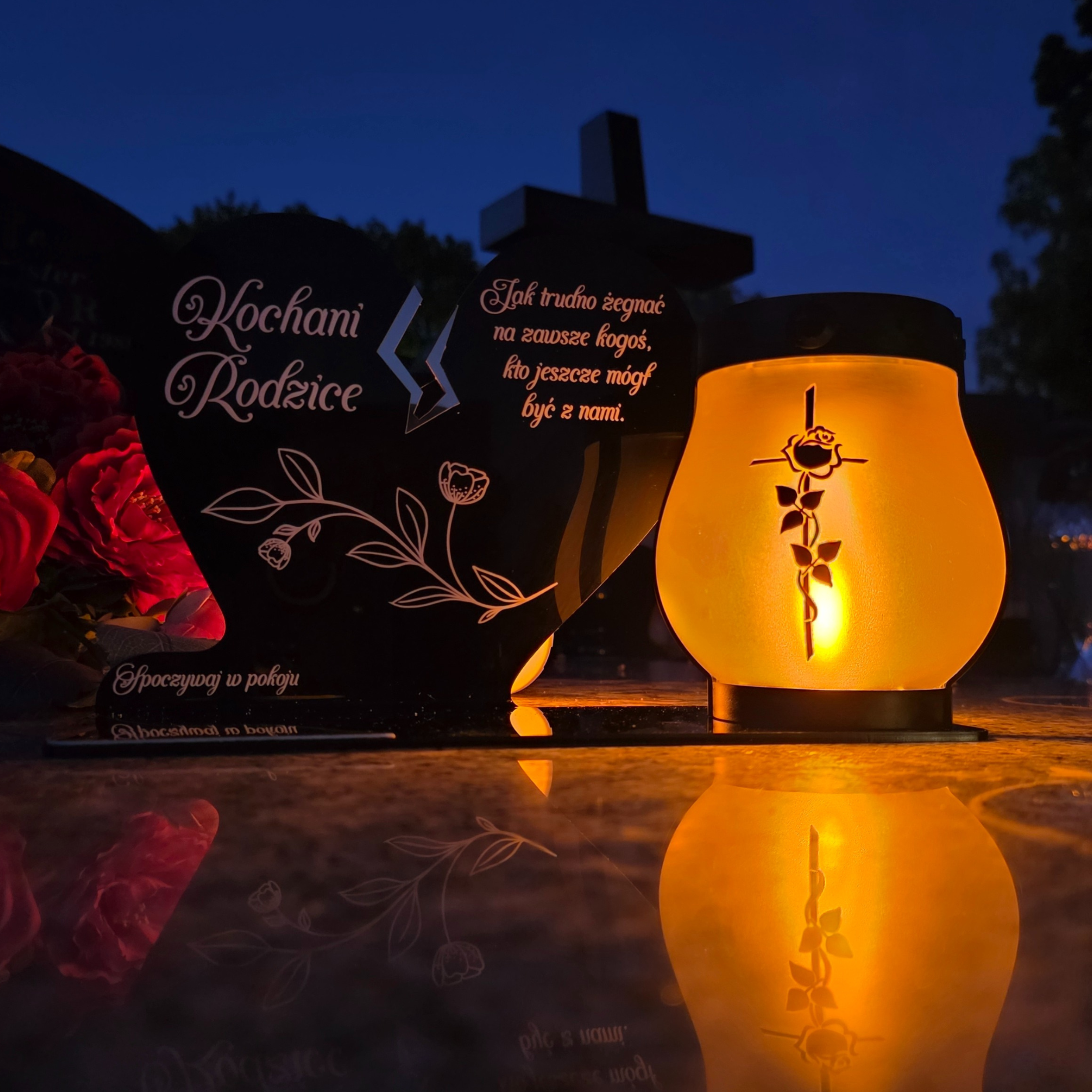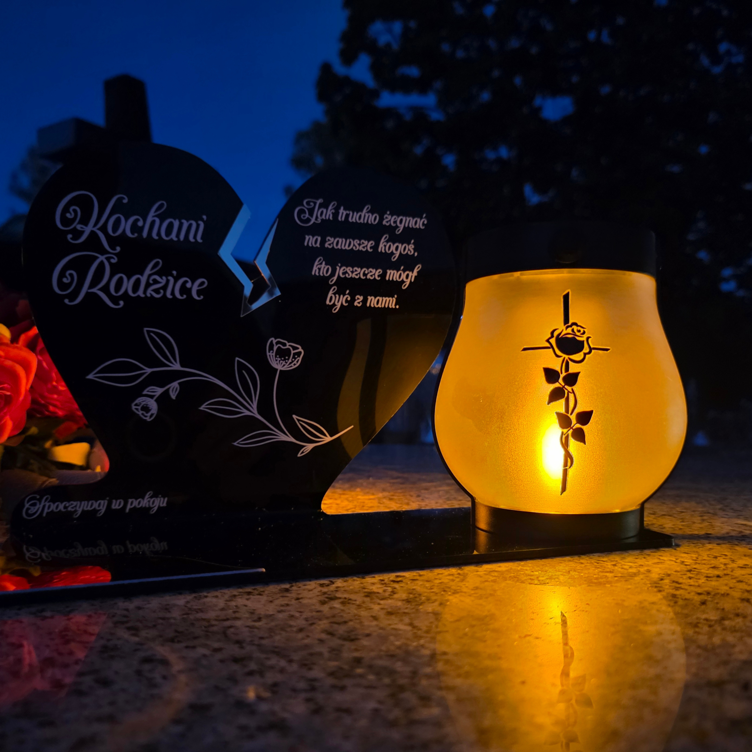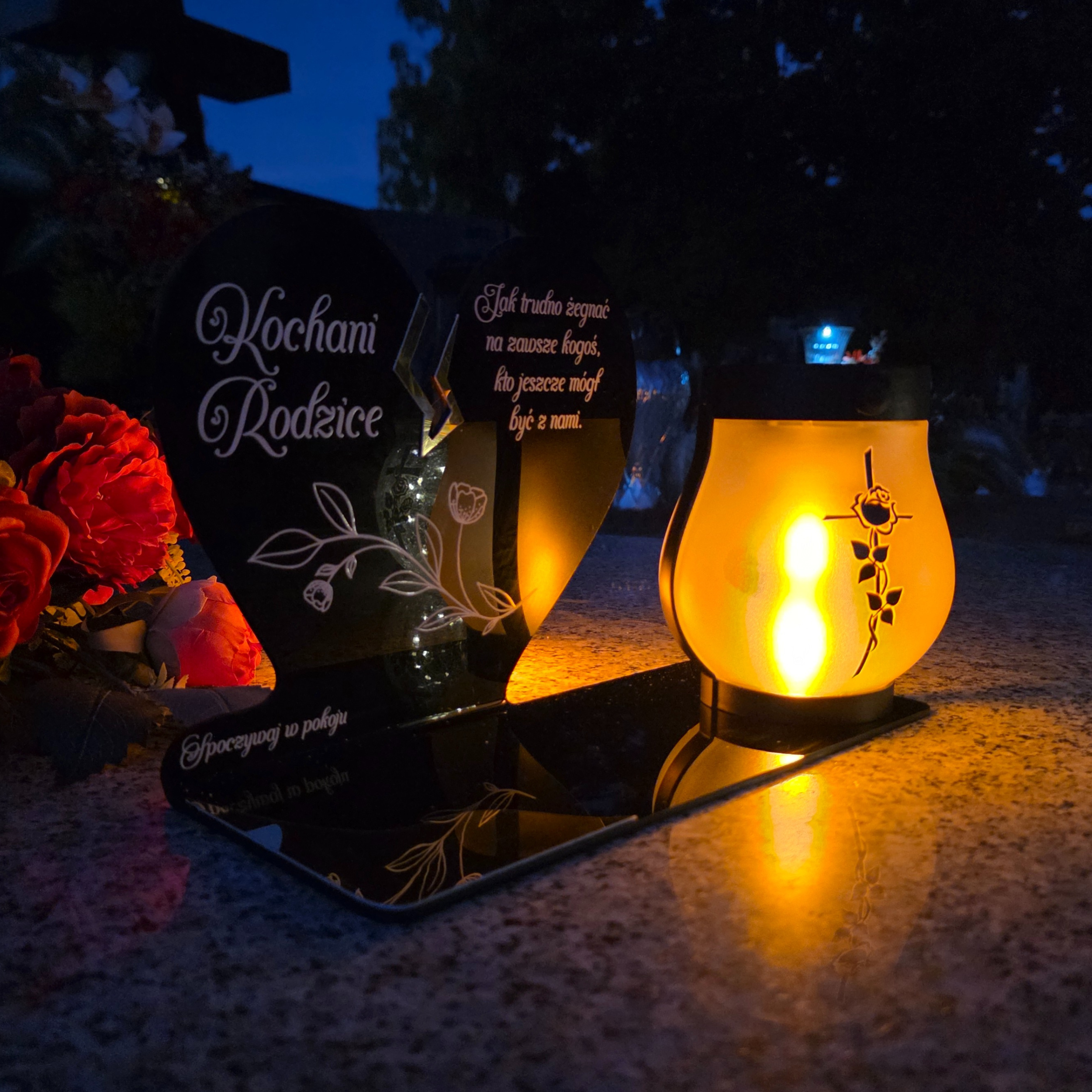 ZNICZ SOLARNY DLA RODZICÓW LED NA GRÓB CMENTARZ SERCE NOWOSCI LAMPKA PŁOMIEŃ