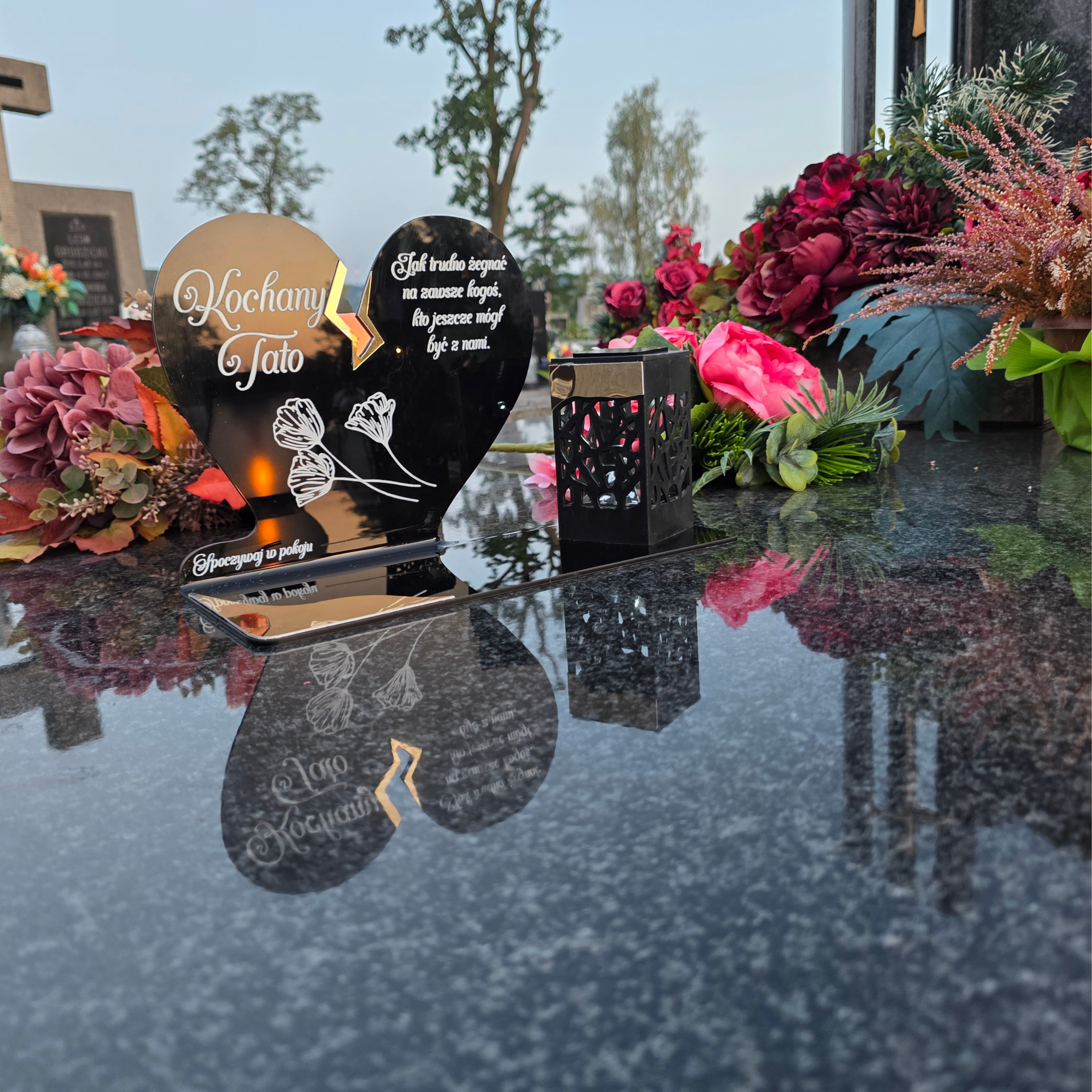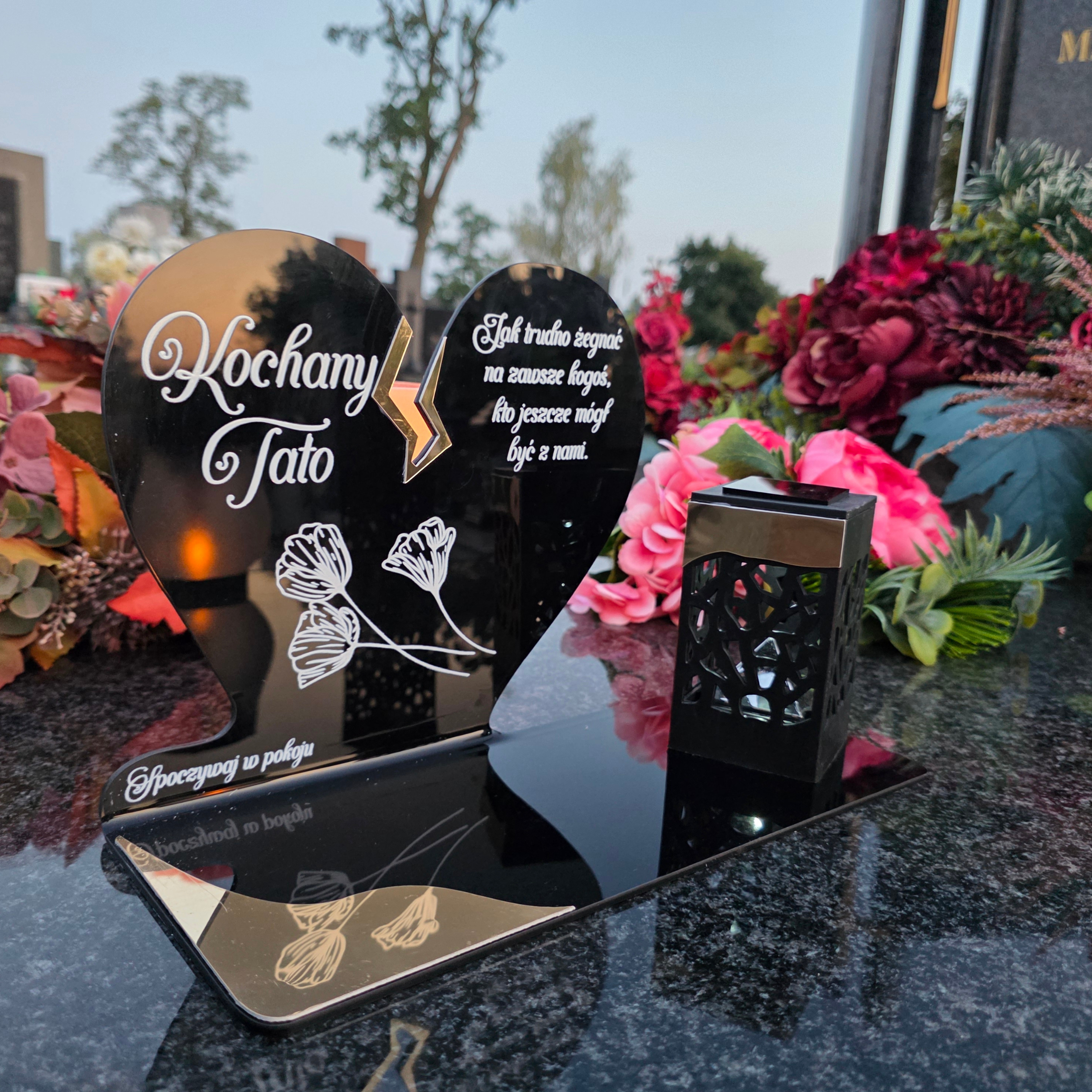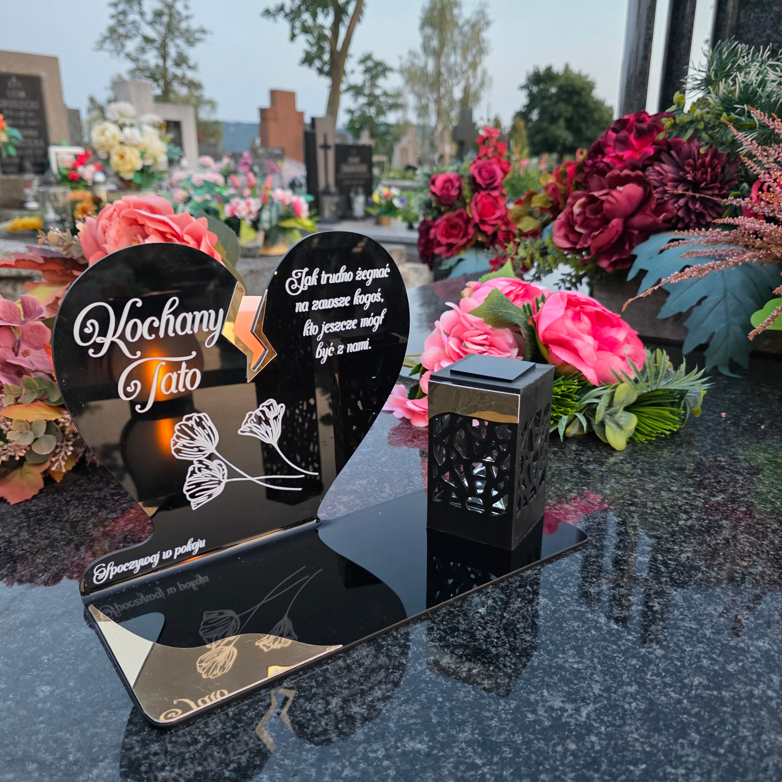 To niezwykła pamiątka, która wyróżnia się eleganckim designem i praktycznym działaniem. Połączenie serca z nowoczesną lampką solarną sprawia, że znicz nie tylko pięknie zdobi nagrobek, ale też zapewnia światło pamięci przez cały rok – bez konieczności wymiany wkładów.